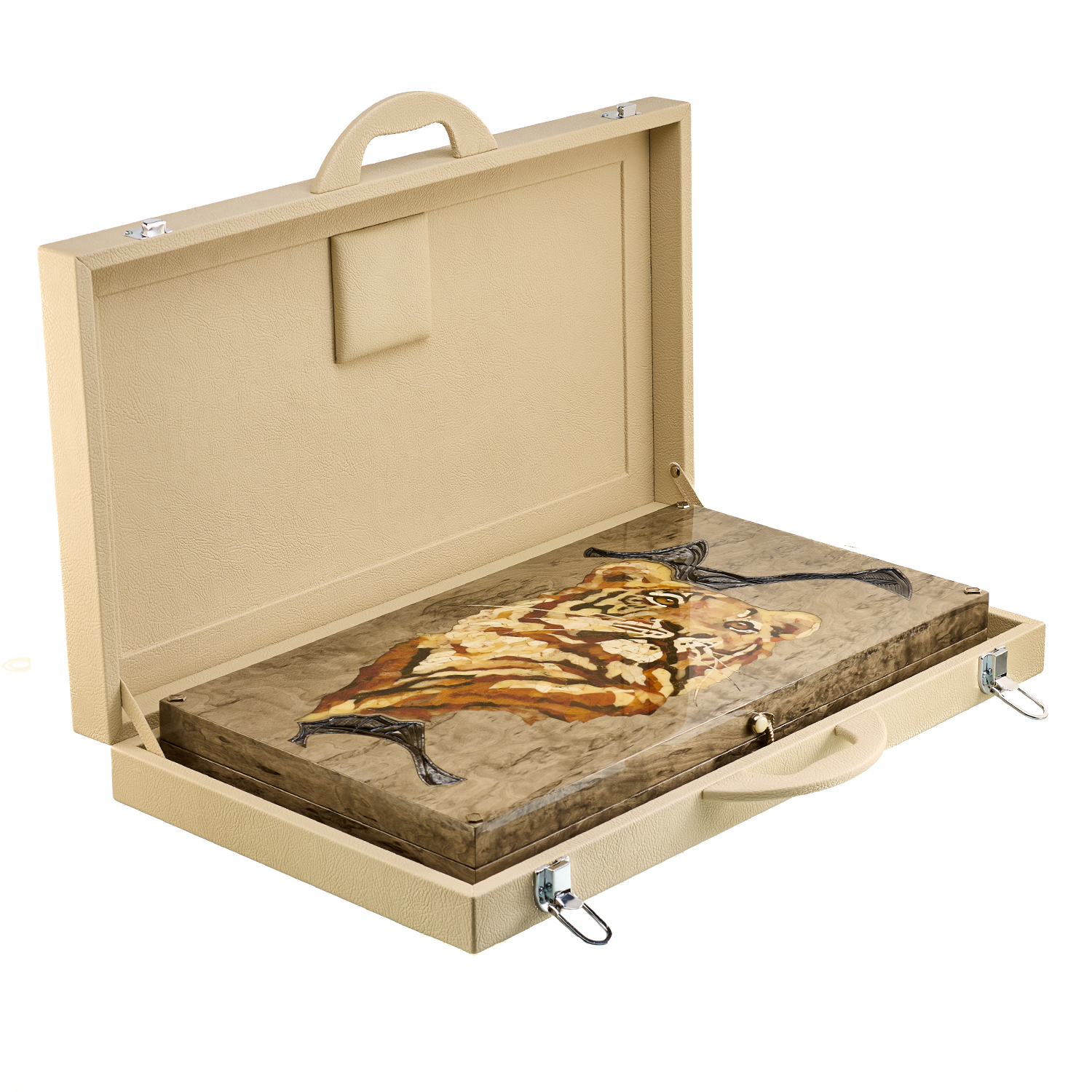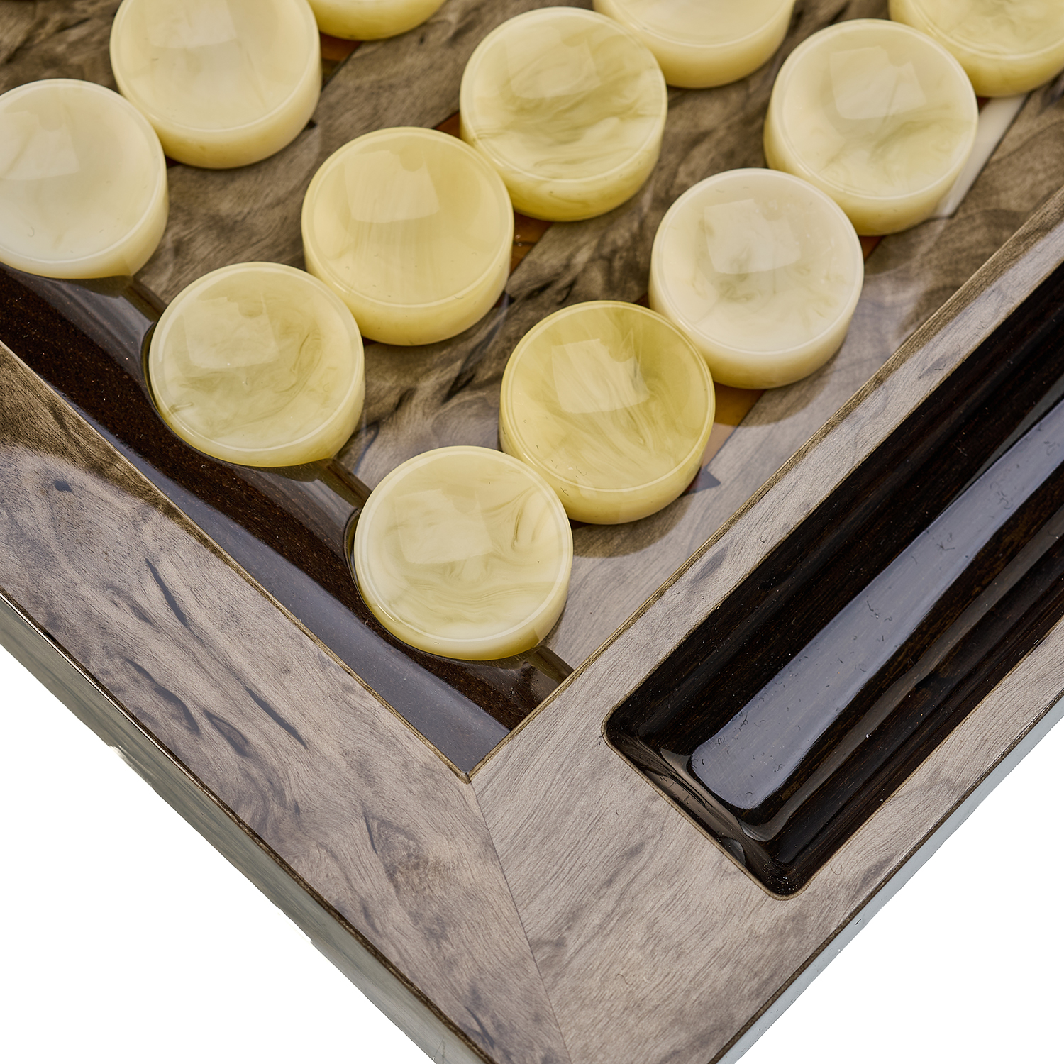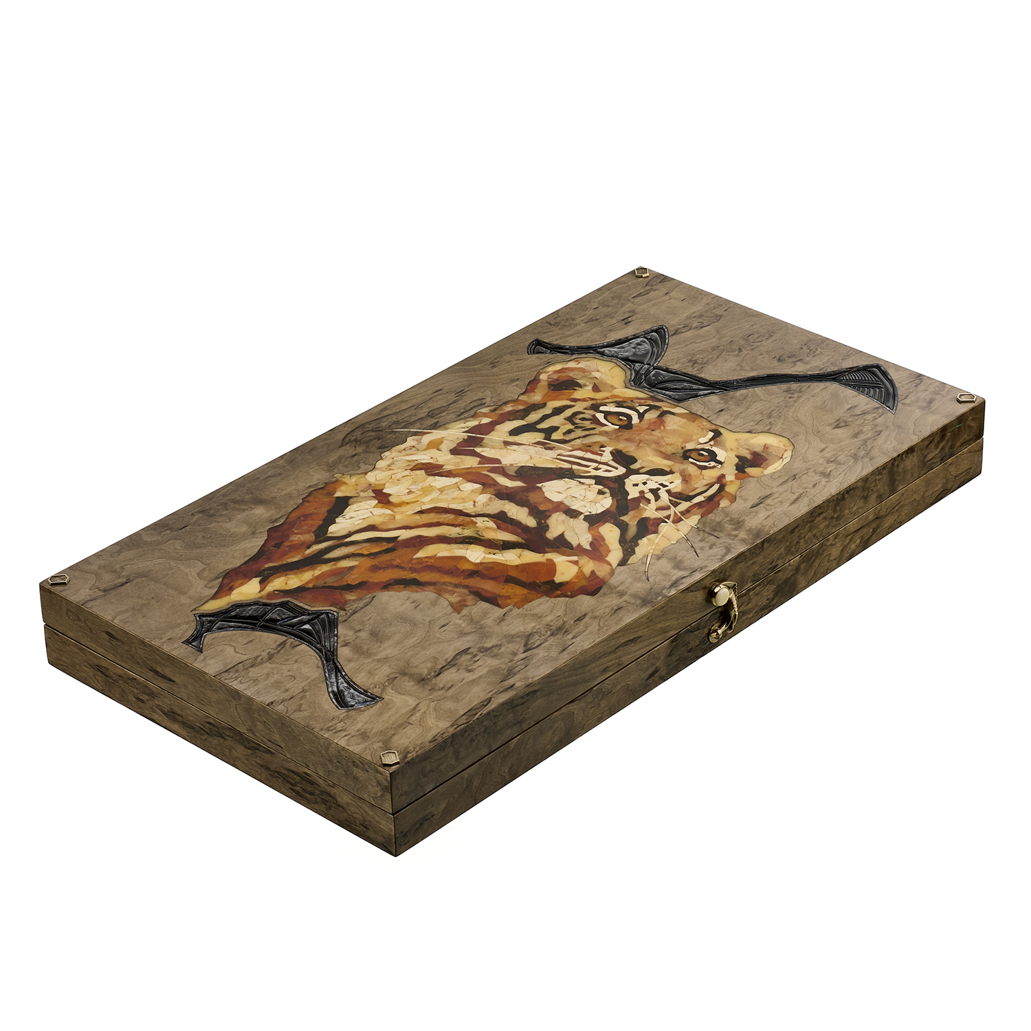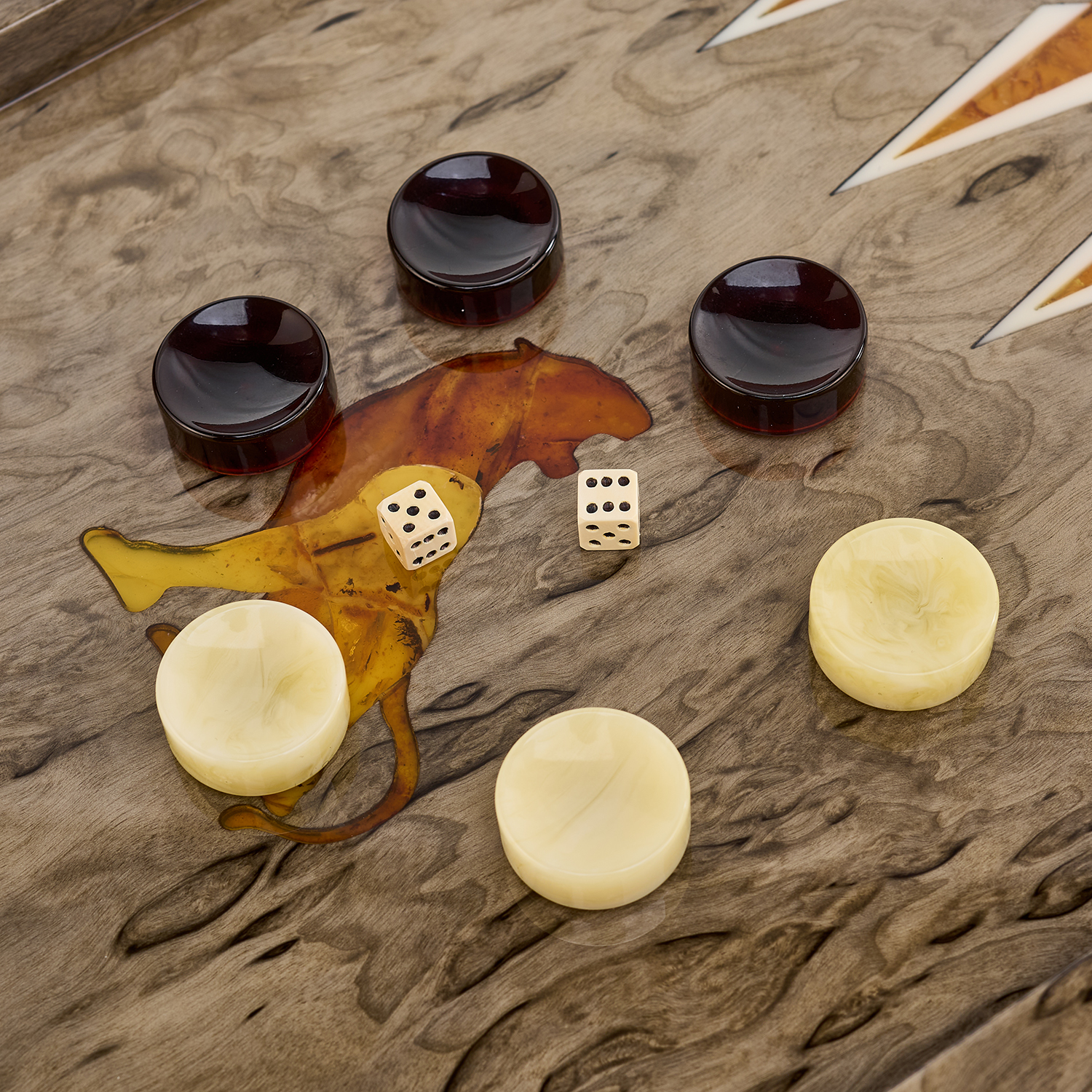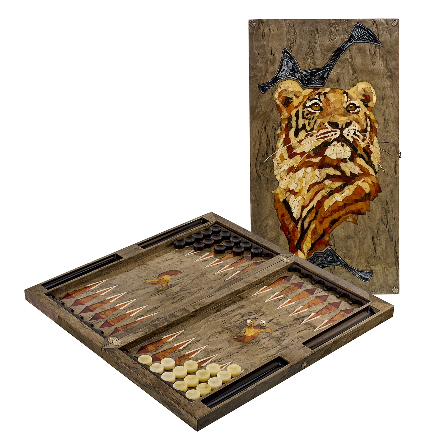 Нарды янтарные "Тигр".Материалы: тонированная карельская береза, янтарь.