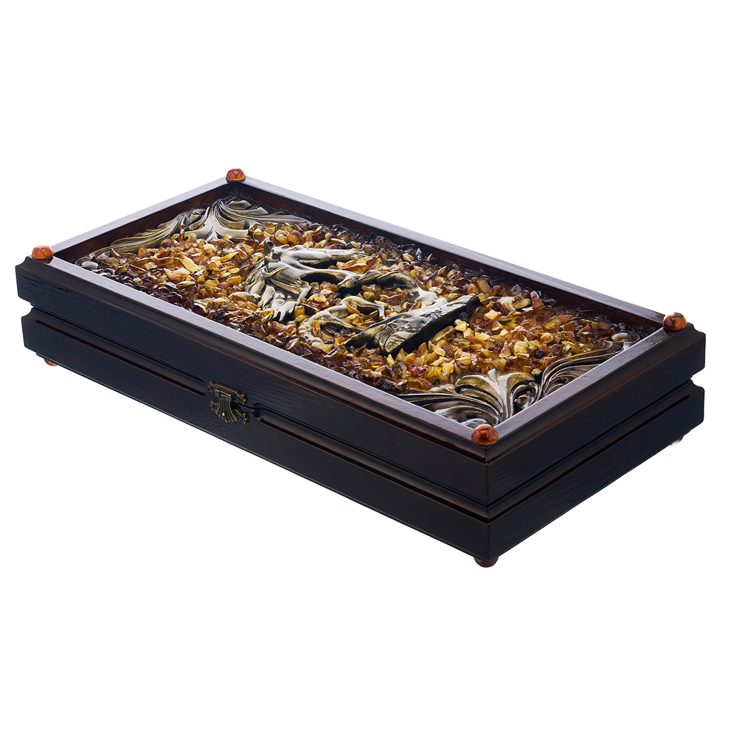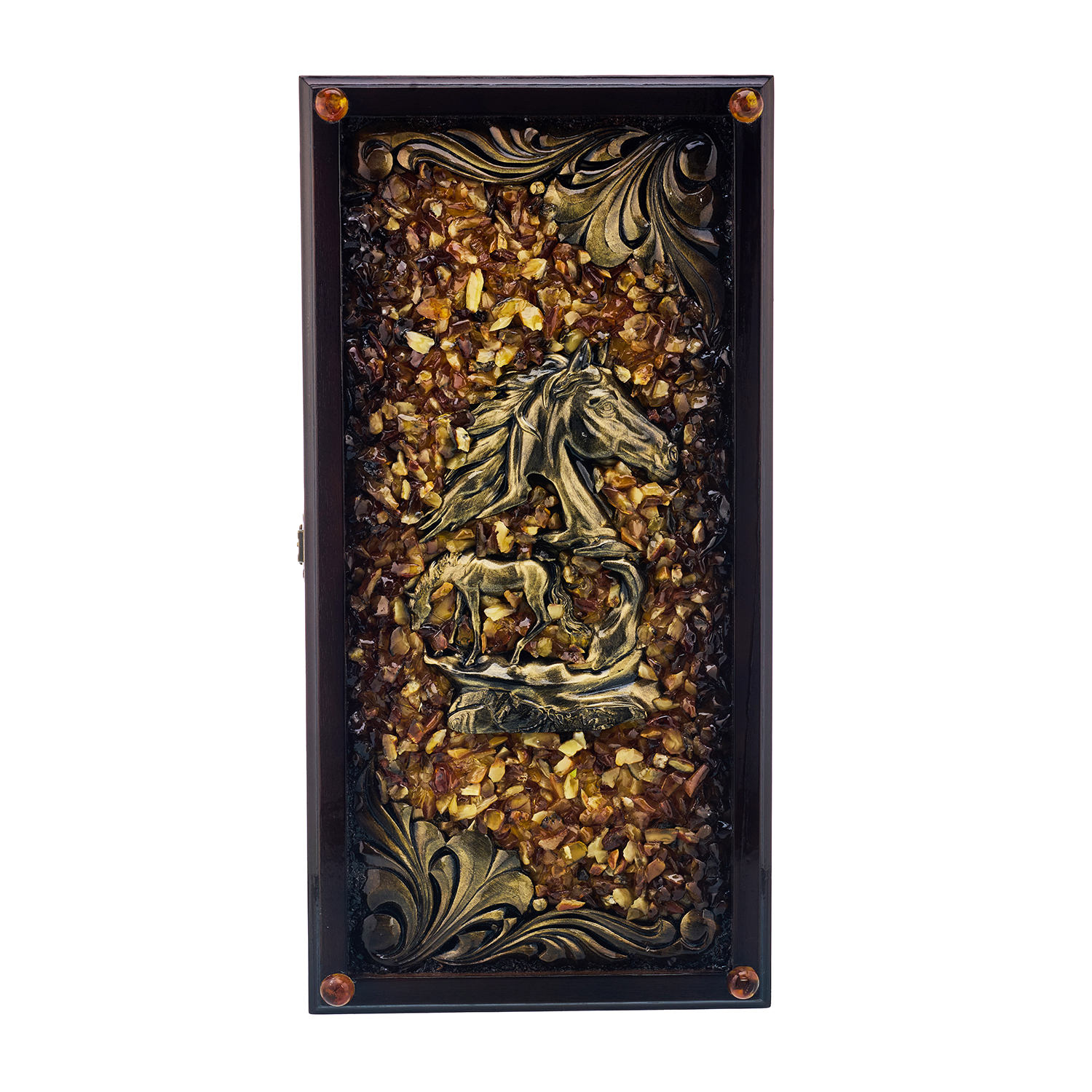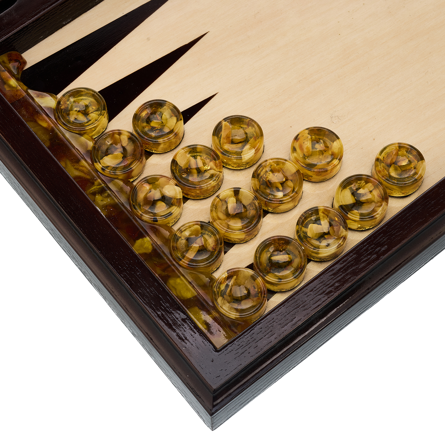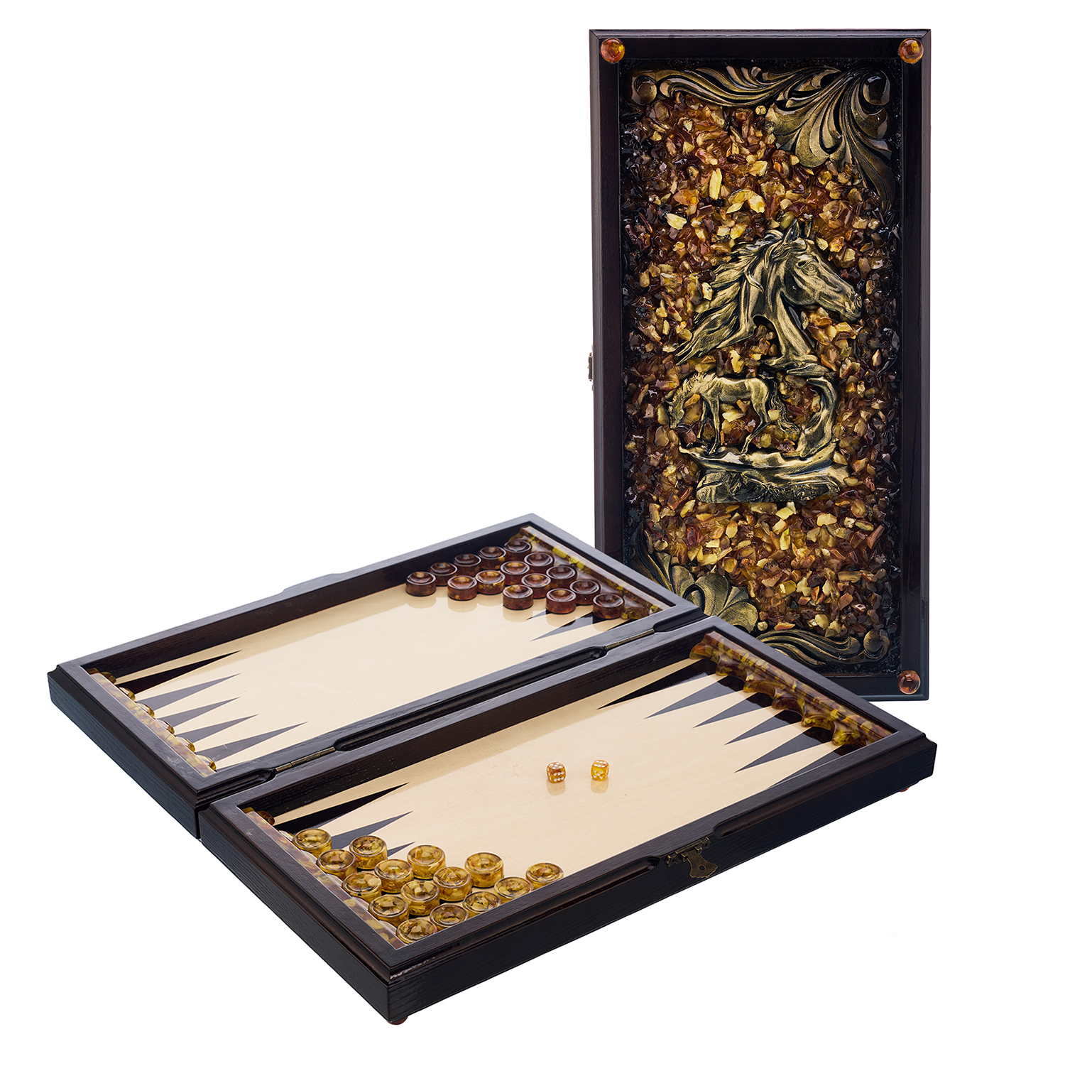 Нарды янтарные "Кони".Материалы: дуб, ясень, янтарь.