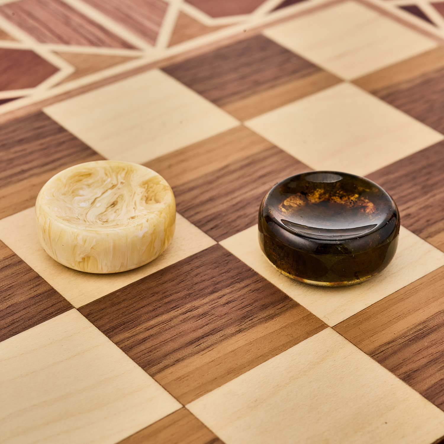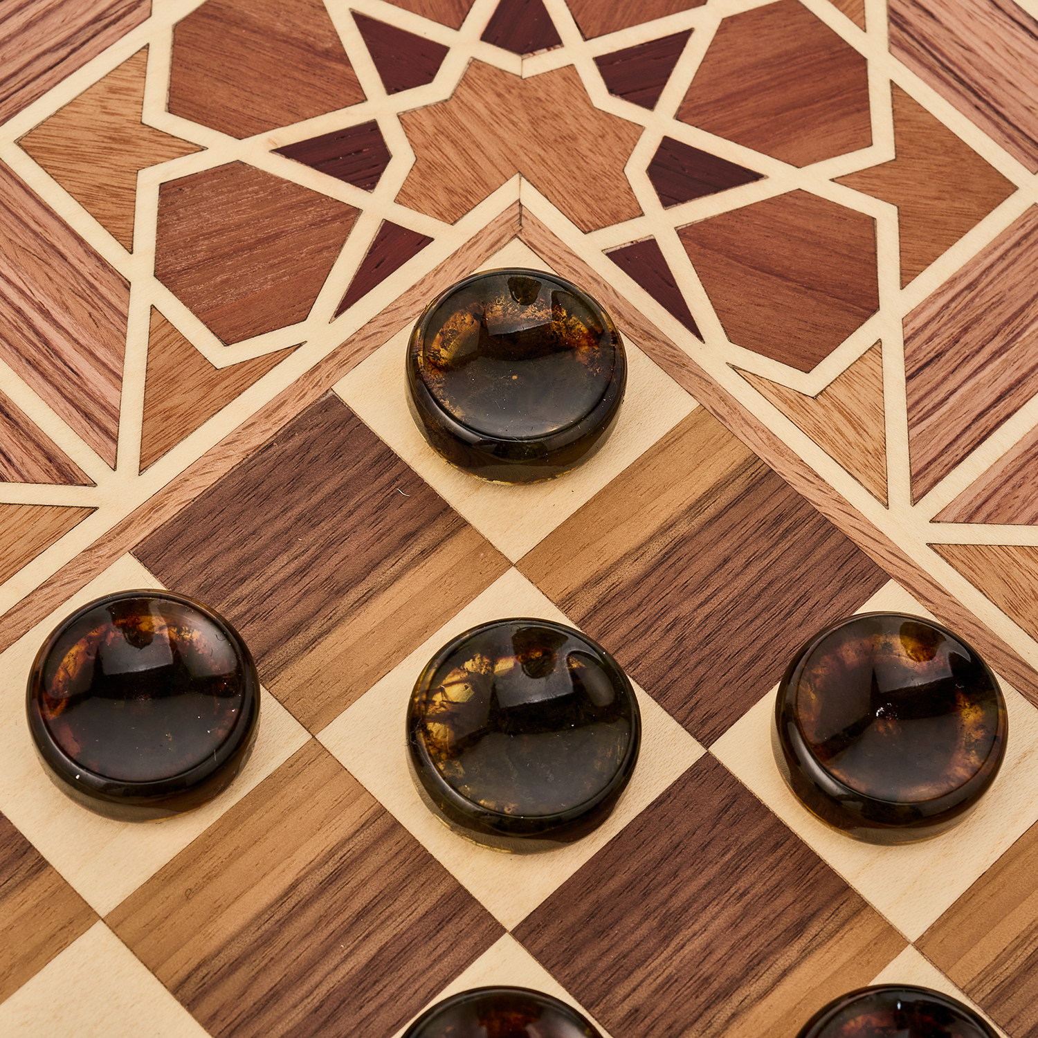 Нарды-шашки с янтарными фишками "Жасмин".Материалы: дерево, янтарь.