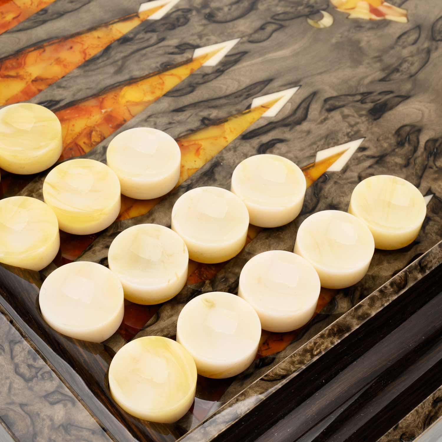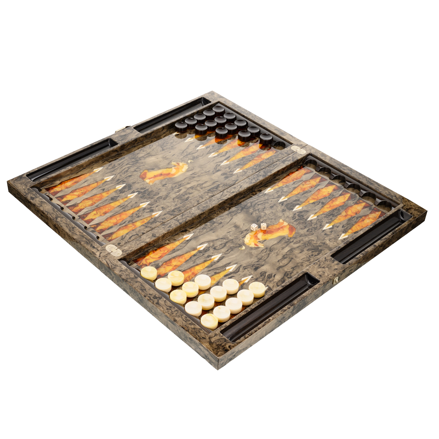 Нарды янтарные "Волк".Материалы: карельская береза, янтарь.
