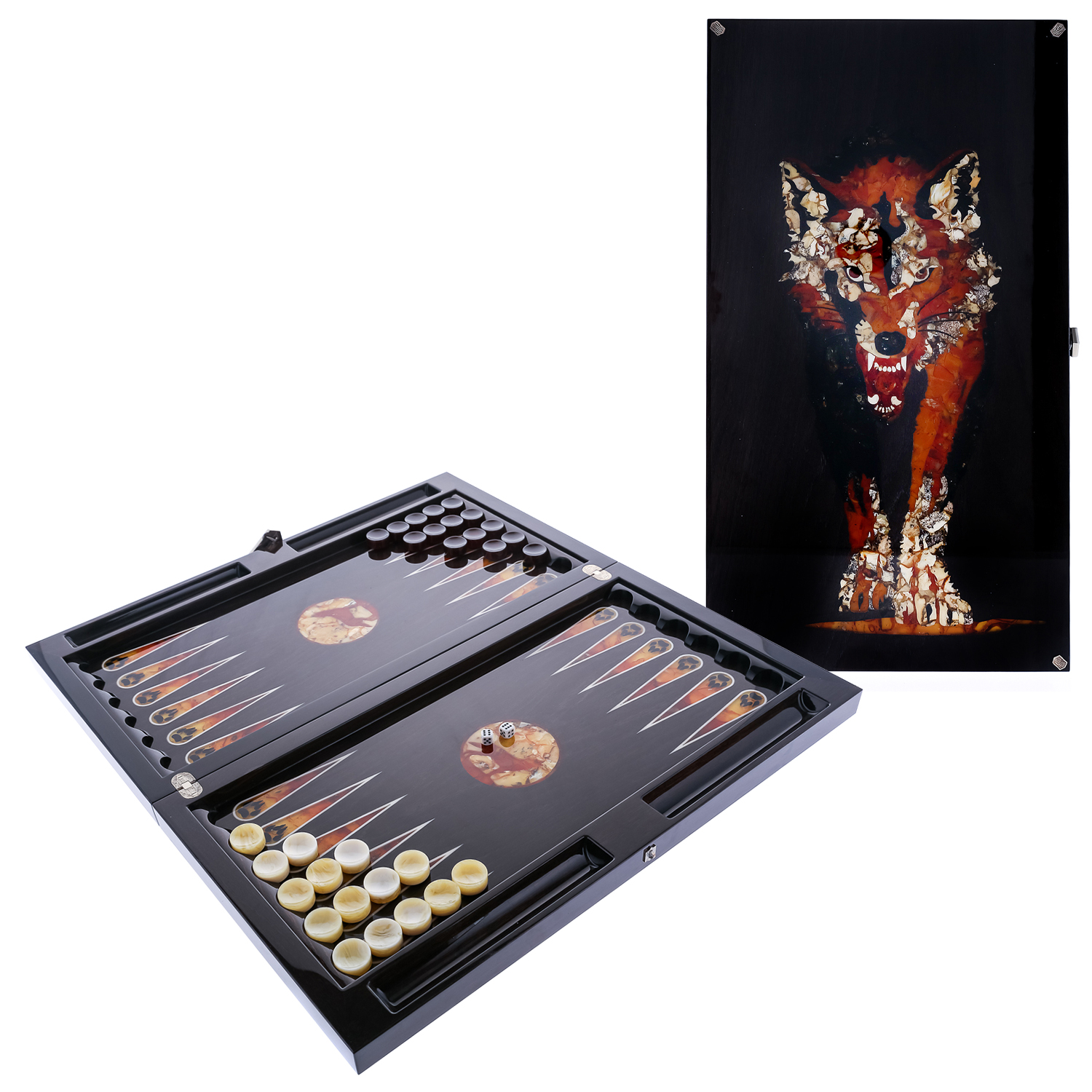 Янтарные нарды "Волк" 60х64 см
