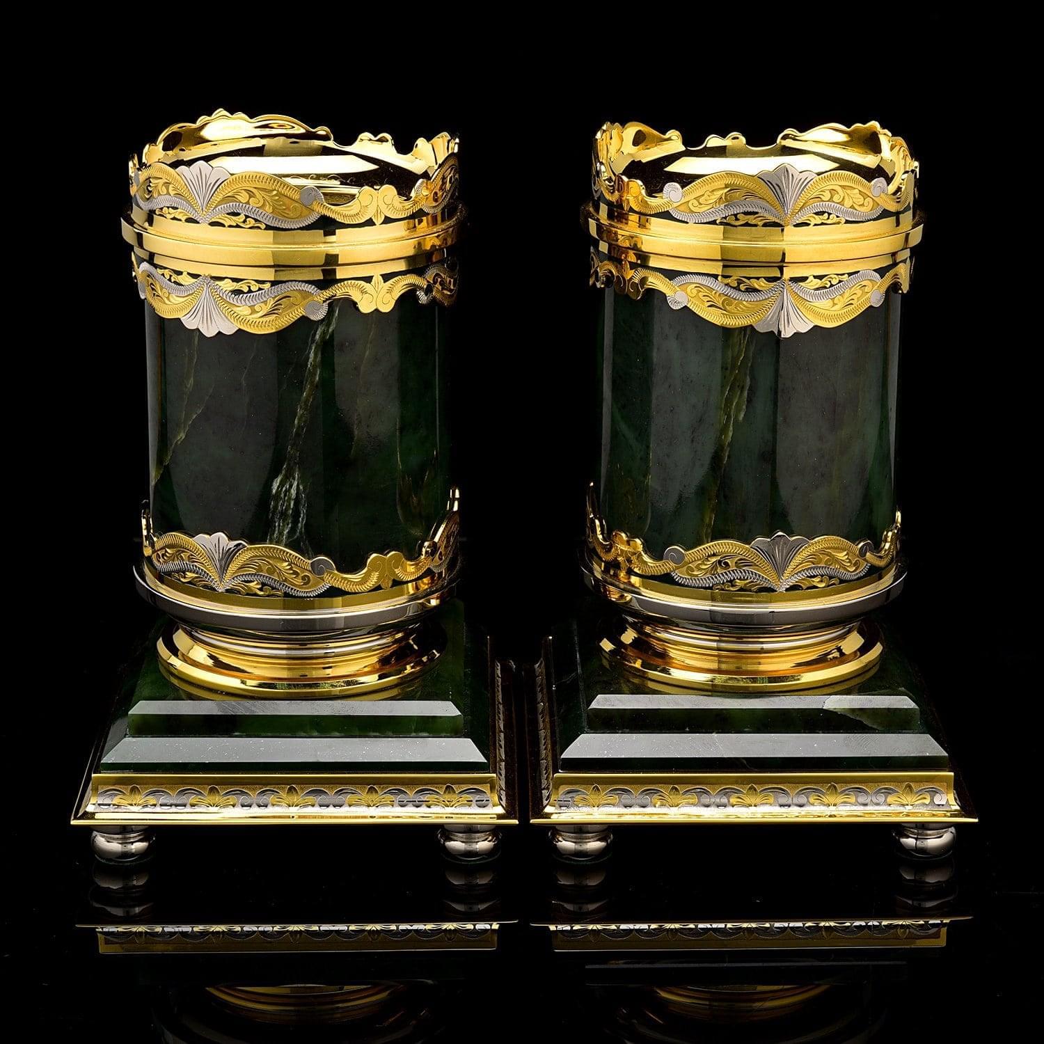 Корпуса предлагаемого набора выточены из нефрита - самого прочного поделочного камня, который очень сложно расколоть. Именно нефрит считался нашим предками панацеей, так как вылечивал от болезней и оберегал от порчи. Стоит прикоснуться к ним и ощутить особую энергию, усиливающую природный магнетизм.