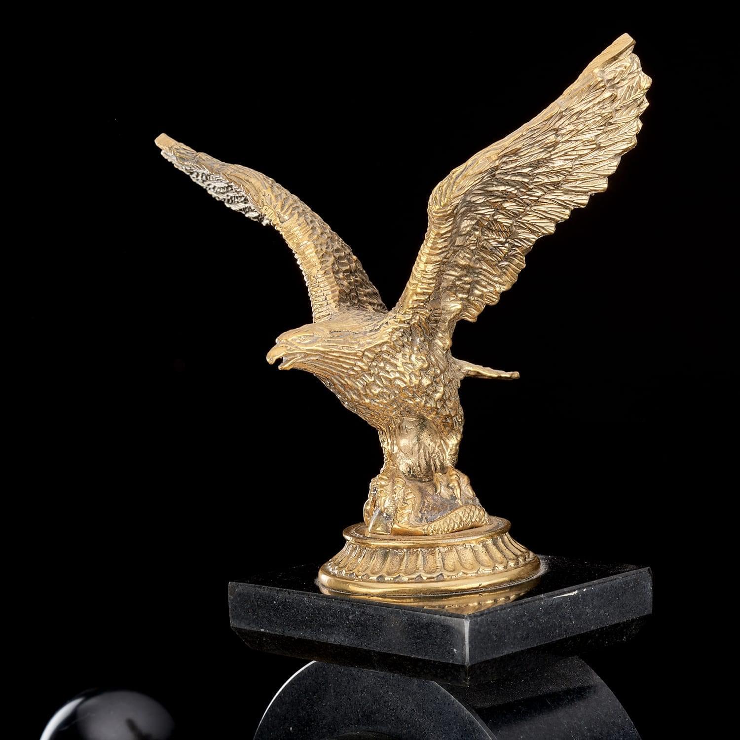 Настольный мини-набор со скульптурой, в которой воплощен образ пернатого хищника - символ российской государственности и власти, - создает в интерьере место силы и притяжения.