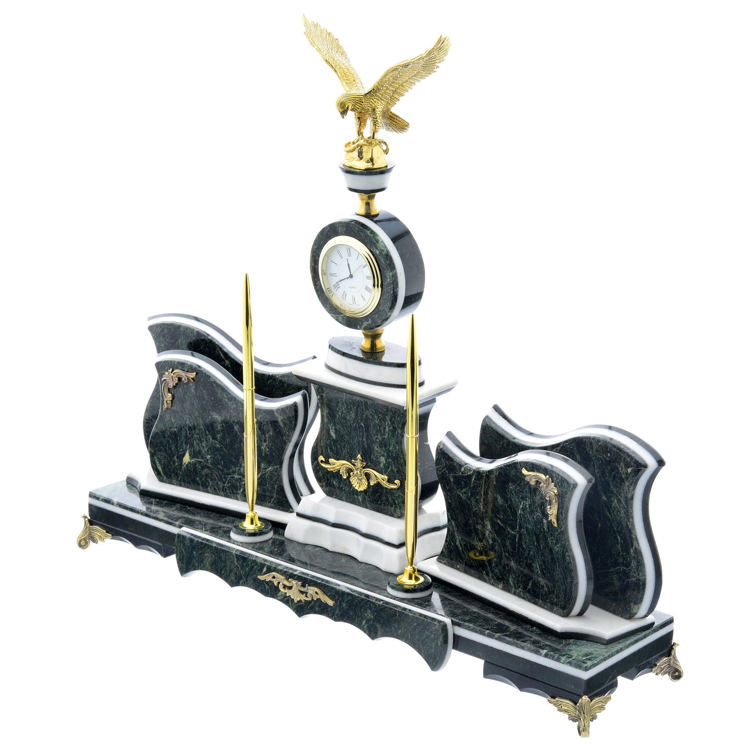 Русские подарки и сувениры → Настольные принадлежности → Настольные наборы → Настольный письменный набор из камня "Орел"
