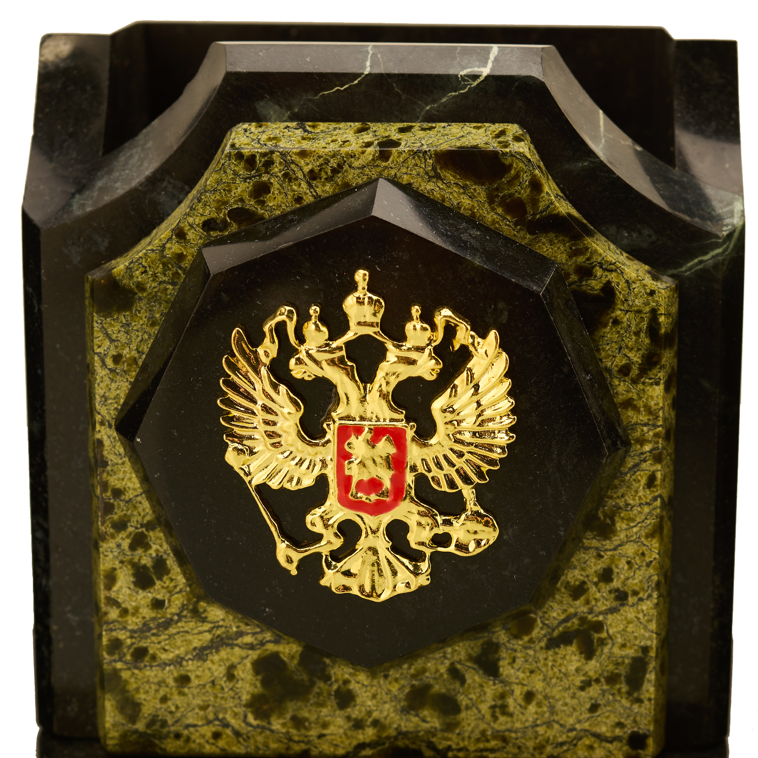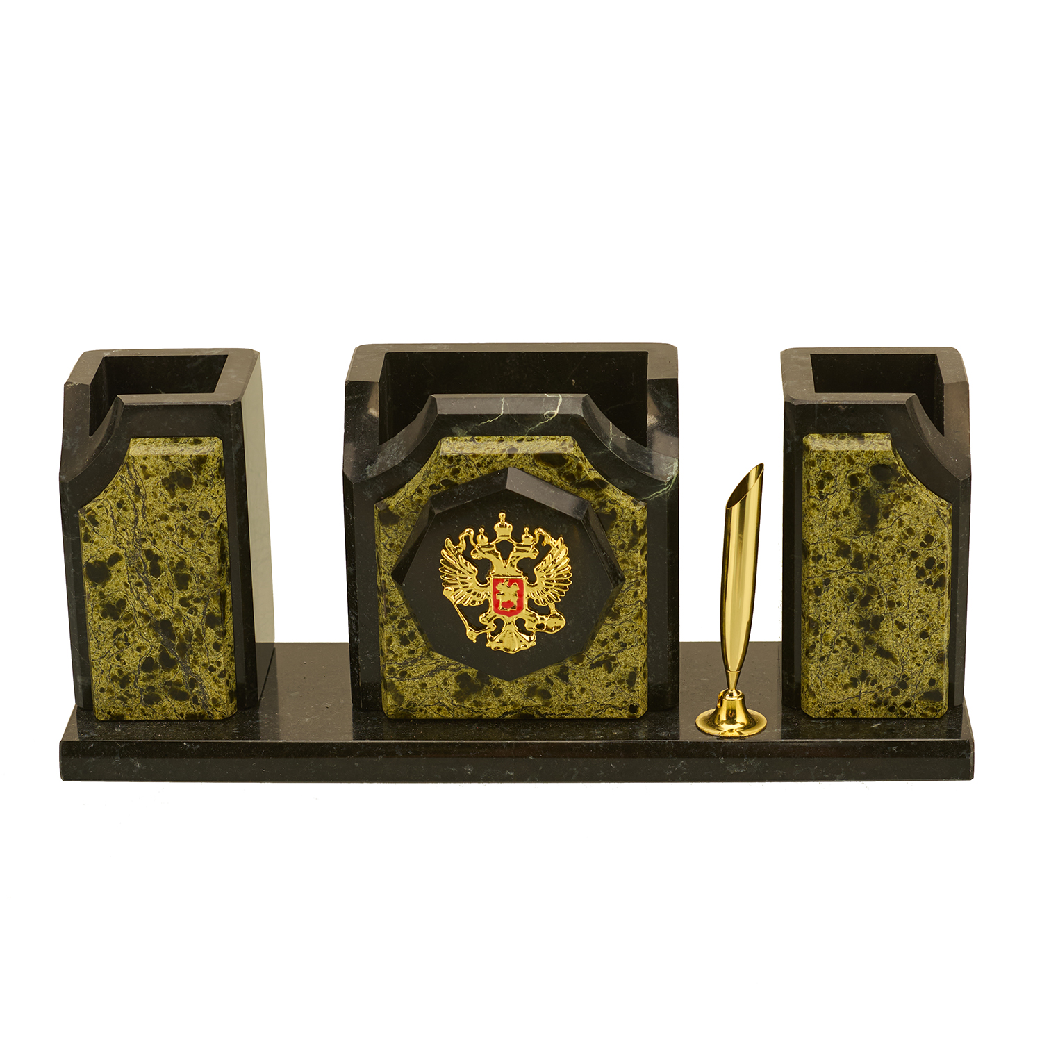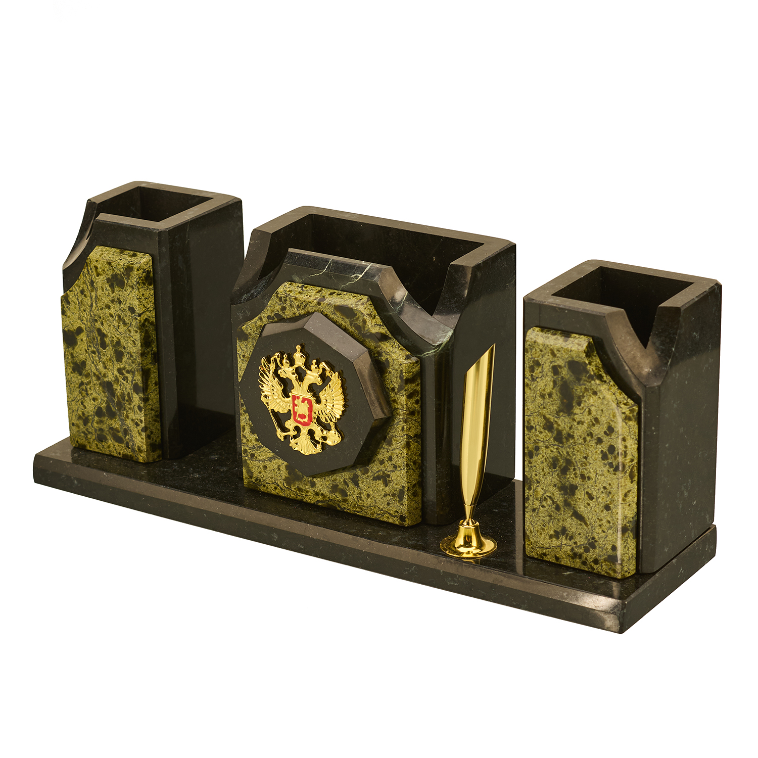 Русские подарки и сувениры → Настольные принадлежности → Настольные наборы → Настольный письменный набор из камня "Герб РФ"
