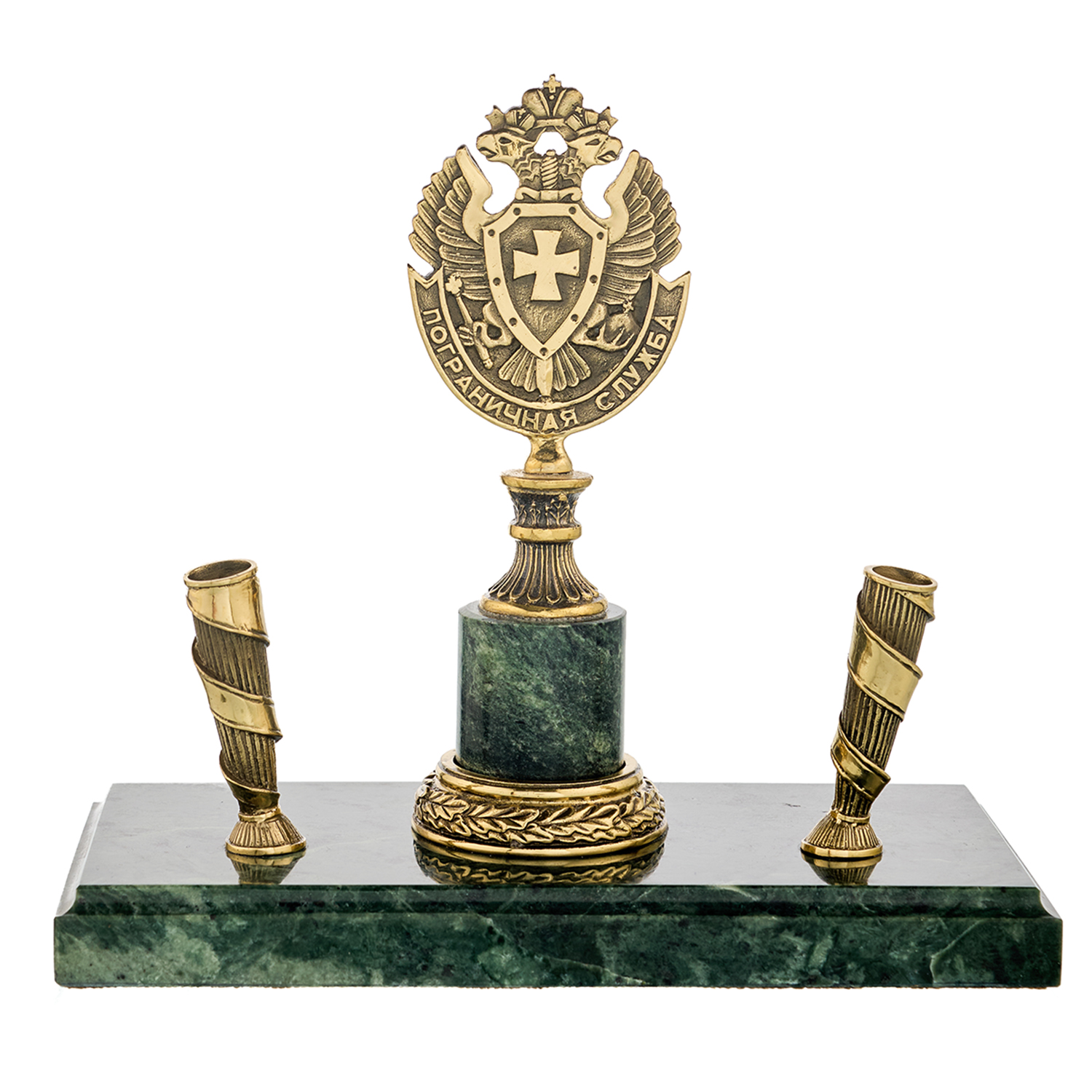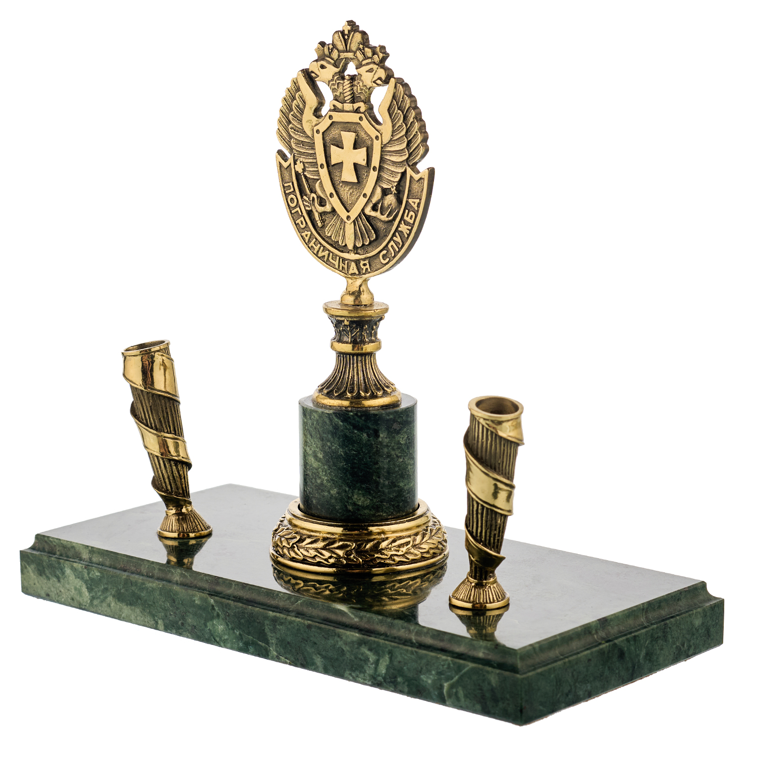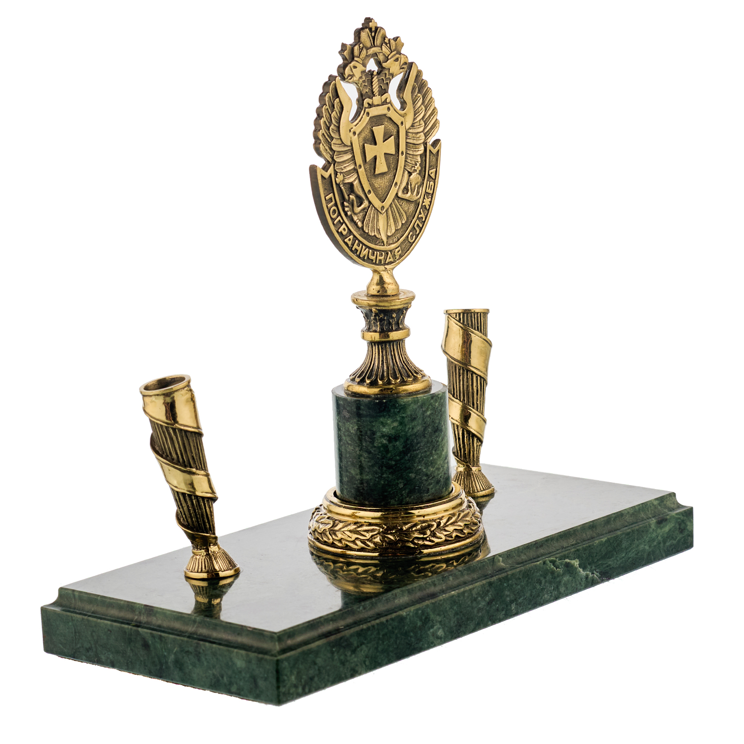 Настольный письменный набор "Герб пограничный".Материалы: бронза, змеевик.