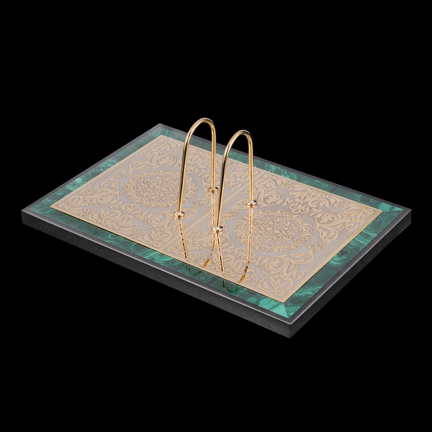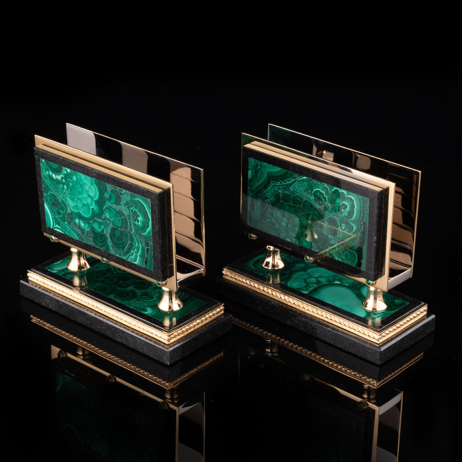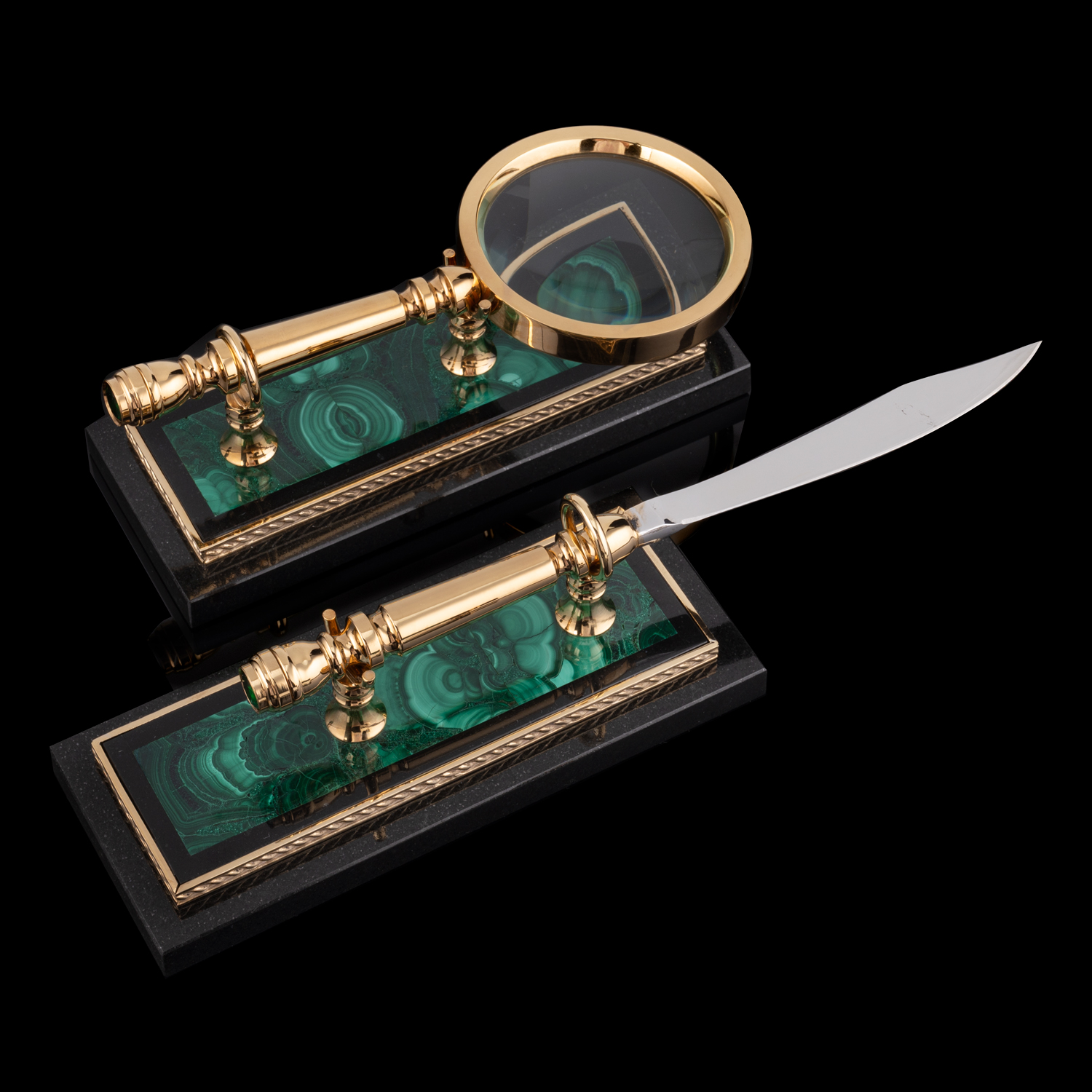 Настольный письменный набор из малахита "Конь". Златоуст.Материалы: малахит, бронза, латунь, никель, золото 999,9*.
