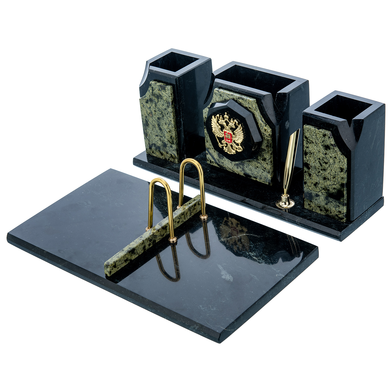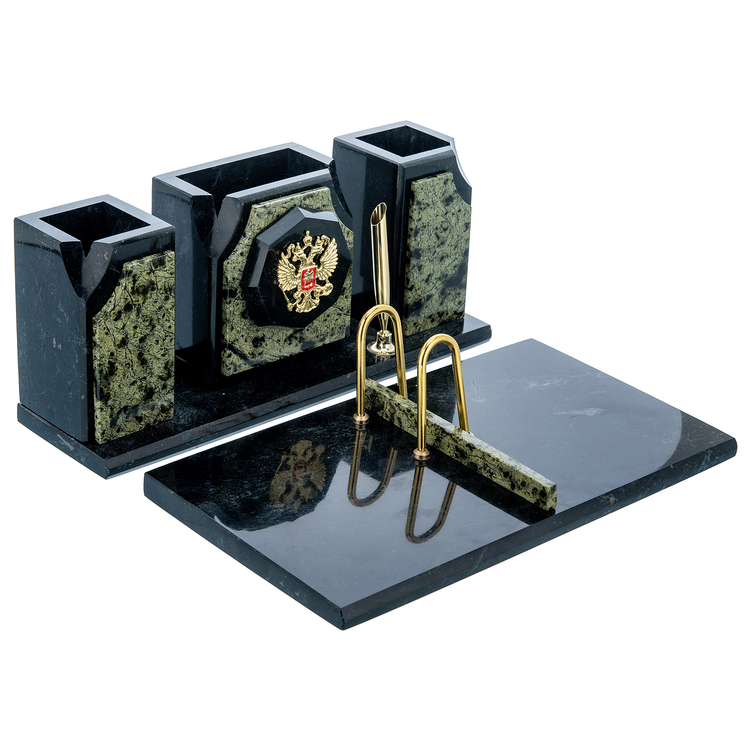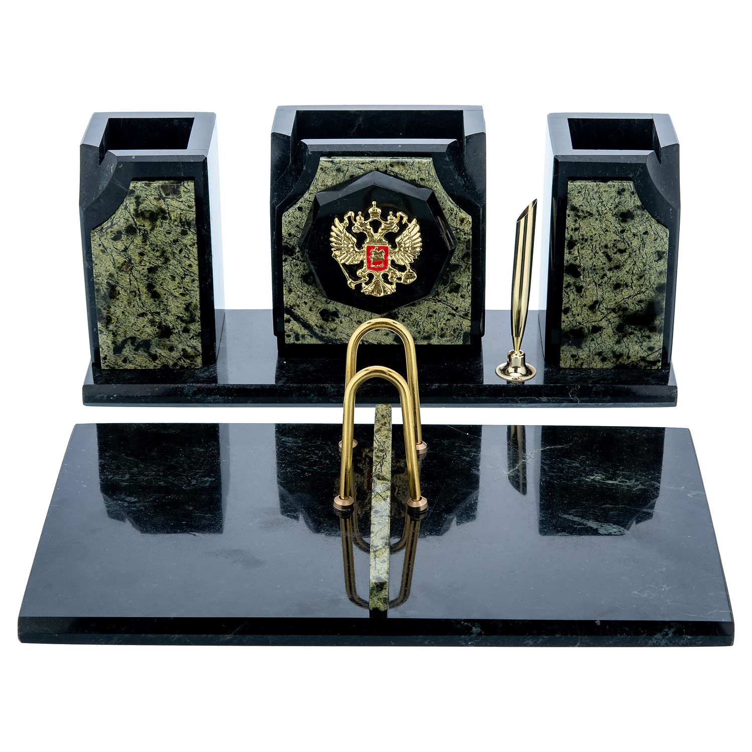Русские подарки и сувениры → Настольные принадлежности → Настольные наборы → Настольный набор из камня "Герб РФ"