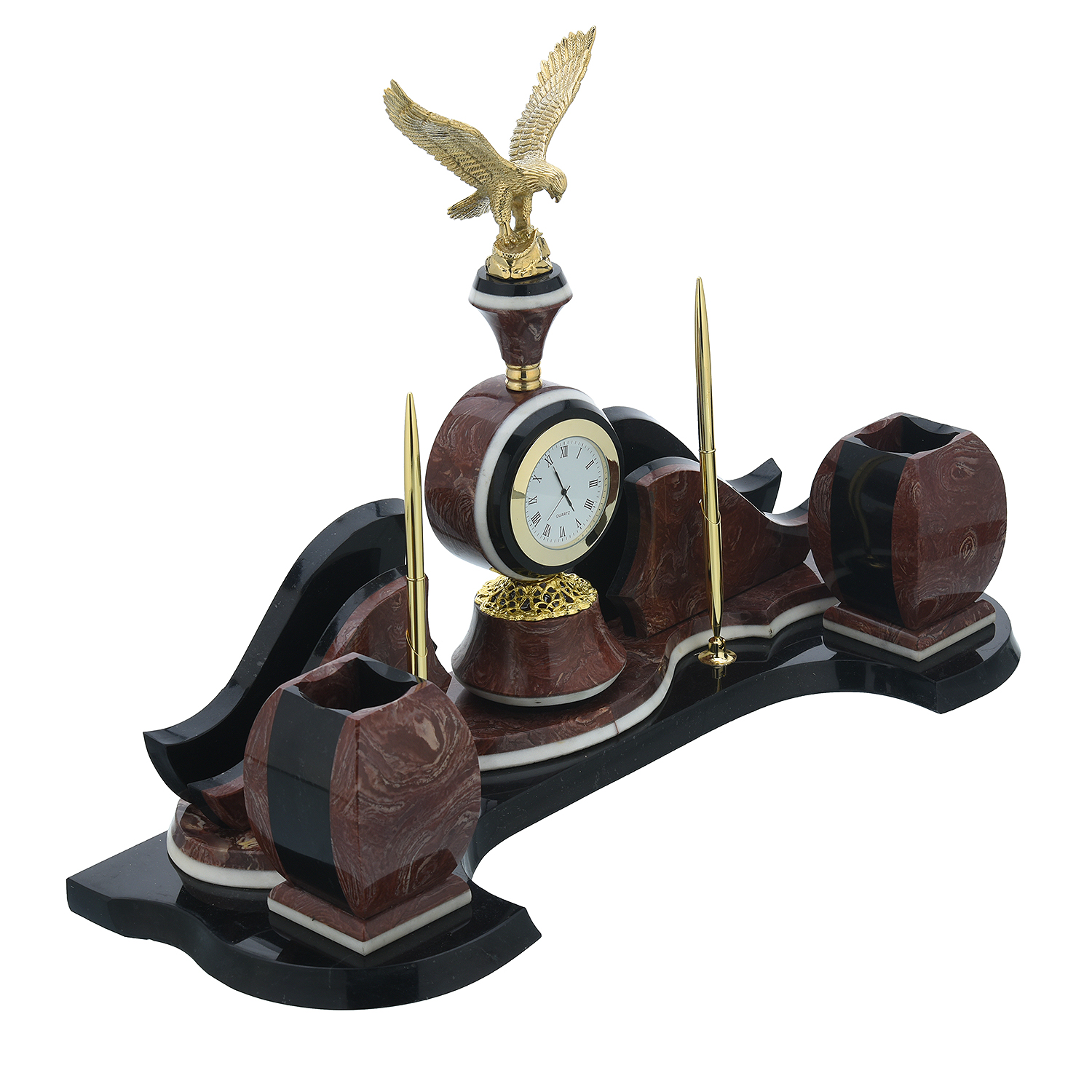 Русские подарки и сувениры → Настольные принадлежности → Настольные наборы → Настольный набор из натурального камня "Орел"