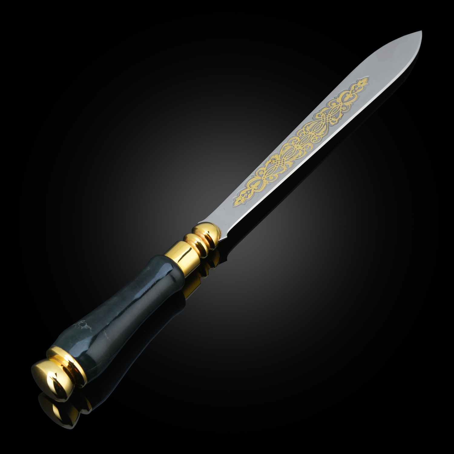 Материалы: сталь ЭИ-107, латунь, никель, золото 999,9*, нефрит.