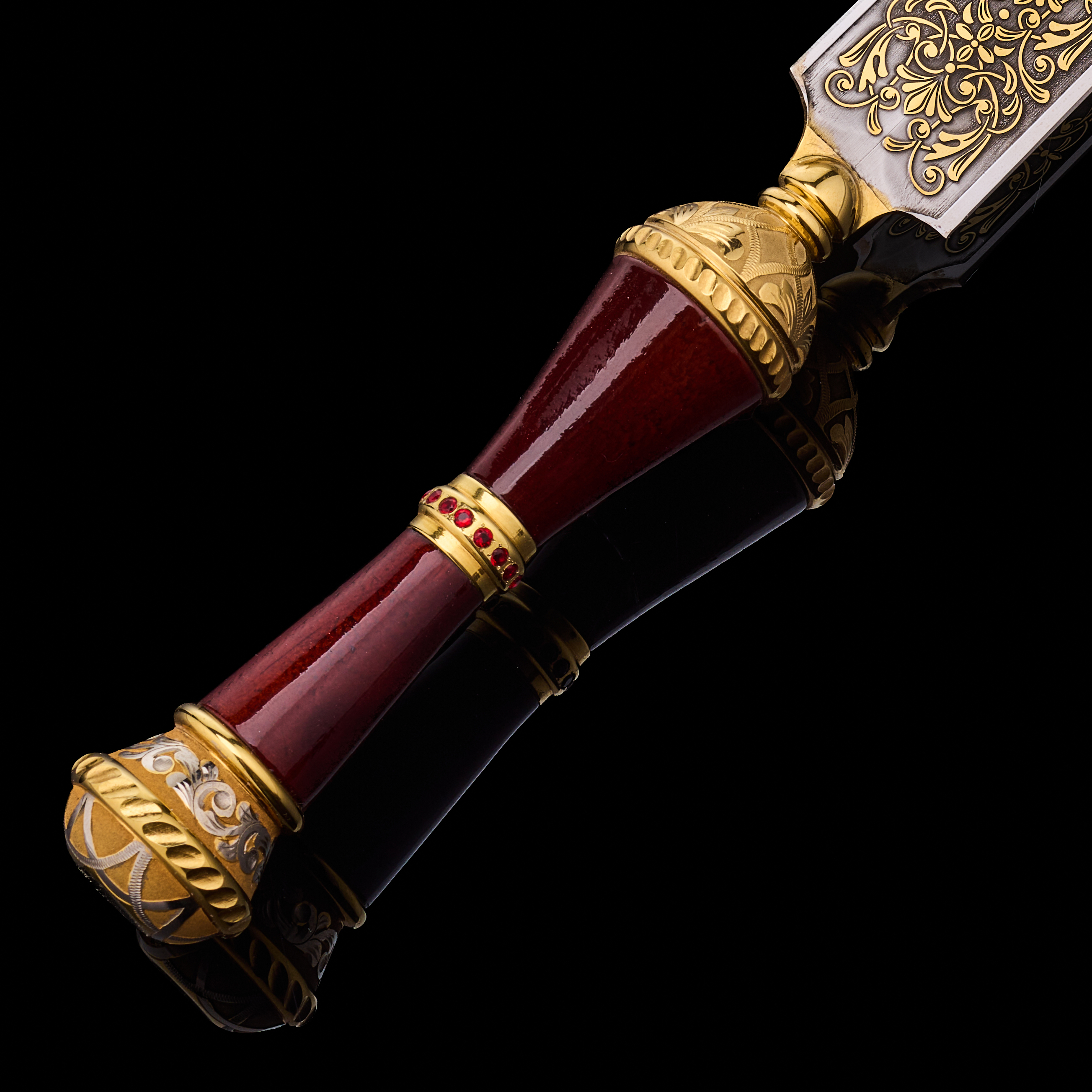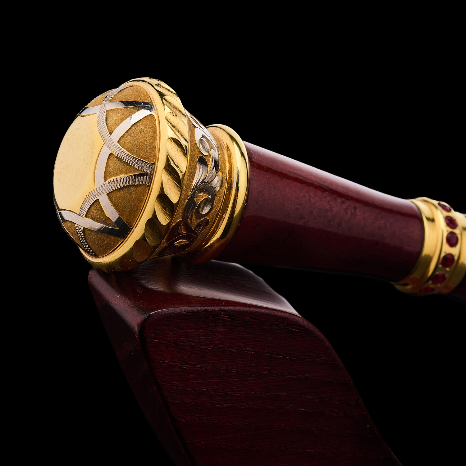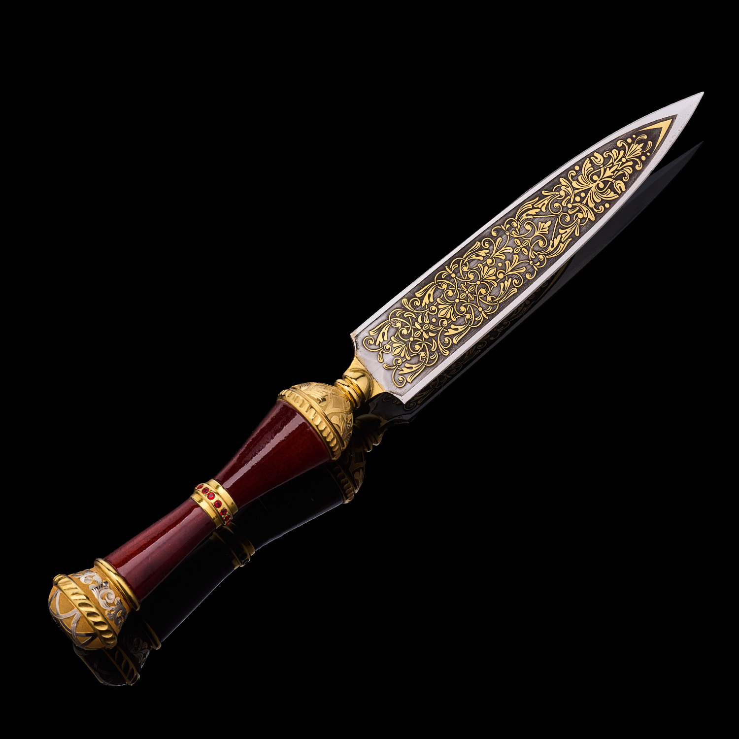 Нож для бумаг на подставке "Кабинетный". Златоуст.Материалы: сталь, латунь, никель, золото 999,9*, дерево, фианиты.