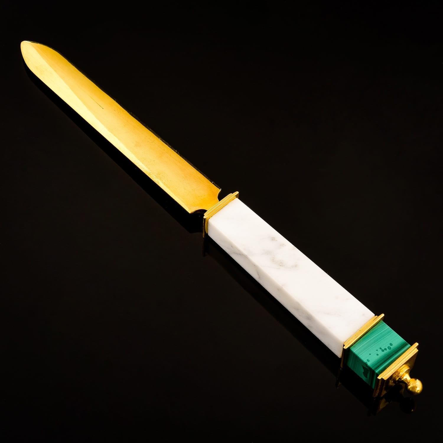 Нож для бумаг из малахита, мрамора и позолоченной стали "Монарх"