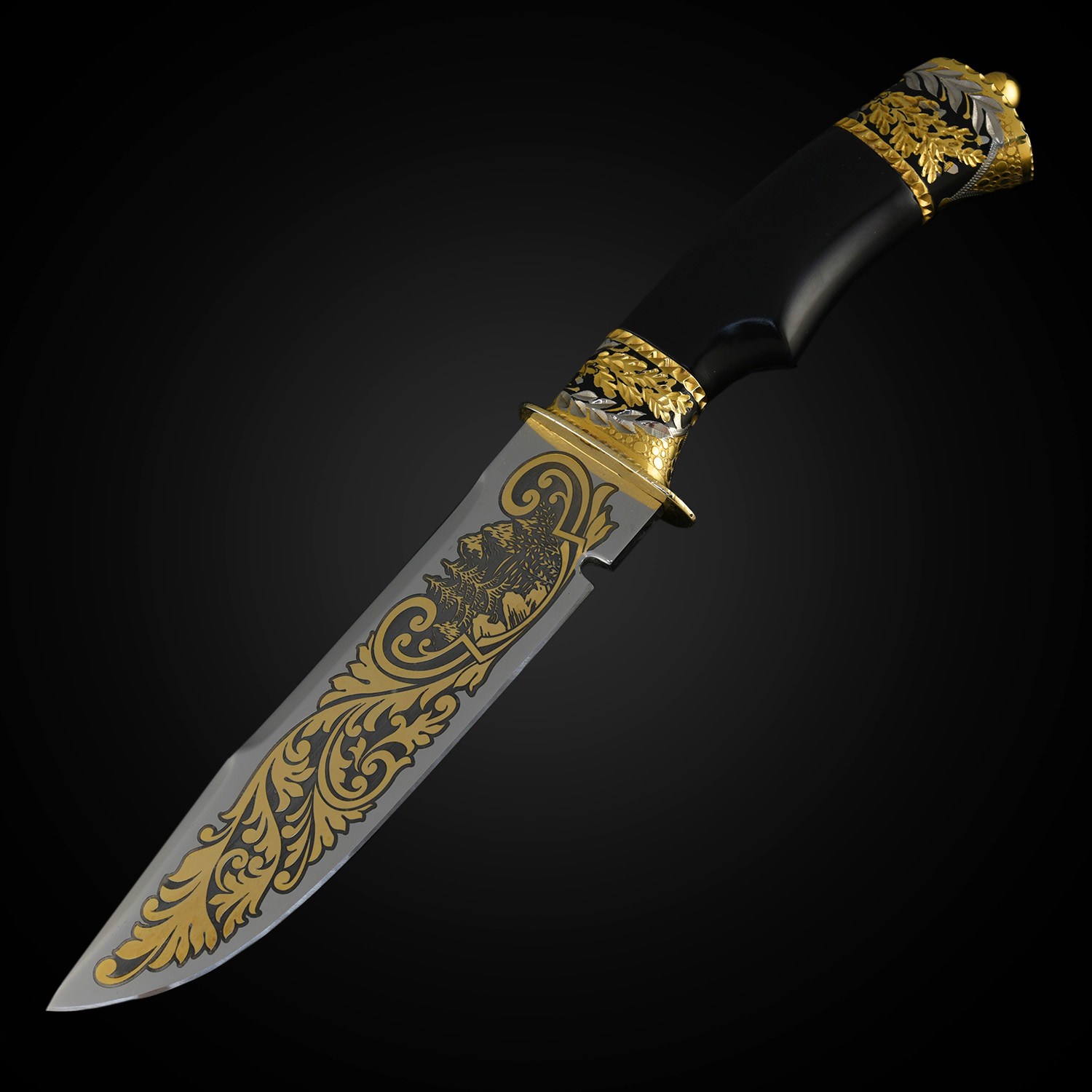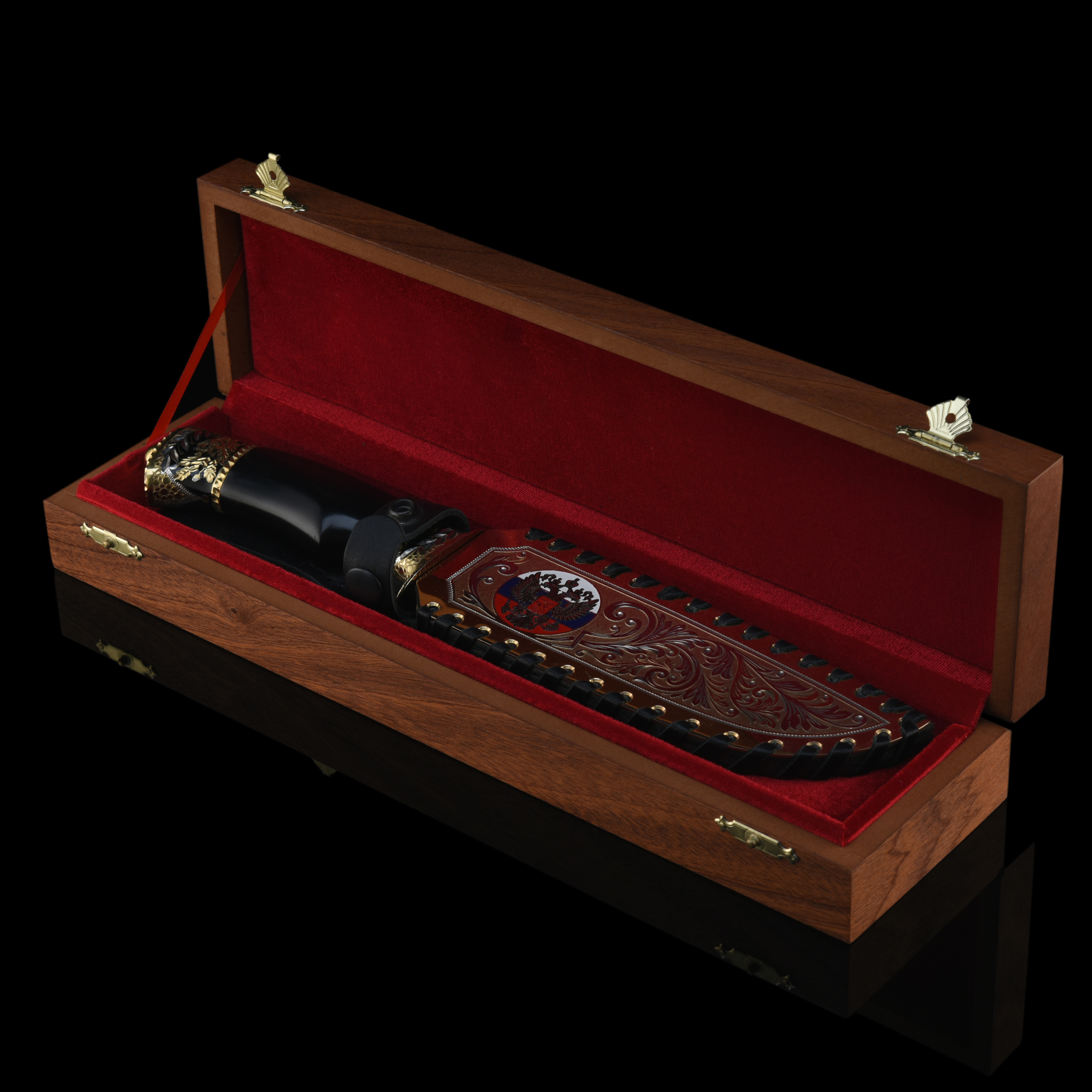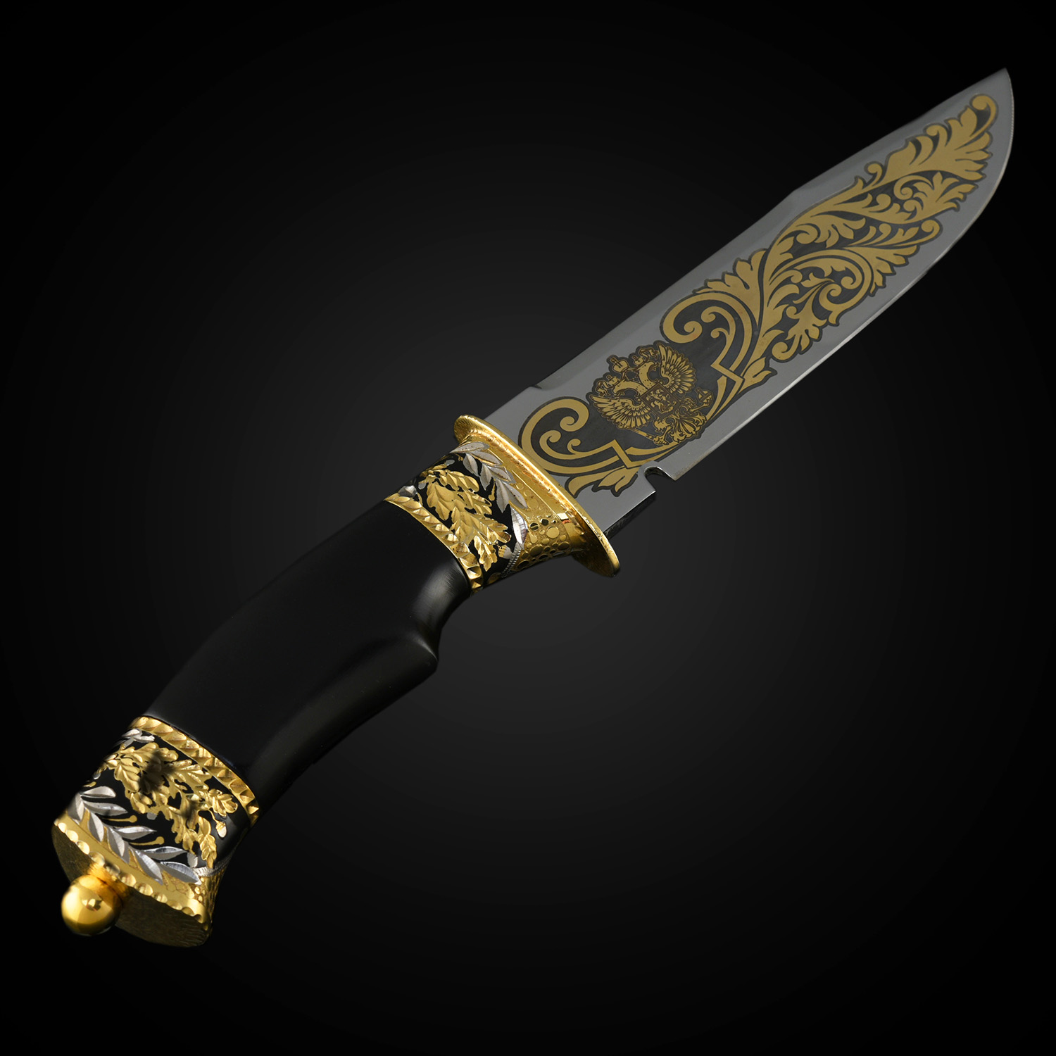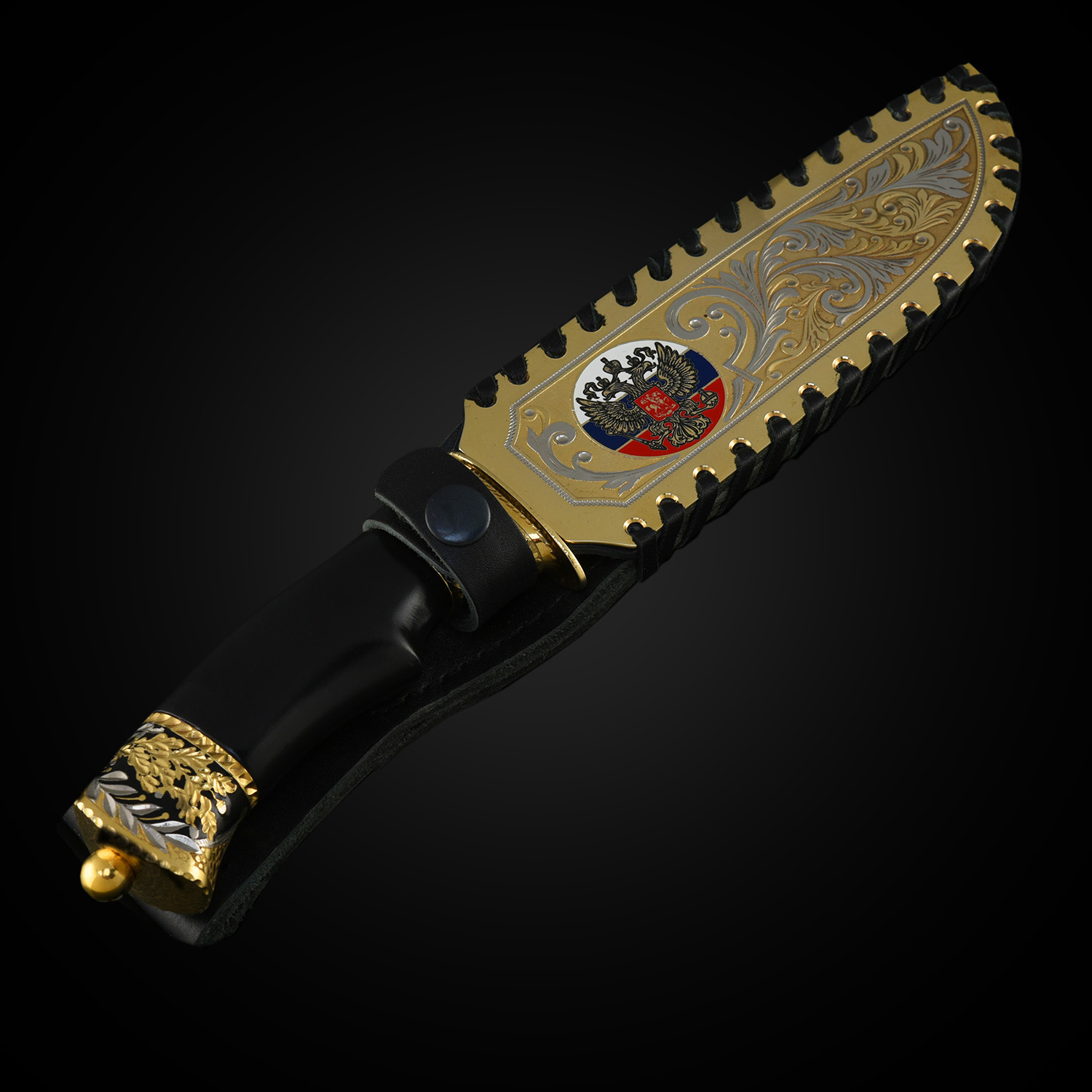 Нож сувенирный "Триколор". Златоуст.Материалы: сталь ЭИ-107, латунь, никель, золото 999,9*, эмаль, дерево.