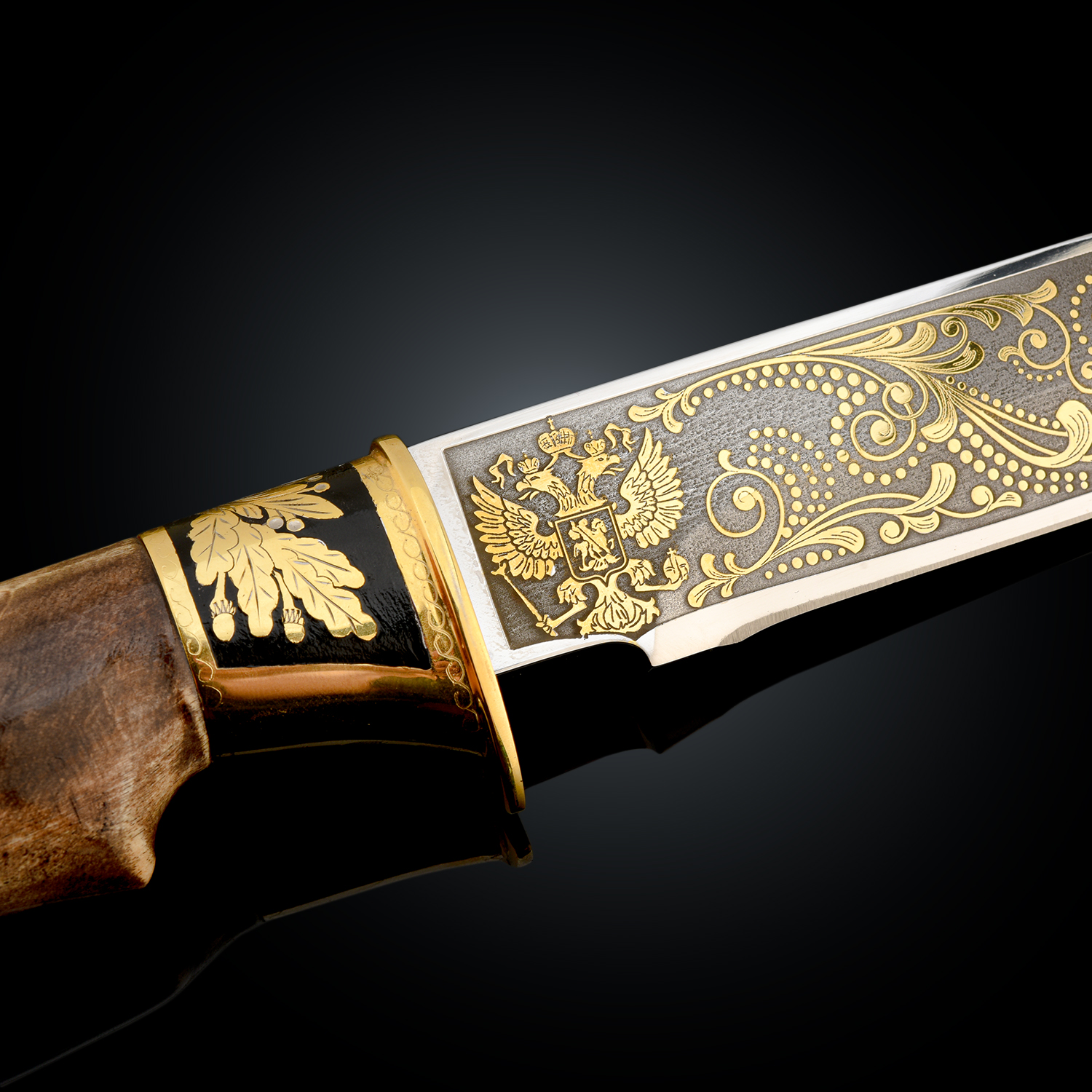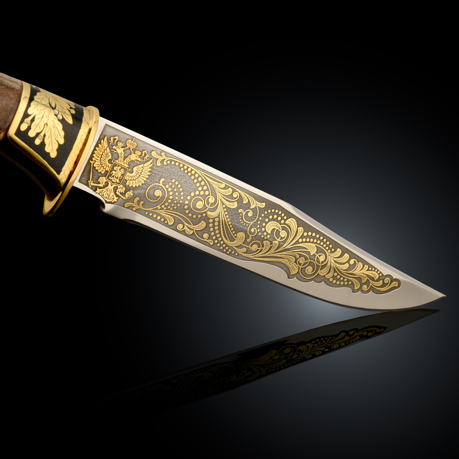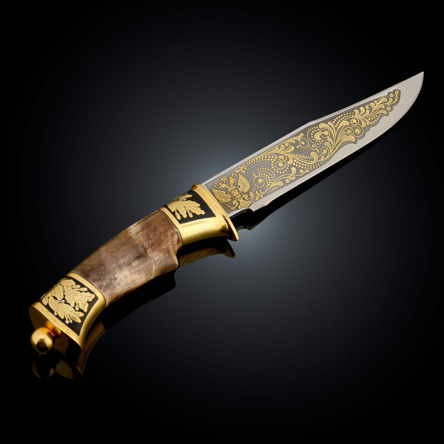 Нож сувенирный "Федерал". Златоуст.Материалы: сталь ЭИ-107, латунь, никель, золото 999,9*, эмаль, дерево.