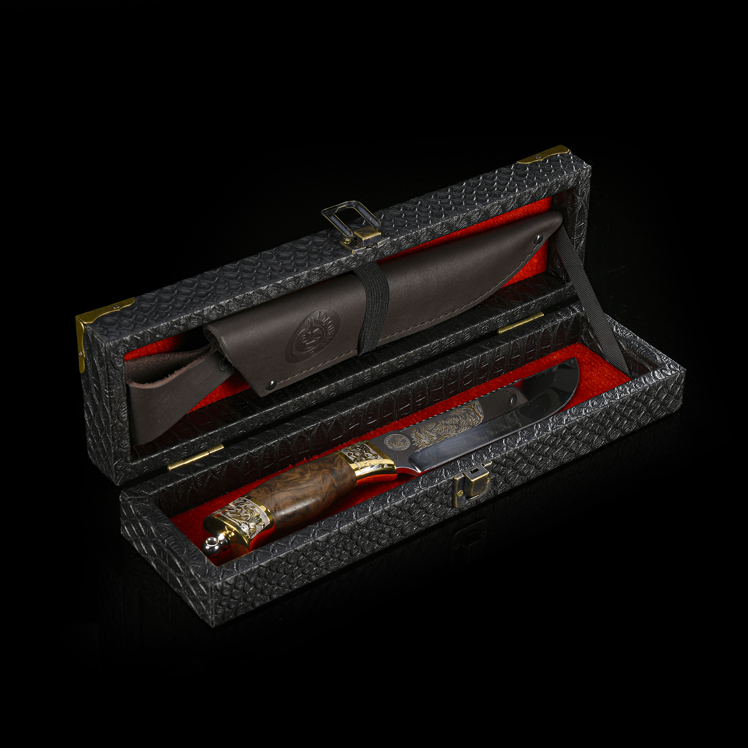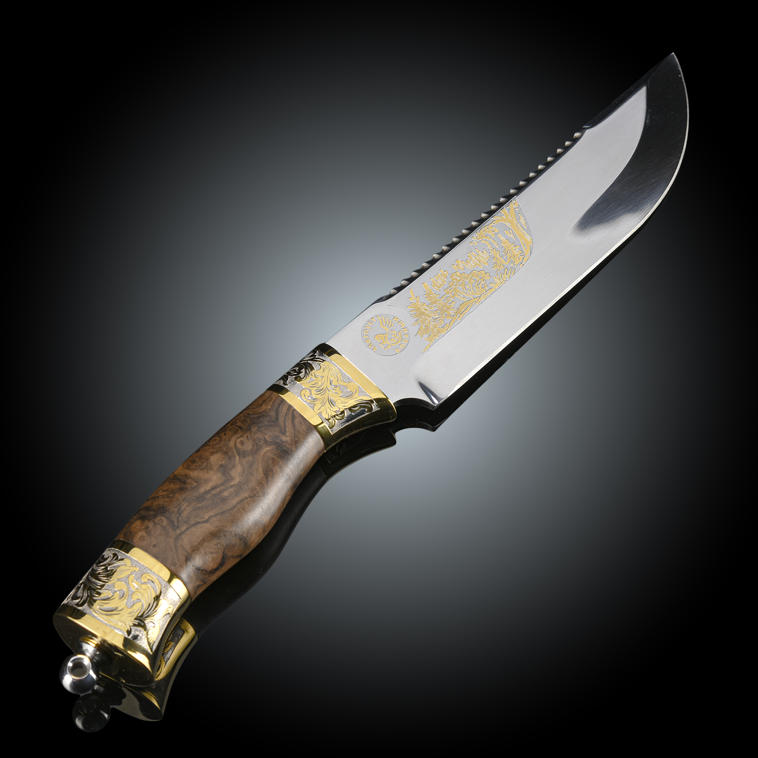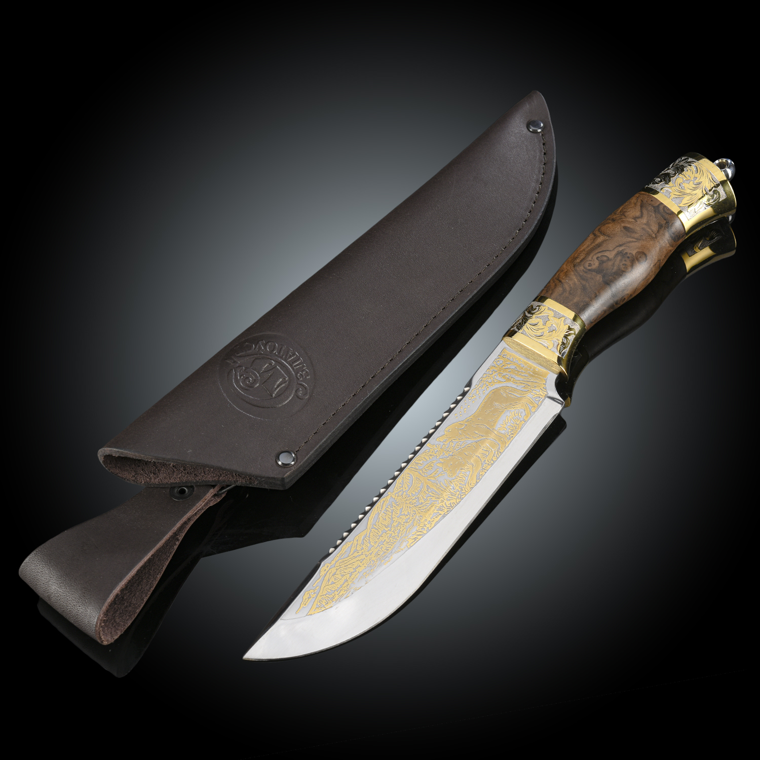 Нож сувенирный "Волк". Златоуст.Материалы: сталь ЭИ-107, латунь, никель, золото 999,9*, дерево.