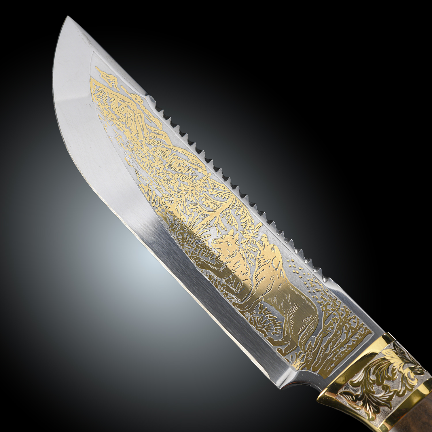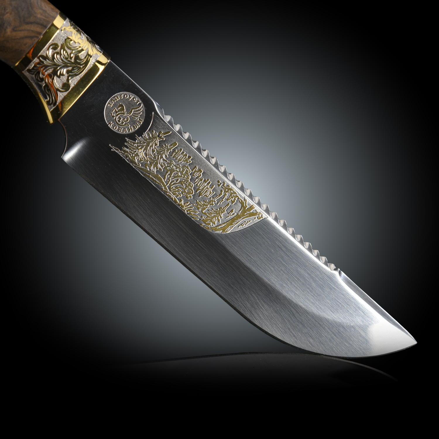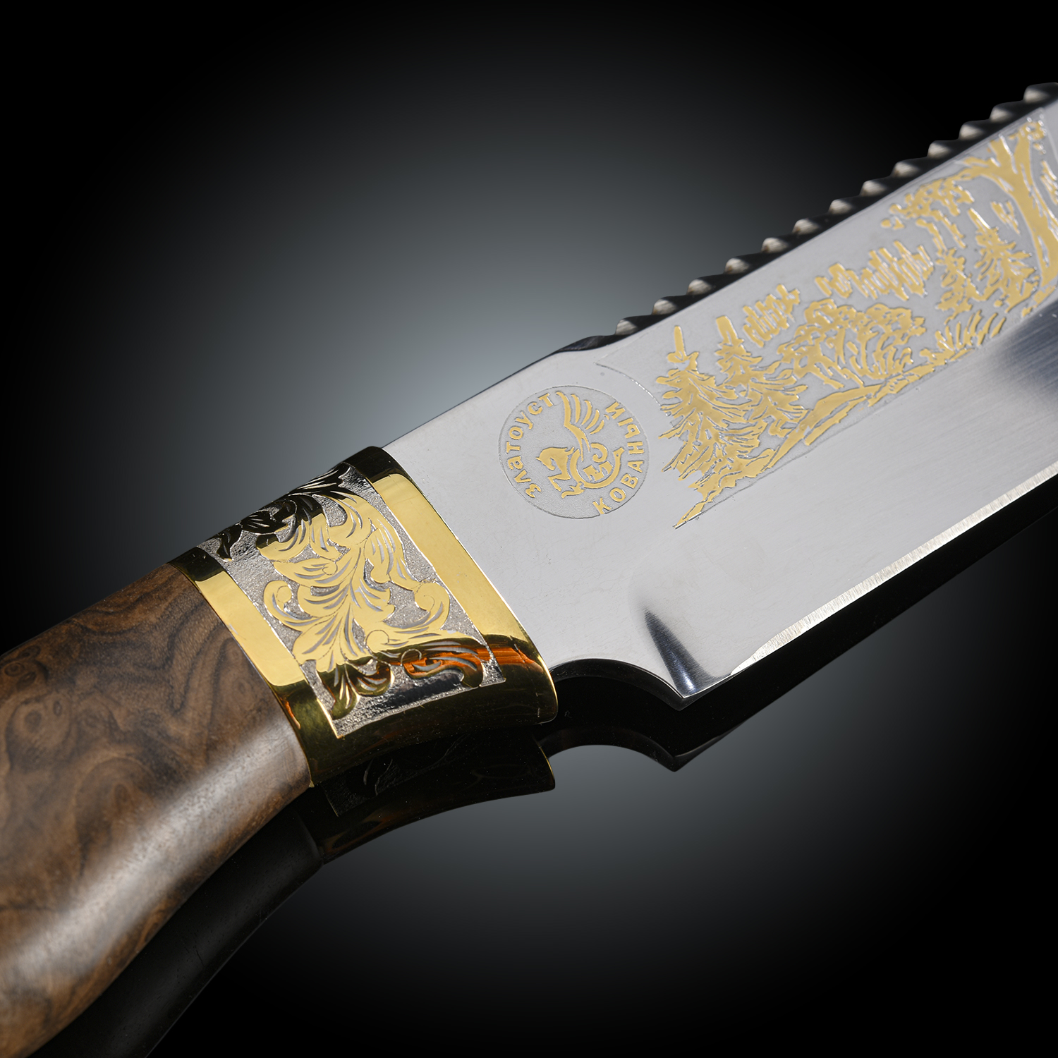 Нож сувенирный "Волк". Златоуст.Материалы: сталь ЭИ-107, латунь, никель, золото 999,9*, дерево.