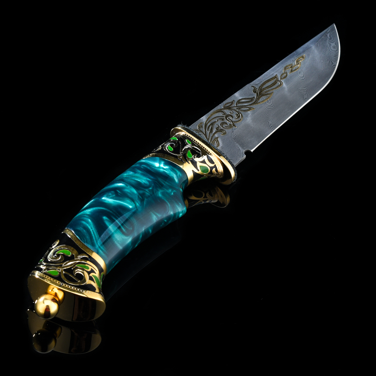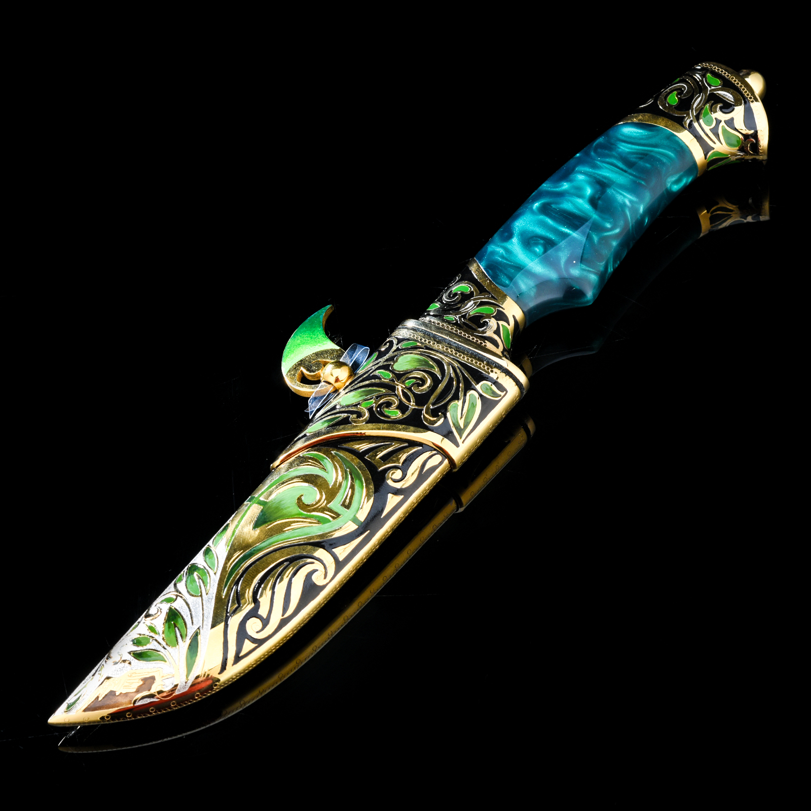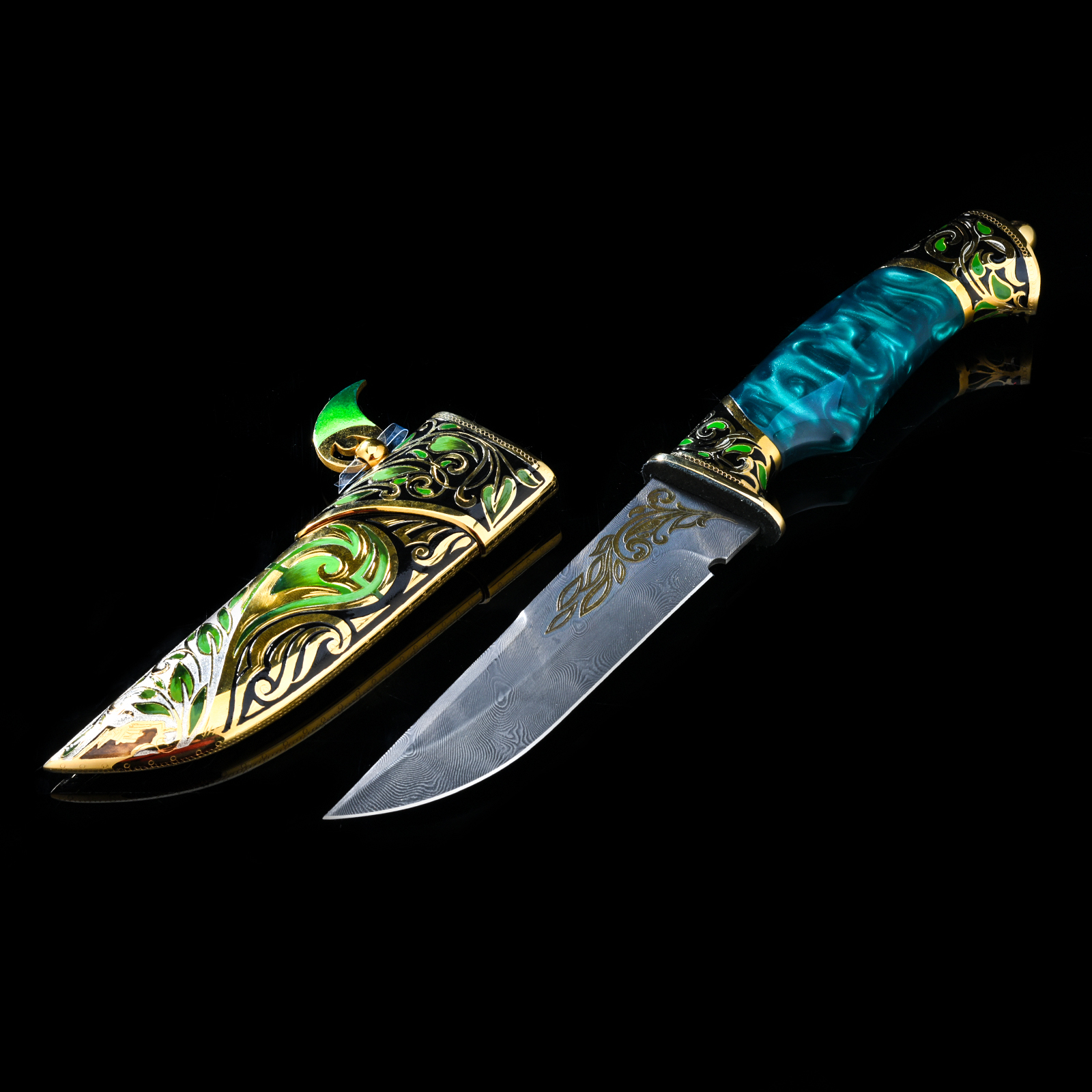 Нож сувенирный с золочением и эмалью. Златоуст.Материалы: сталь У10-7ХНМ, латунь, никель, золото 999,9*, эмаль, смола.