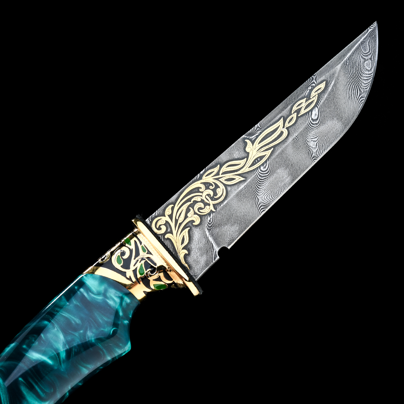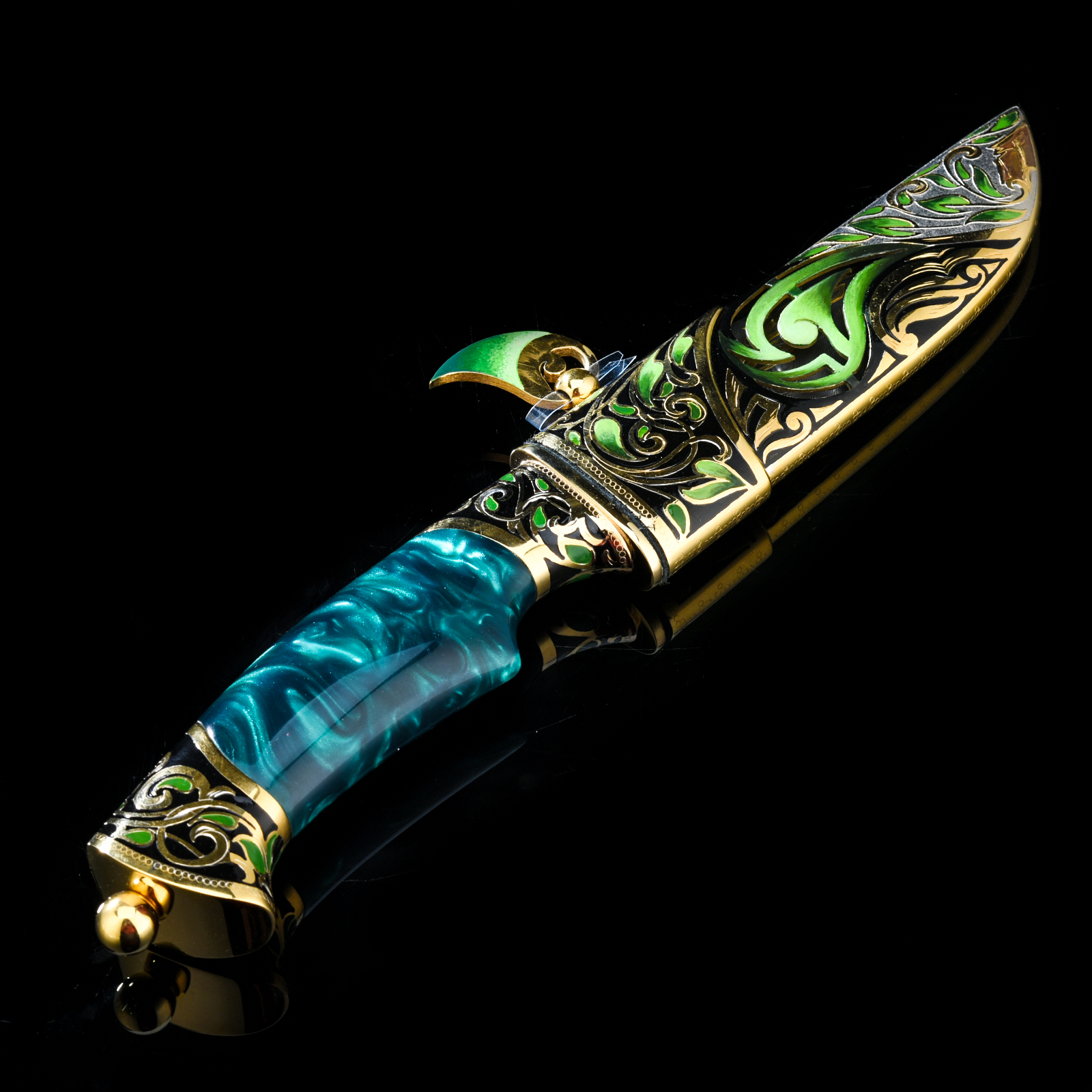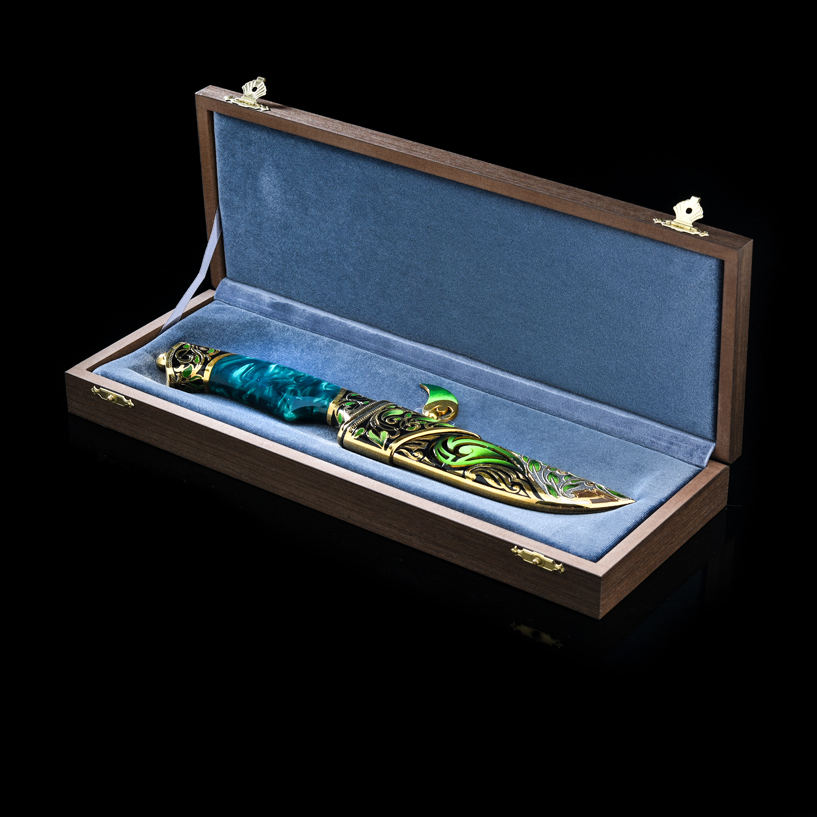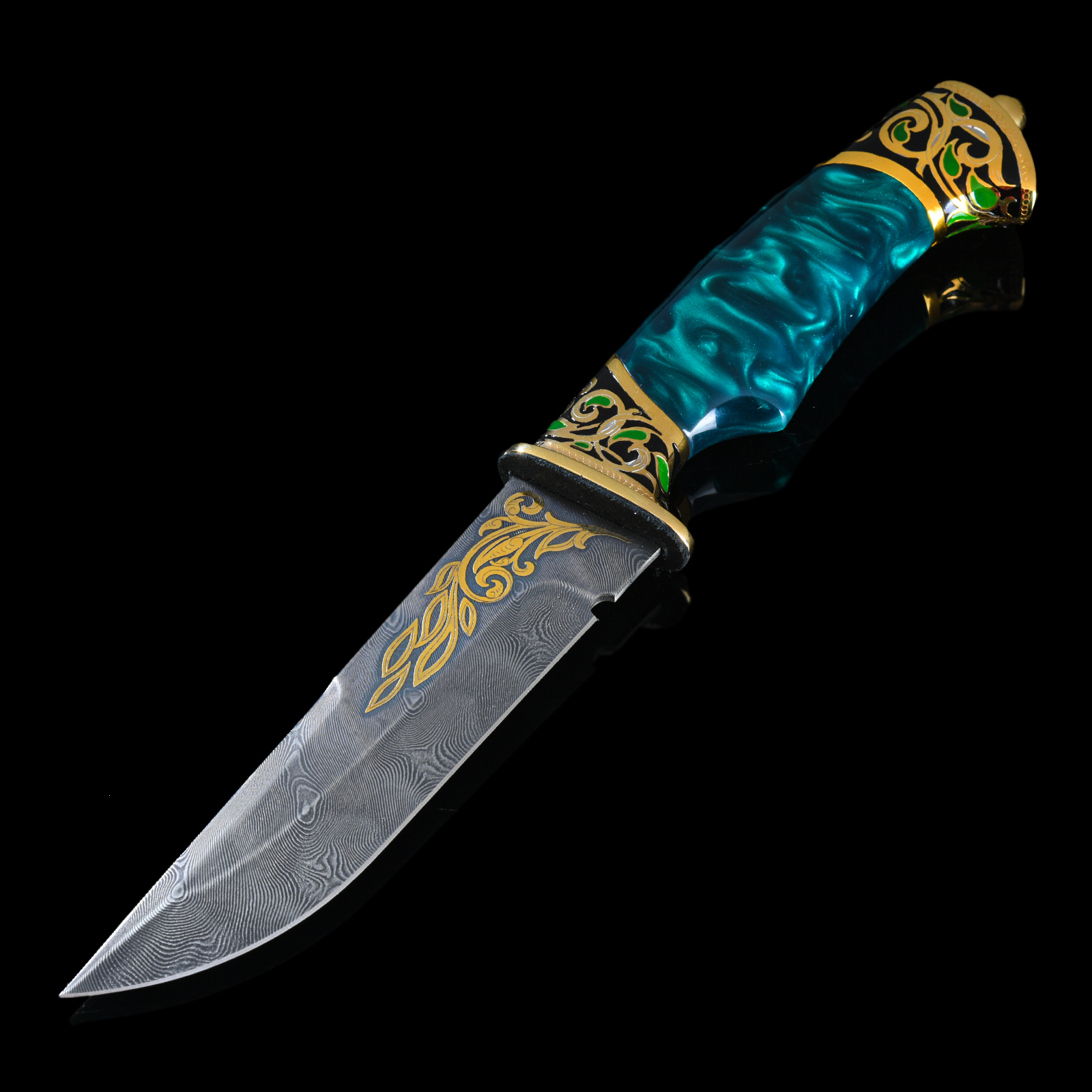Нож сувенирный с золочением и эмалью. Златоуст.Материалы: сталь У10-7ХНМ, латунь, никель, золото 999,9*, эмаль, смола.