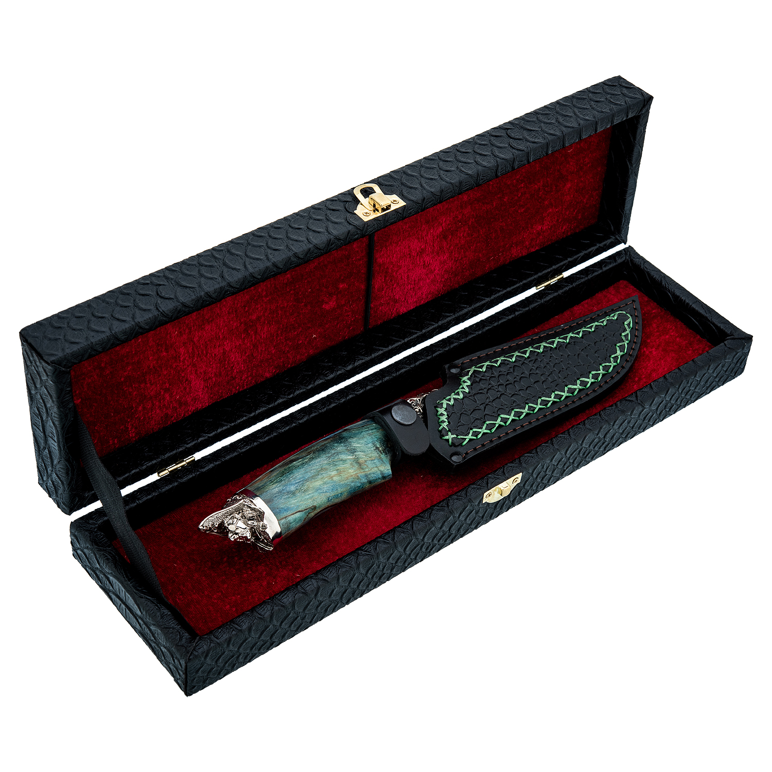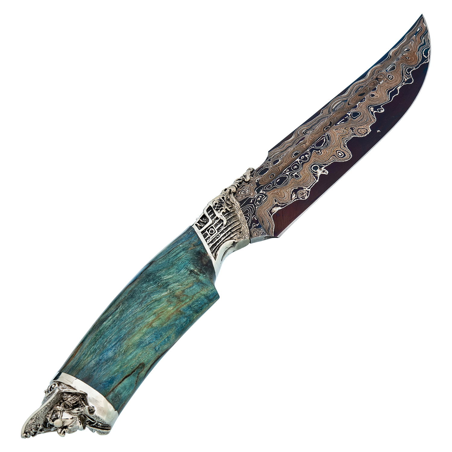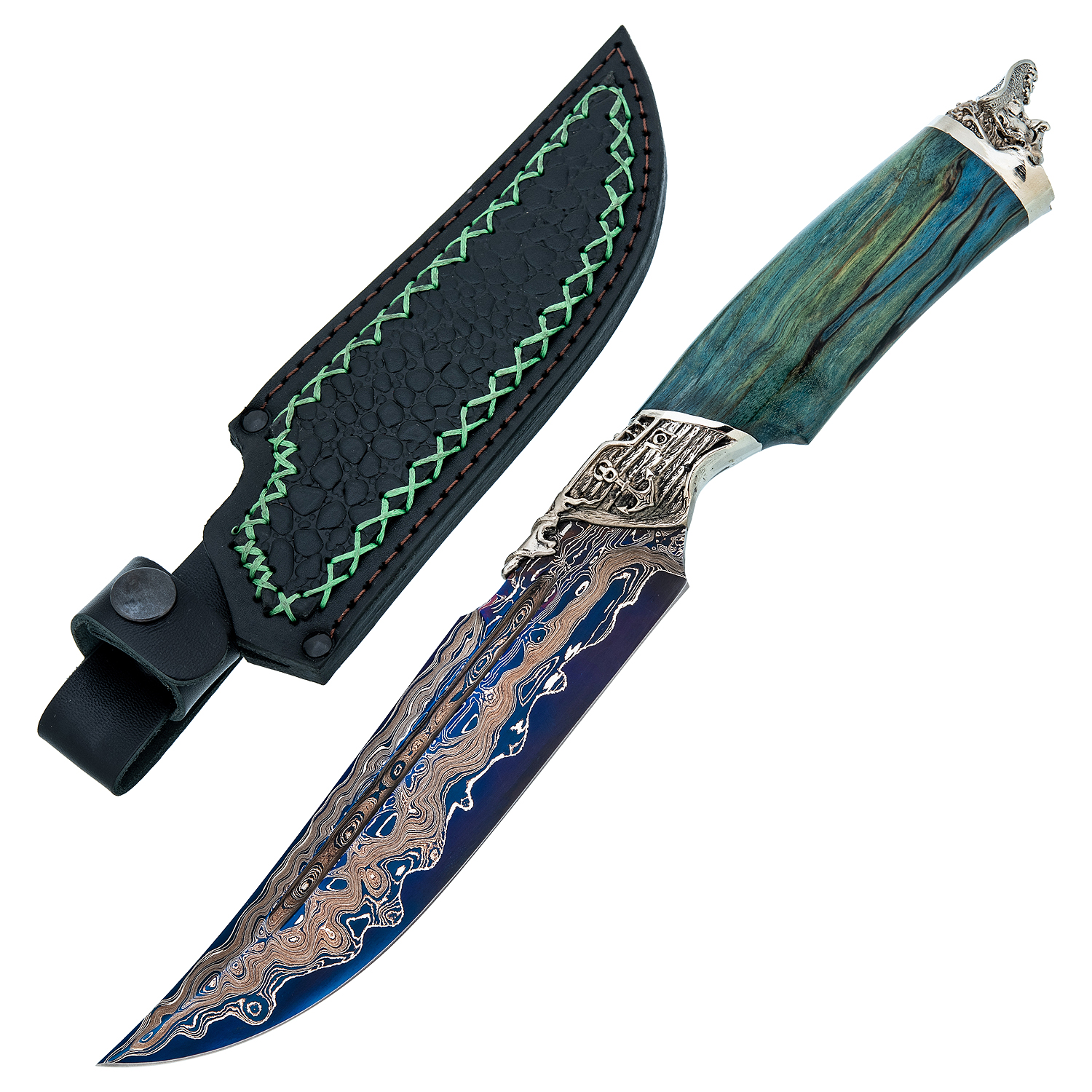 Материалы: дамасская сталь, латунь, дерево, кожа.