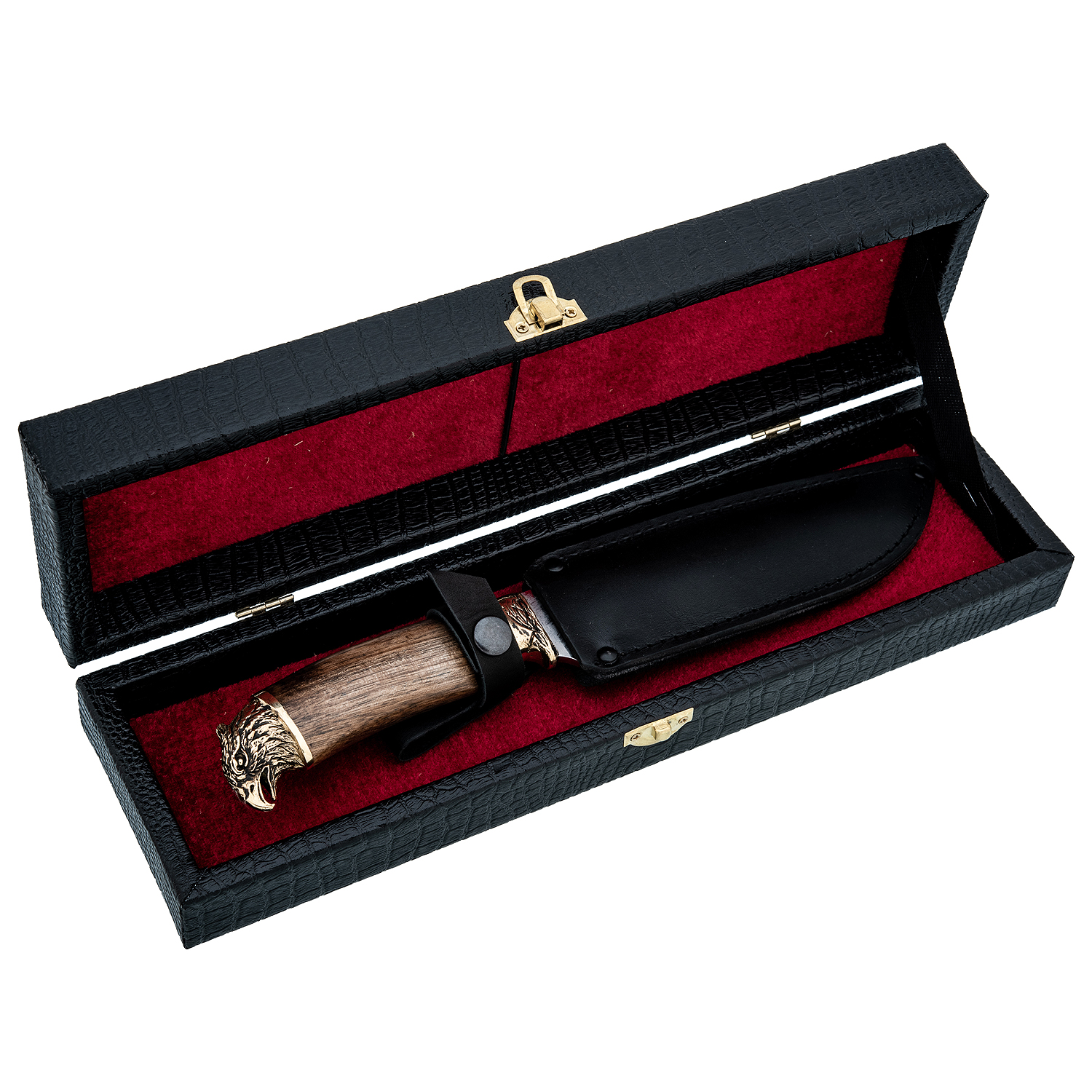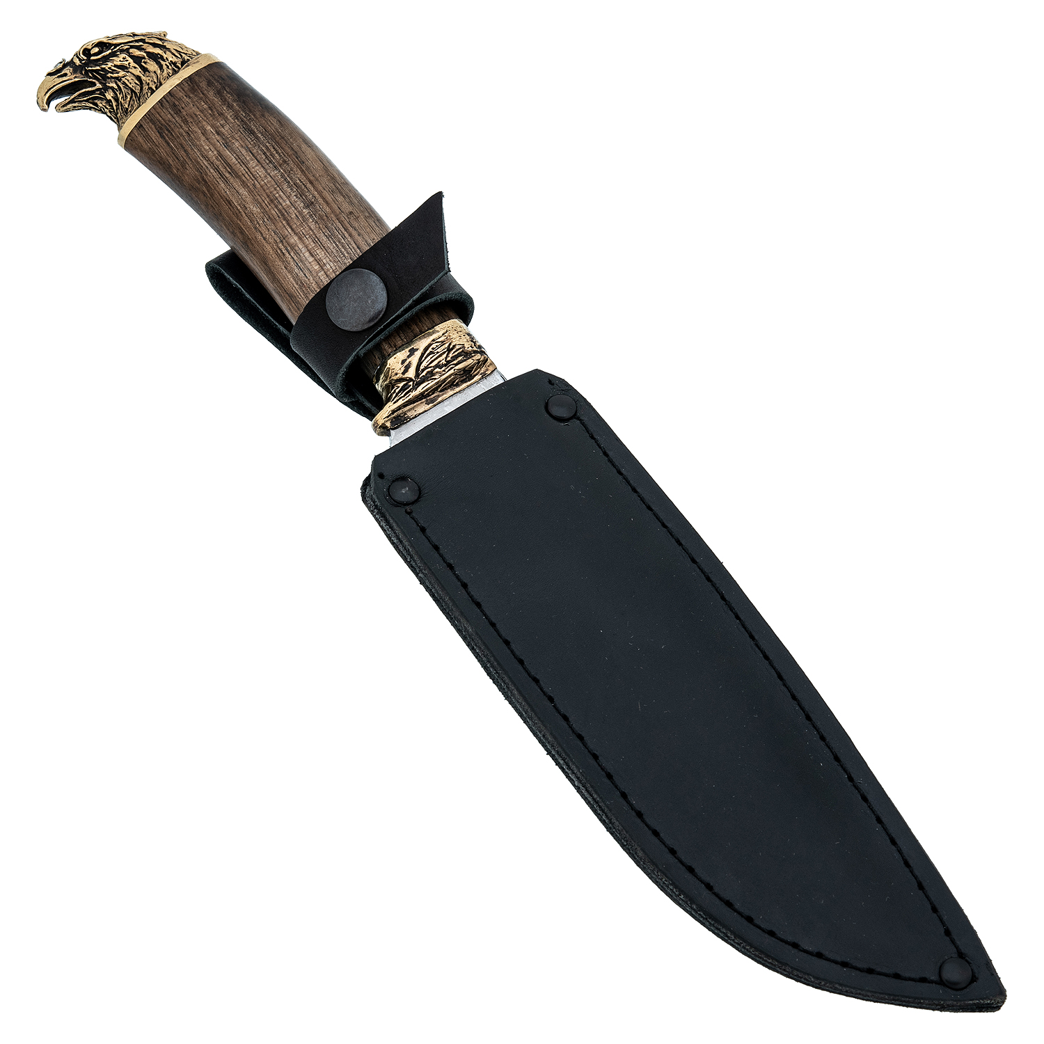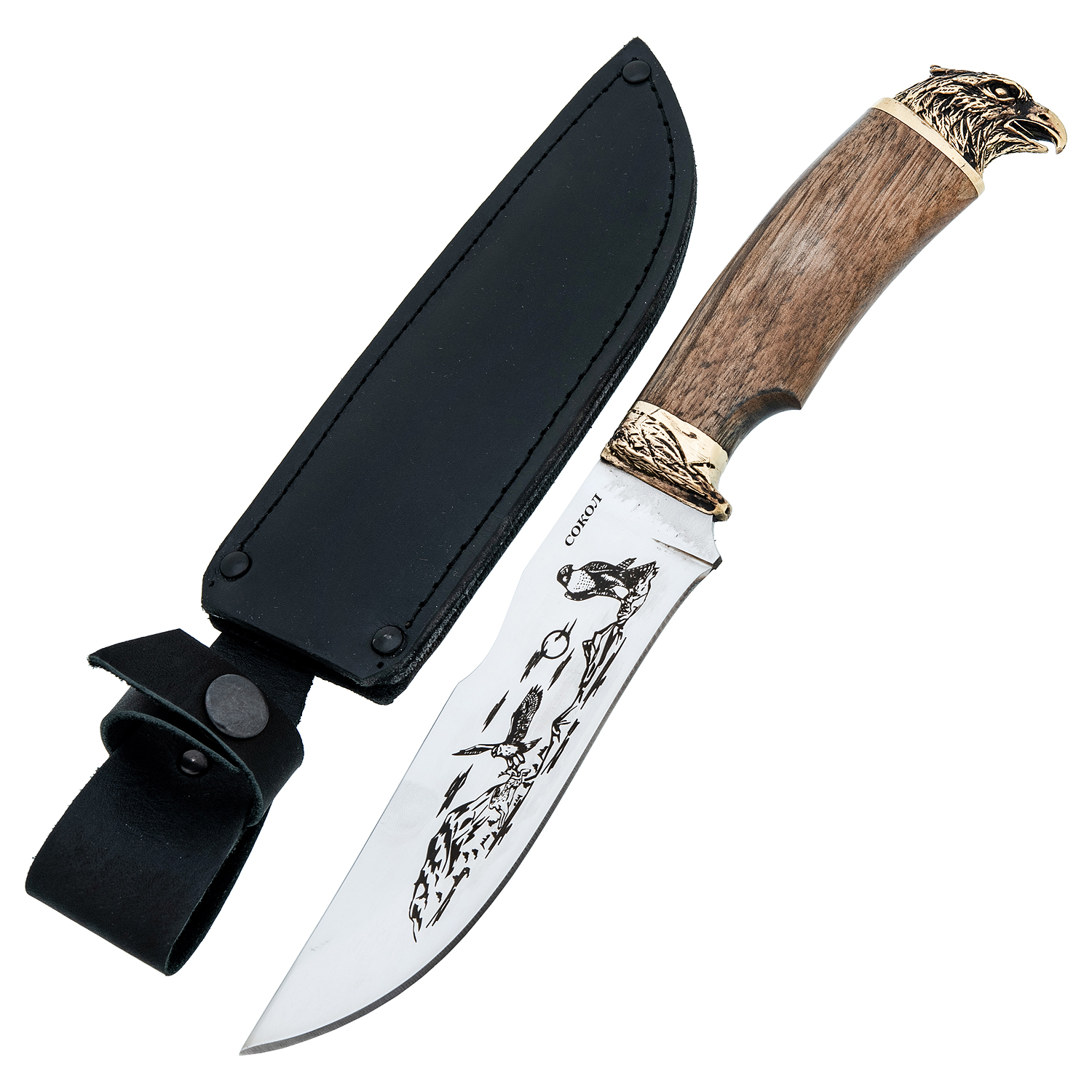 Нож сувенирный "Сокол".Материалы: сталь 65х13, латунь, дерево, кожа.
