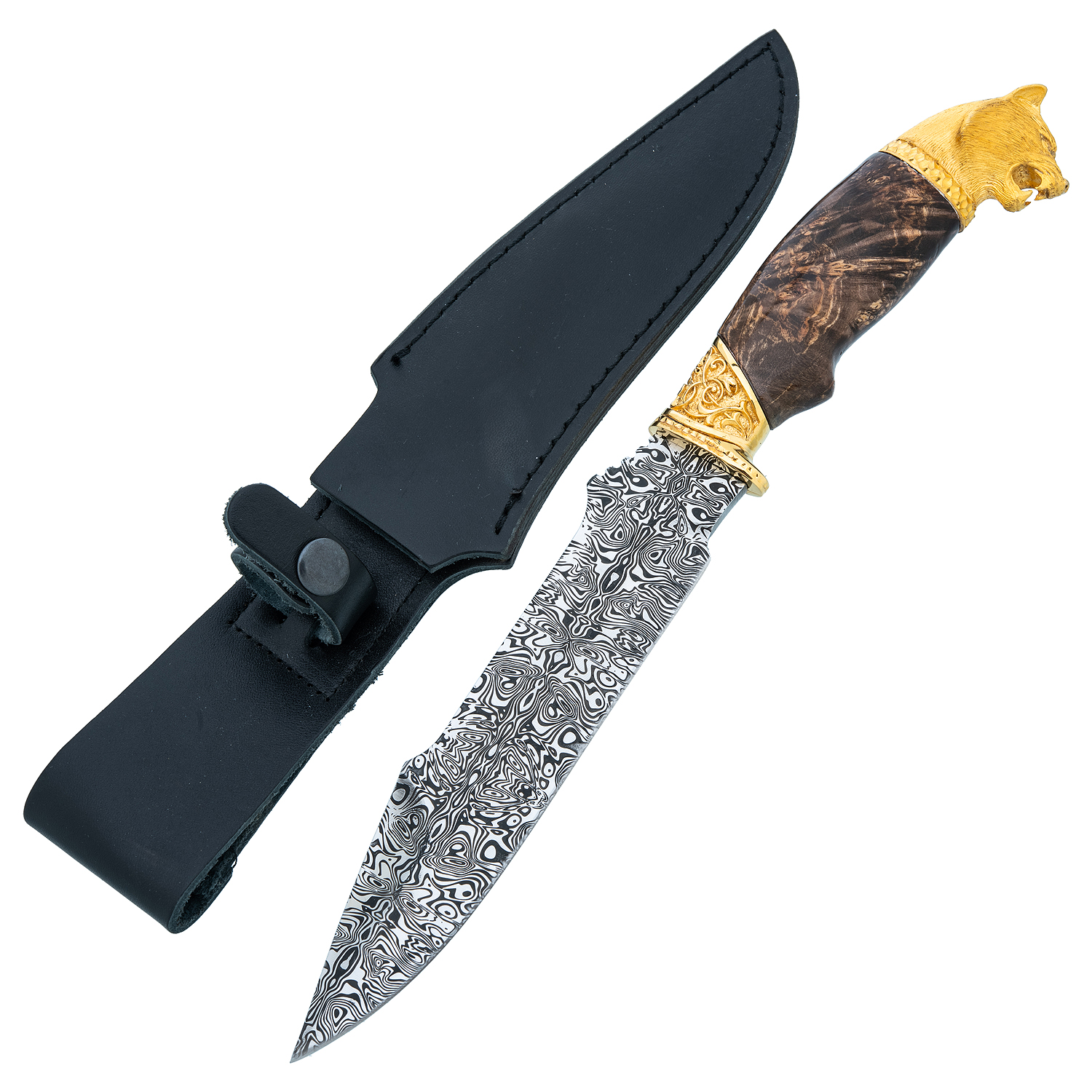 Материалы: дамасская сталь, дерево, латунь, золото 999,9*.