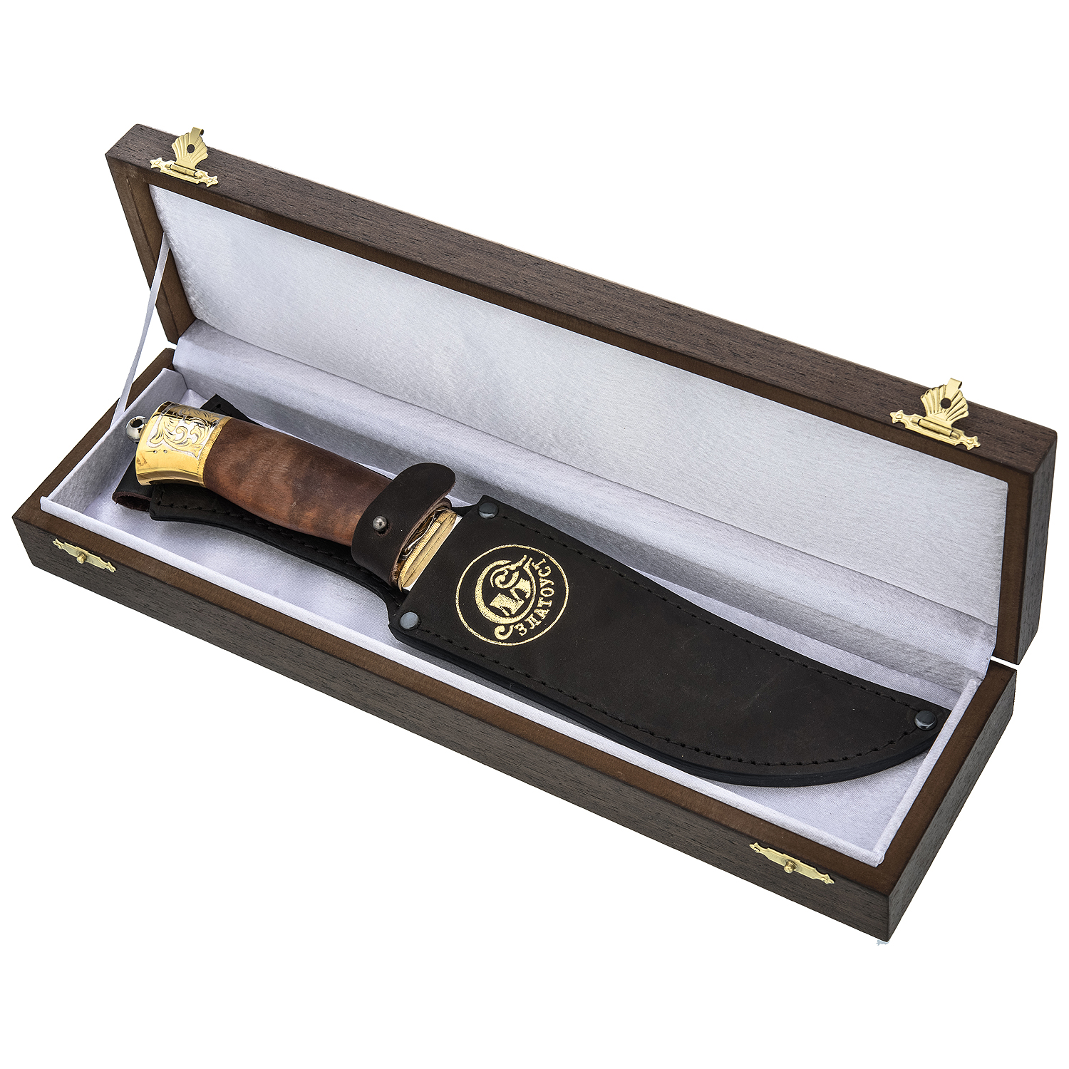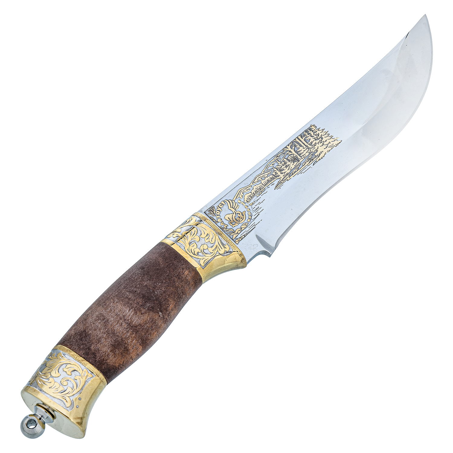 Нож сувенирный с позолотой. Златоуст.Материалы: сталь ЭИ-107, латунь, никель, золото 999,9*, дерево.
