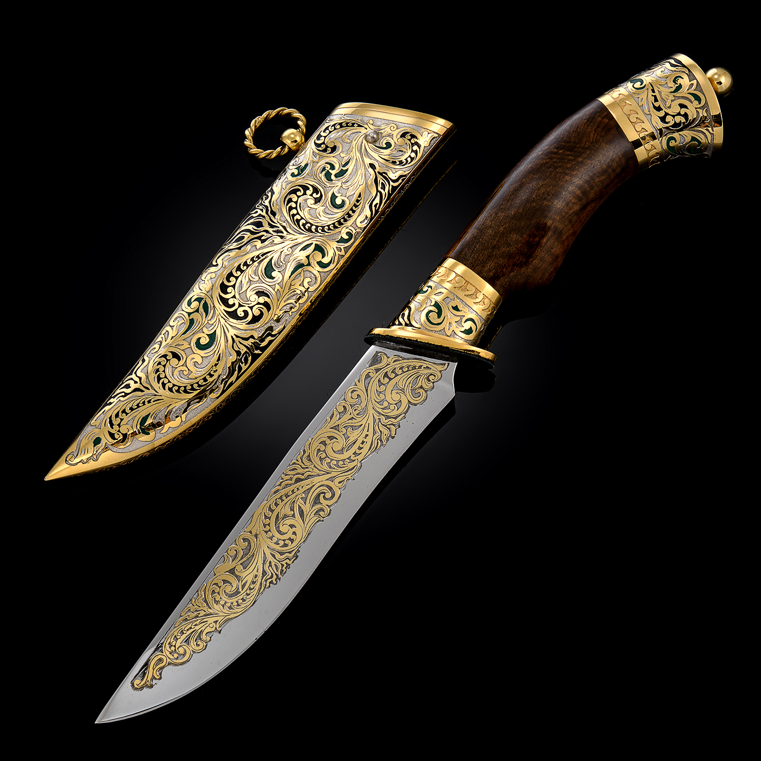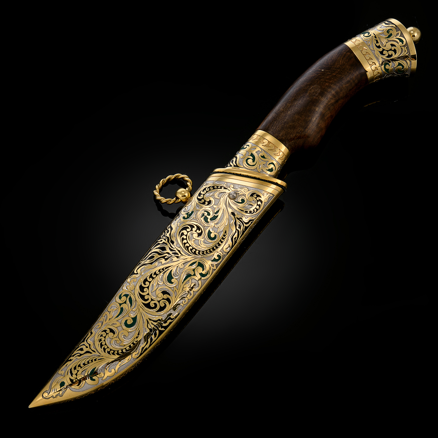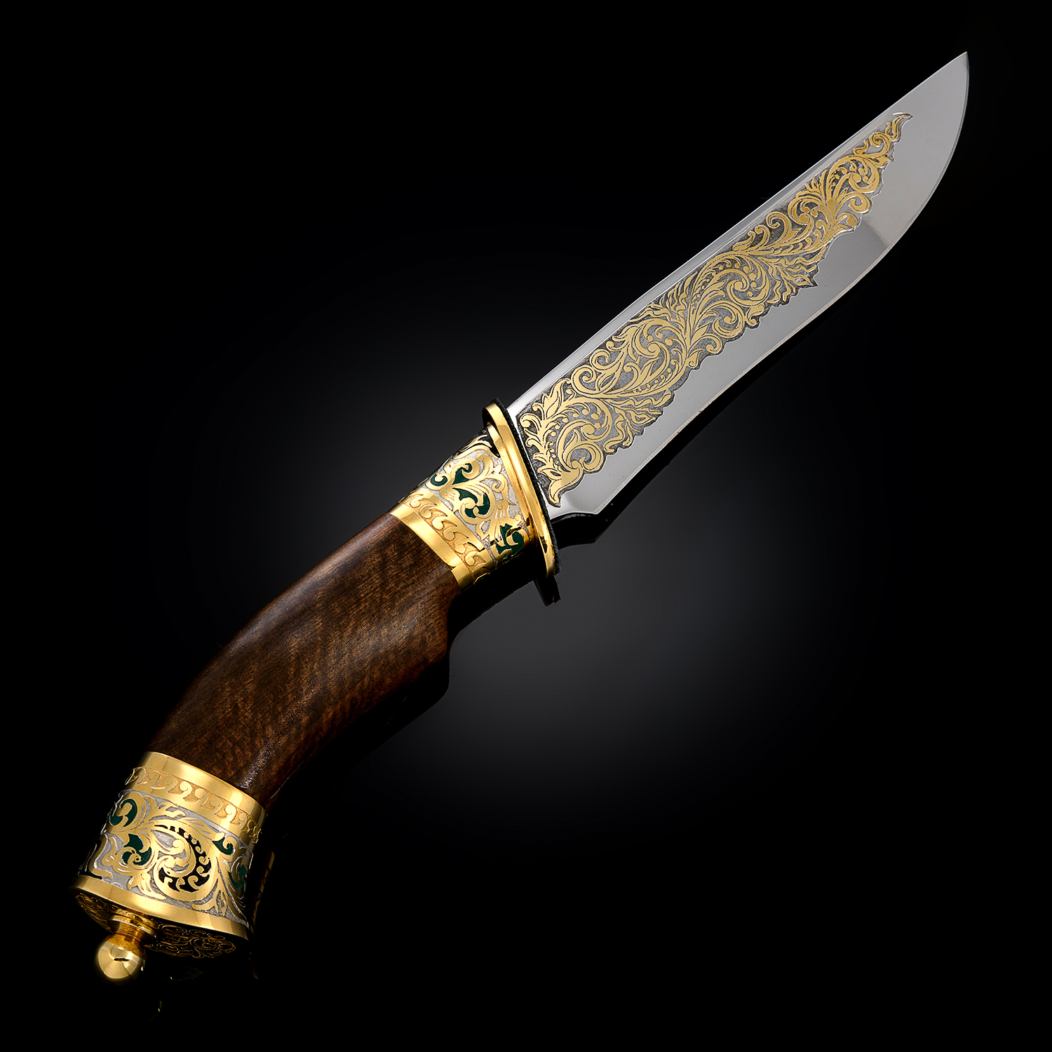 Нож сувенирный "Лев". Златоуст.Материалы: сталь ЭИ-107 (40Х10С2М), латунь, никель, золото 999,9*, эмаль, дерево.