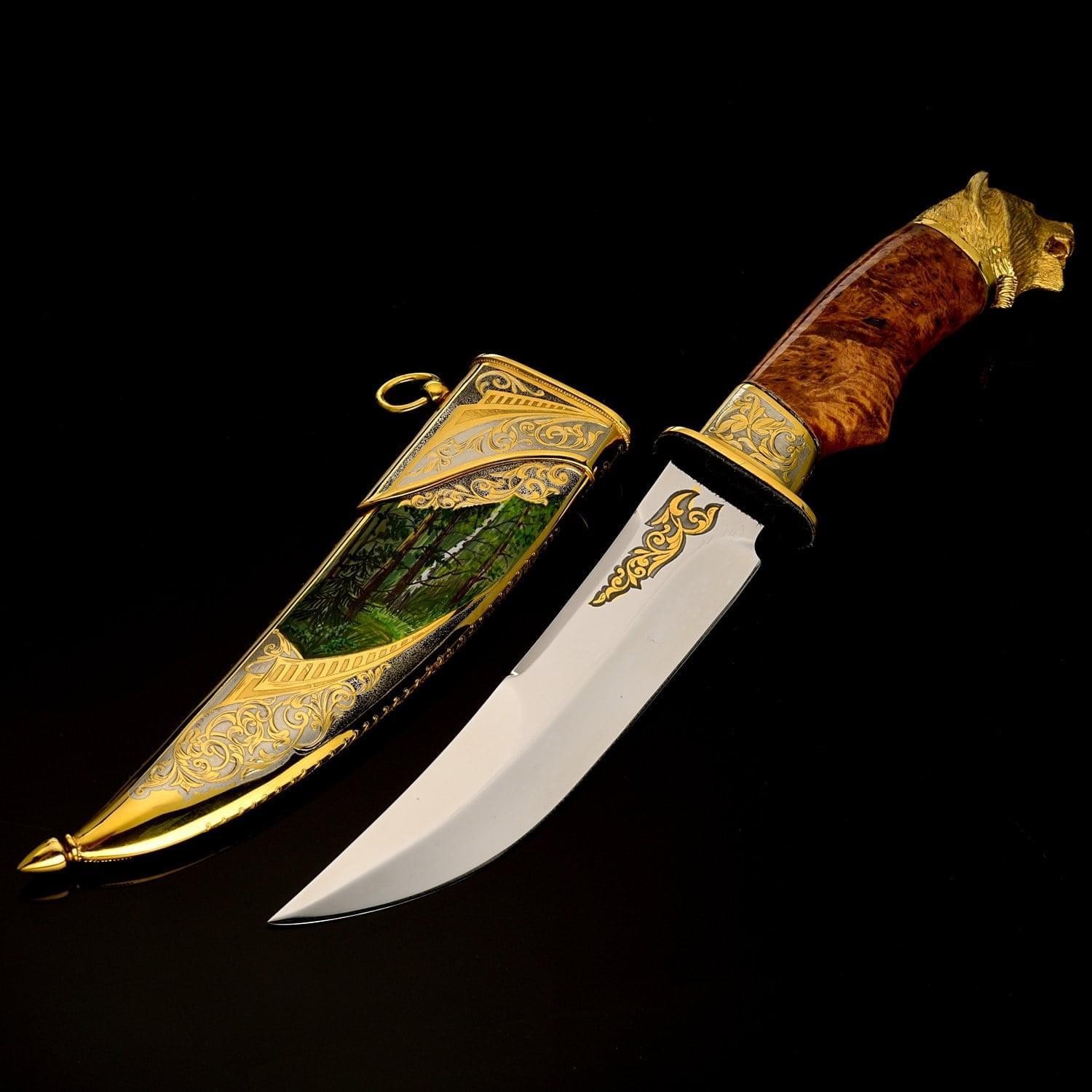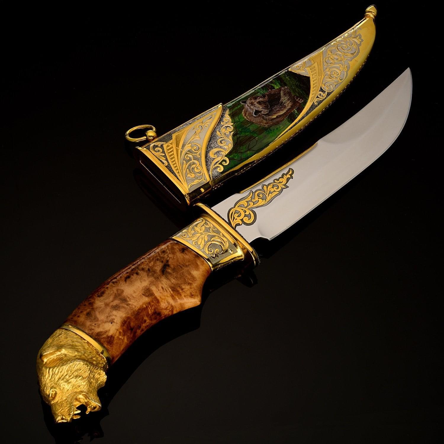 Образ медведя издавна на Руси считался олицетворением мужского начала и физической силы. Сегодня медведь - один из символов России. В героических мифах медведь является солнечным символом, у алхимиков средних веков – первоматерией, у американских индейцев он олицетворяет сверхъестественную силу, выносливость, у кельтов – воинское начало, у китайцев – храбрость. У древних греков медведица входила в свиту богини Дианы и была ее священным животным, а у японцев медведь означает мужество и силу. В северо-европейской традиции именно медведь, а не лев считается настоящим царем зверей и учителем, научившим людей обращаться с огнем, плавить железо, охотиться, сеять хлеб и ловить лосей. Его появление весной из берлоги вместе с медвежонком символизирует воскресение и жизнь. Медведи всюду: на гербах государств, регионов и городов, эмблемах олимпиад и партий. Первые ножи, каменные и кремневые, появились в эпоху палеолита. 5 тысяч лет назад человек научился получать и обрабатывать металл, и стал изготавливать холодное оружие из меди и бронзы. В Южной Америке ножи делали даже из золота.