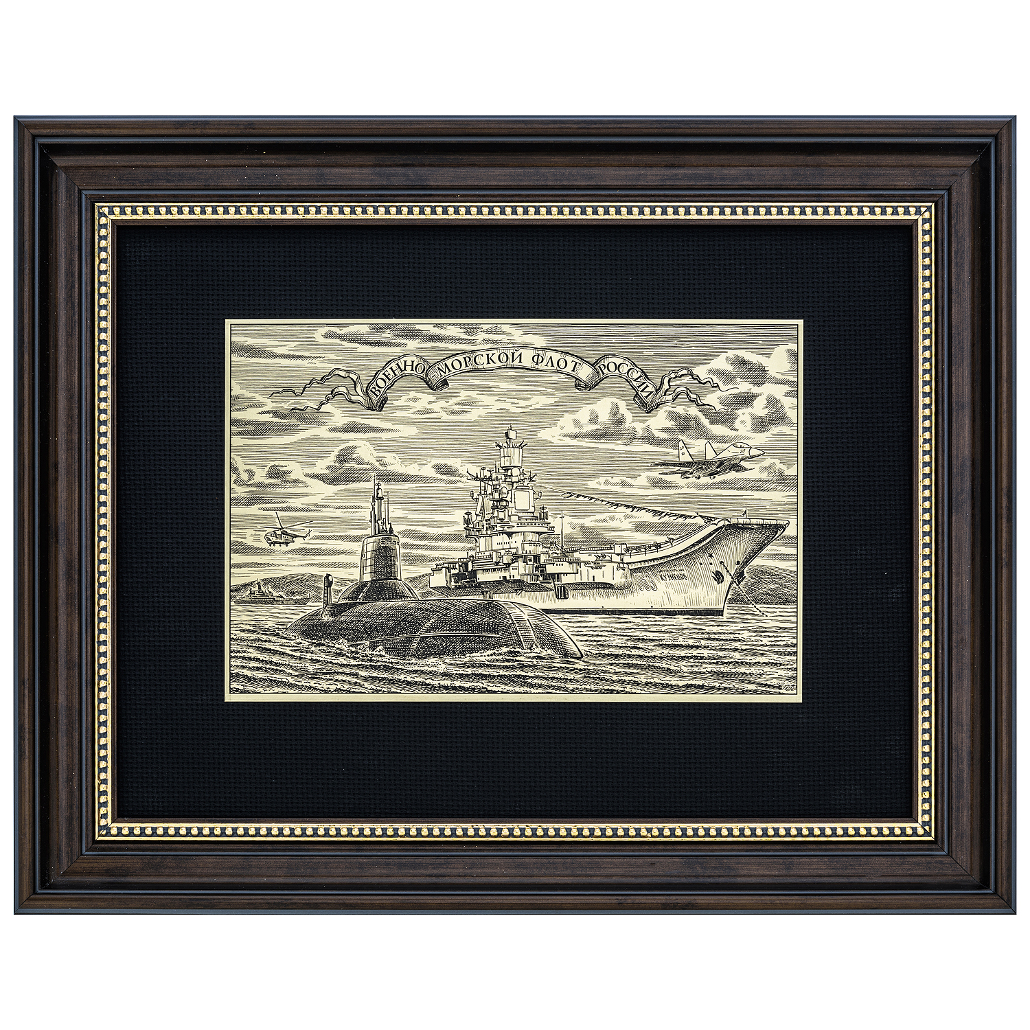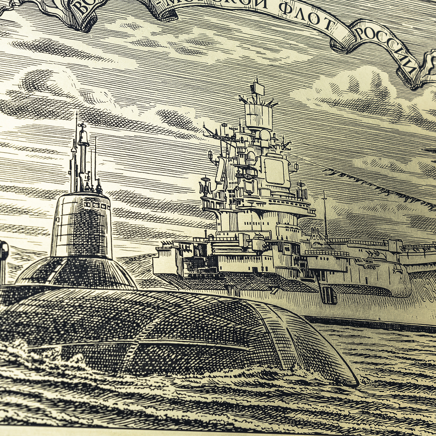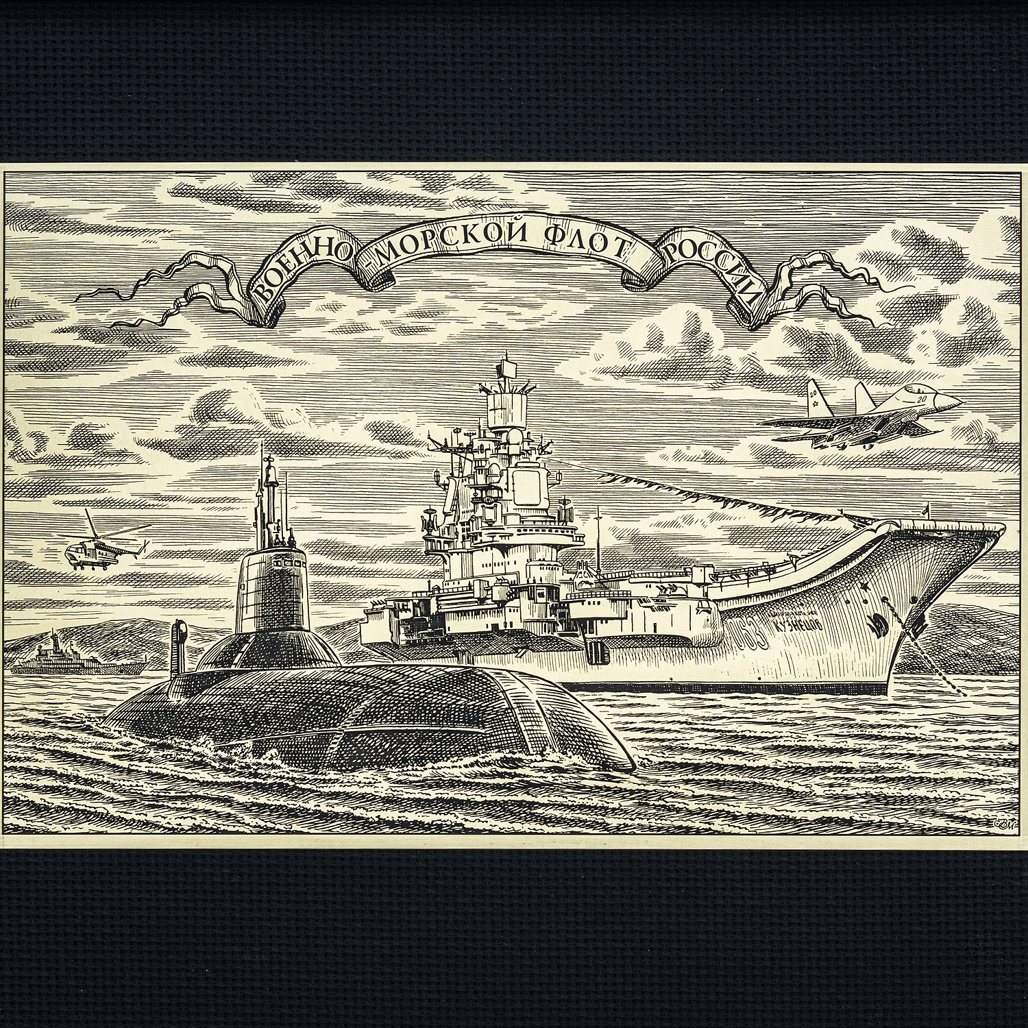 Офорт черно-белый "Военно-морской флот России".
