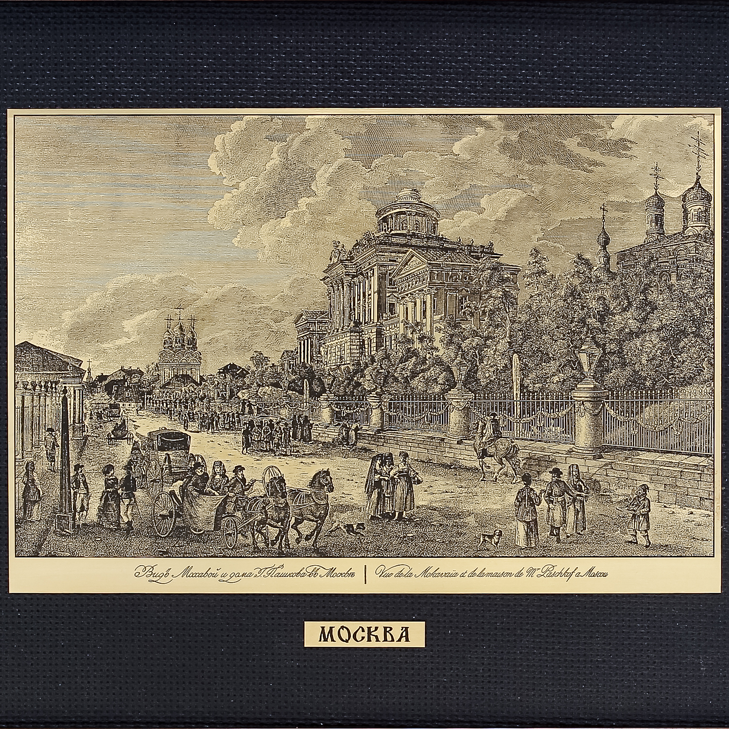 Офорт черно-белый "Старая Москва. Дом Пашкова".Материалы: латунь, паспарту, деревянный багет.