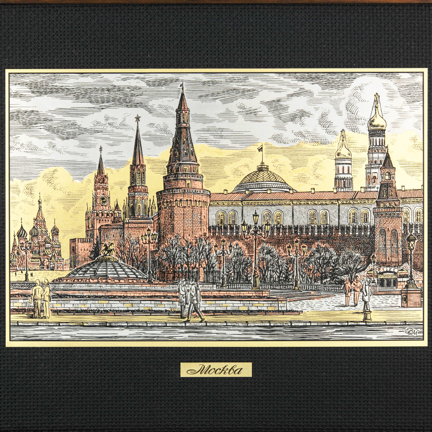 Русские подарки и сувениры → Интерьерные изделия → Офорты → Офорт цветной "Москва. Манежная площадь" 30х40 см