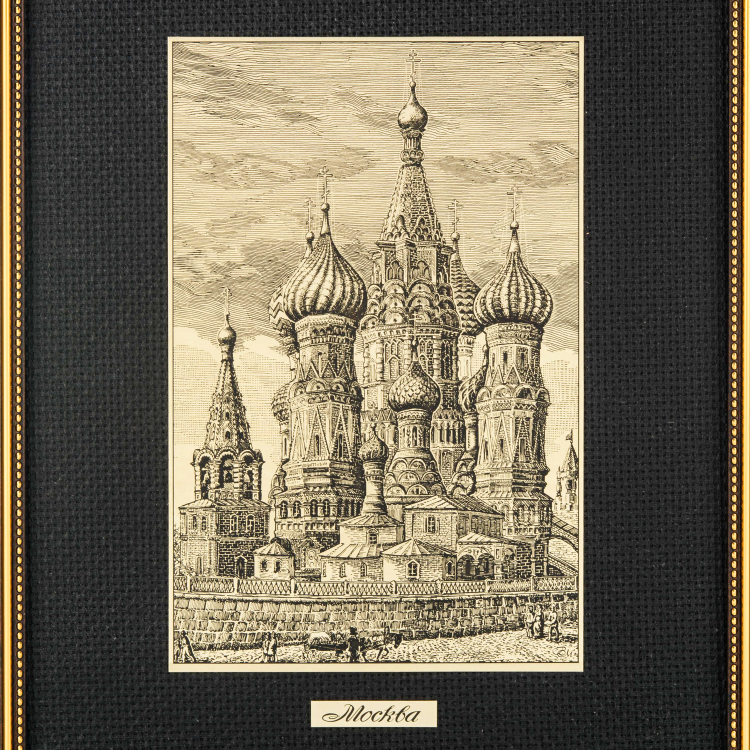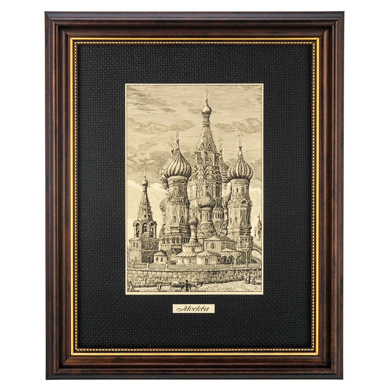 Русские подарки и сувениры → Интерьерные изделия → Офорты → Офорт черно-белый "Москва. Покровский собор" 25х32 см