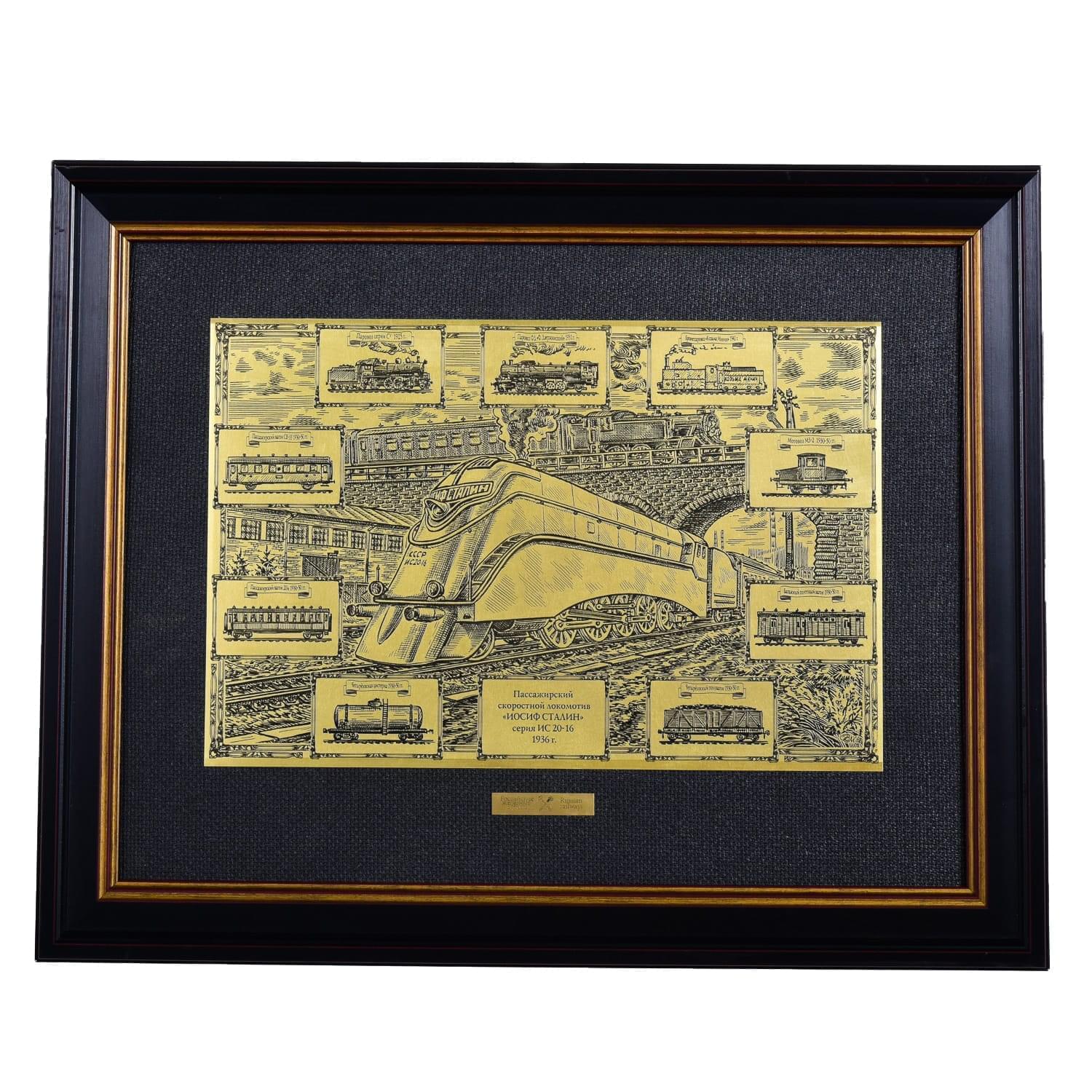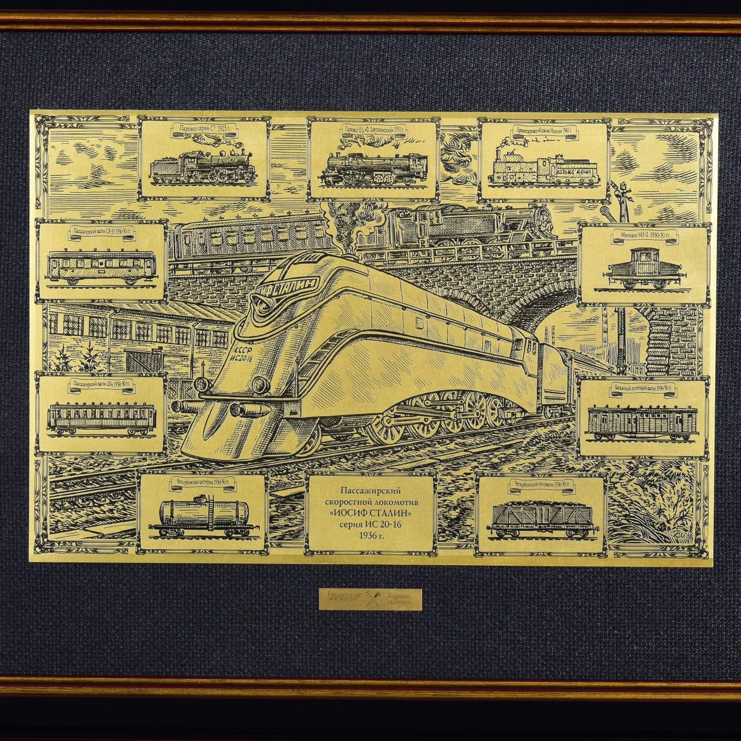 Русские подарки и сувениры → Интерьерные изделия → Офорты → Офорт "Локомотив "Иосиф Сталин". Коллаж 1" 42 х 55 см