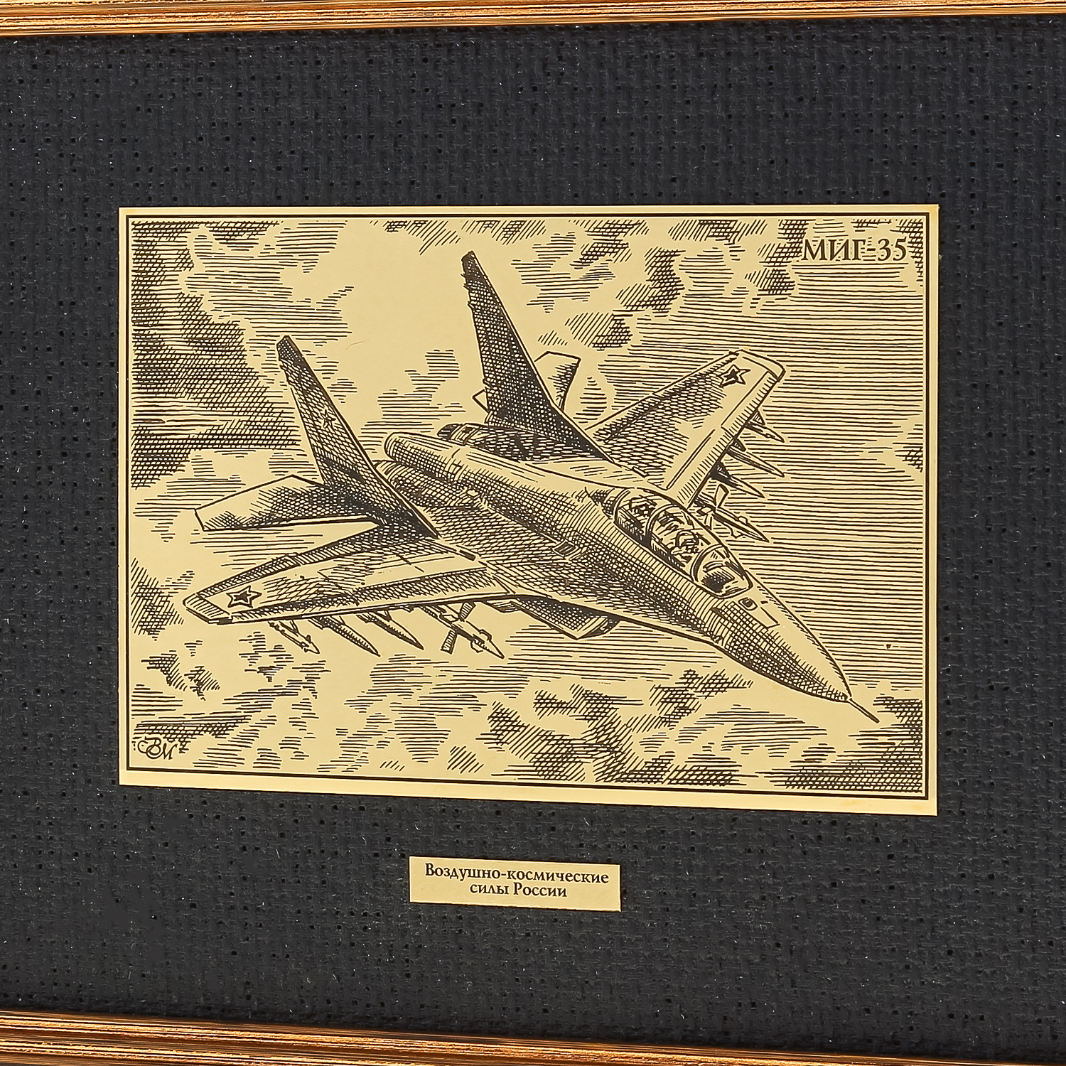 Офорт черно-белый "Авиация. МИГ-35" 17х22 см