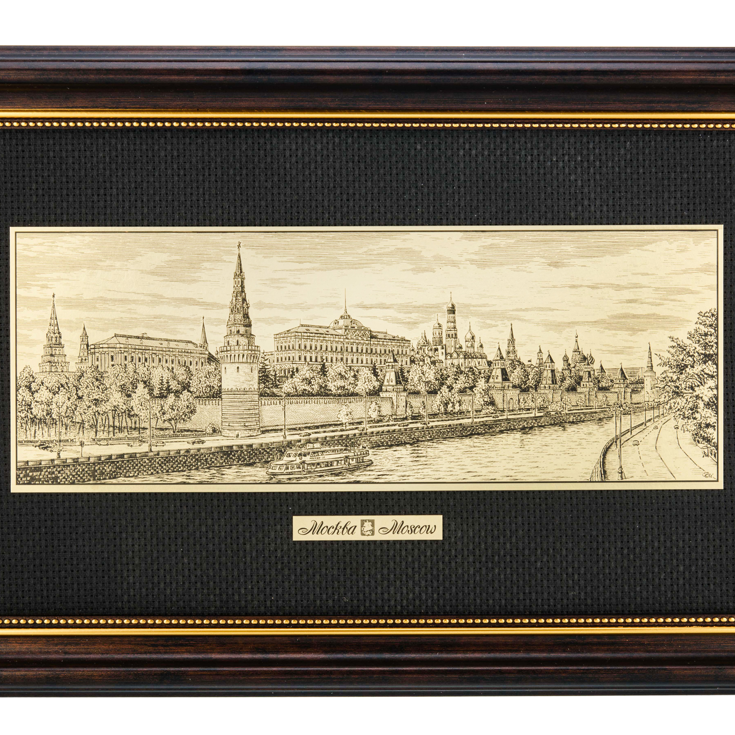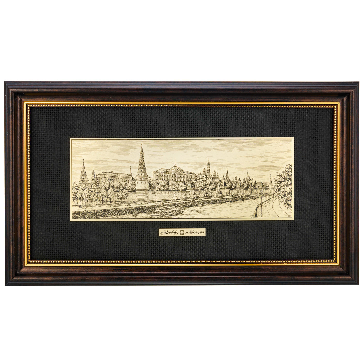Офорт черно-белый "Вид на Кремль с Большого Каменного моста" 21х40 см