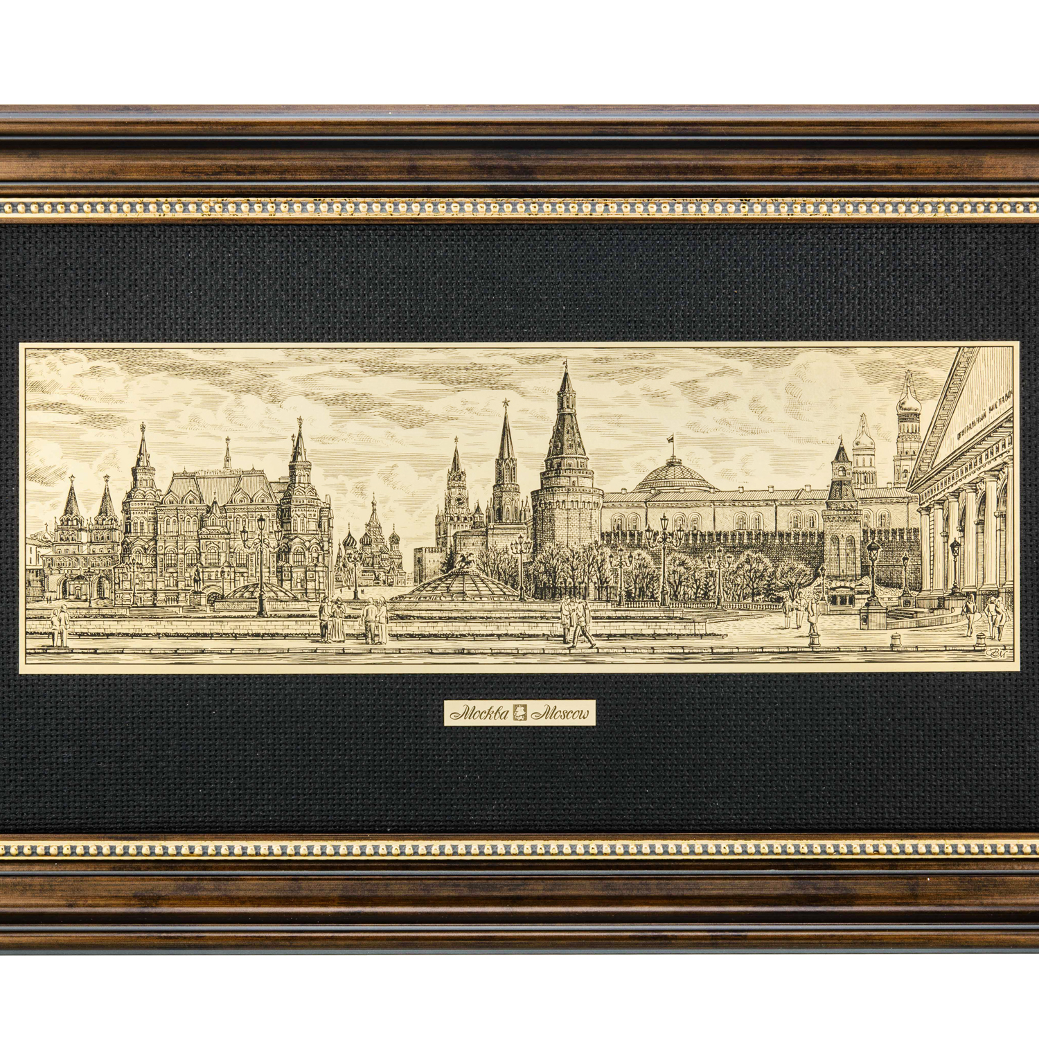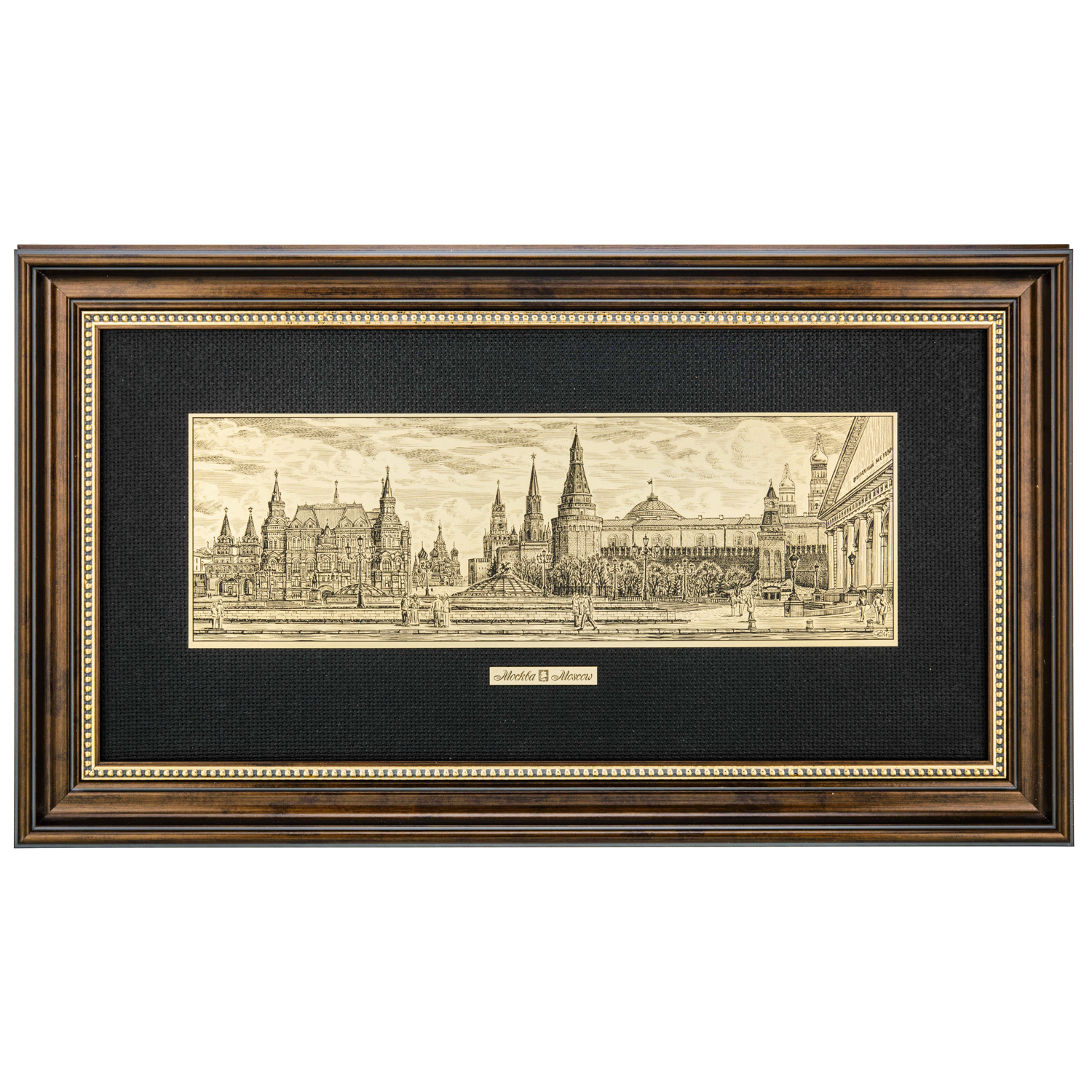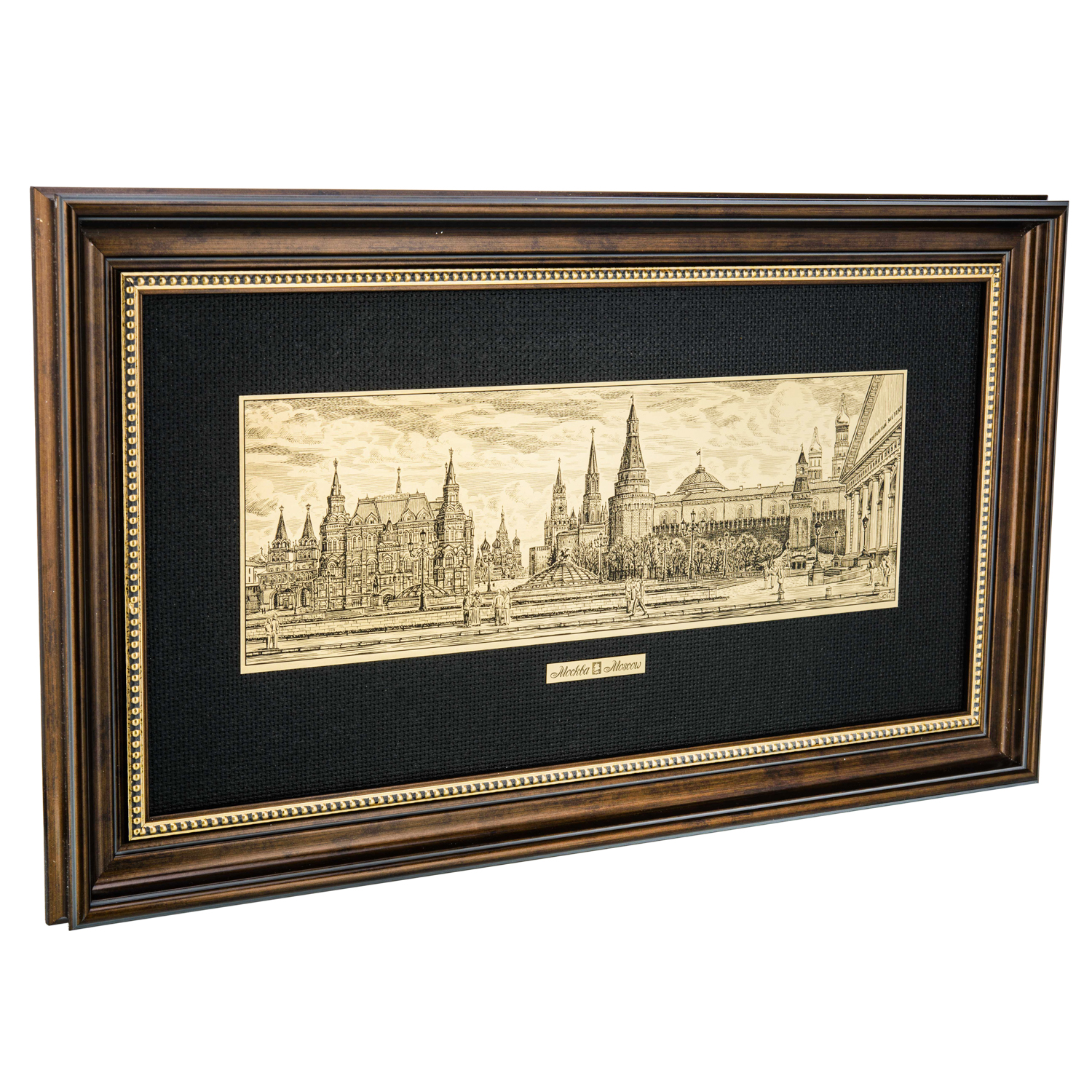 Русские подарки и сувениры → Интерьерные изделия → Офорты → Офорт черно-белый "Манежная площадь. Москва" 27х55 см