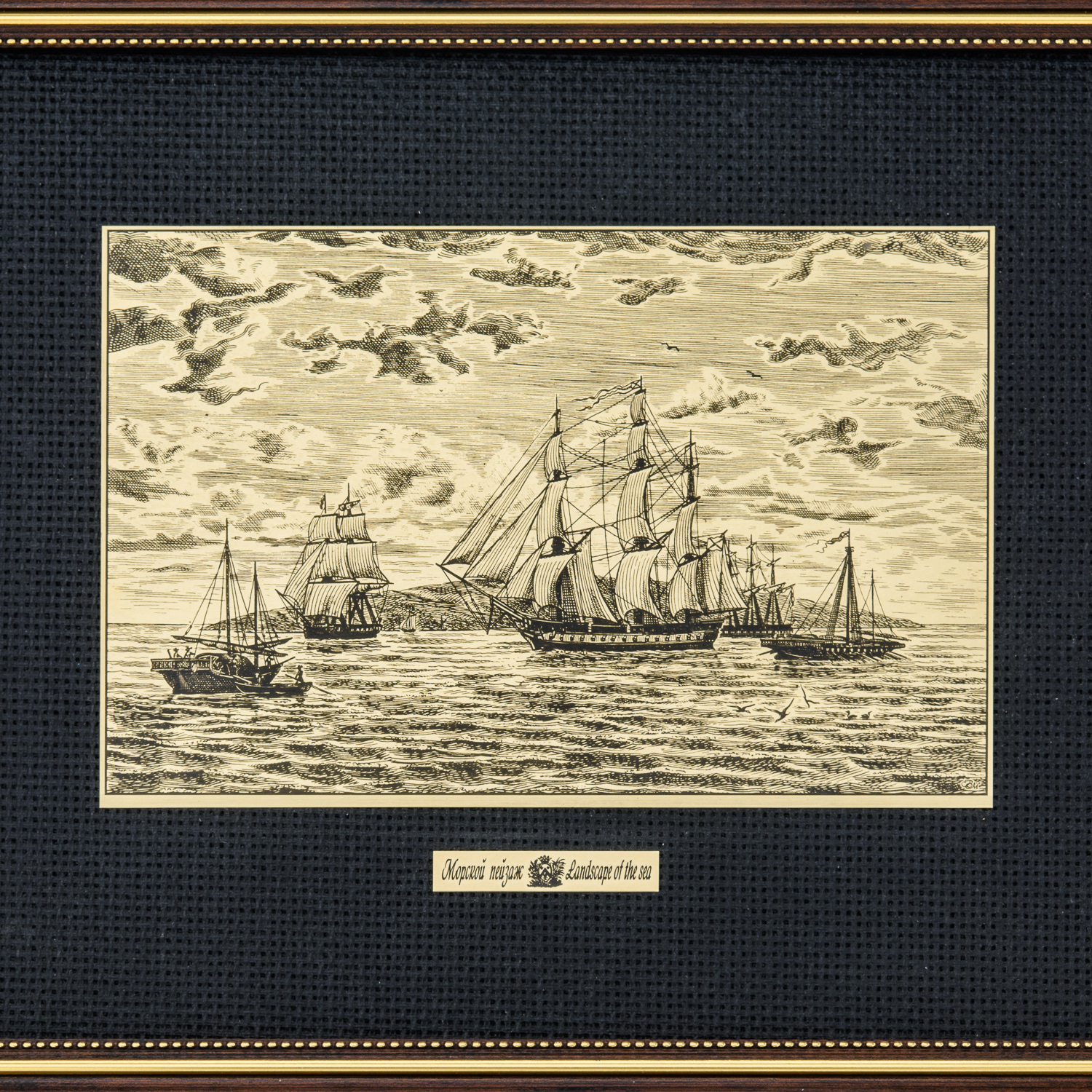 7853 /25*32см Офорт черно-белый "Морской пейзаж 2"   .