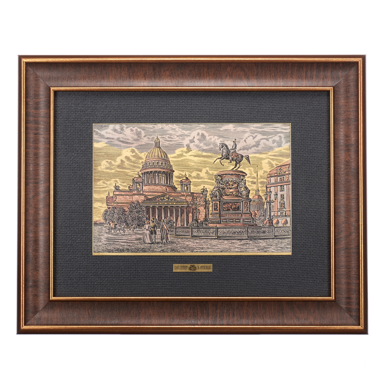 0028751/30*40см  Офорт цветной "СПБ Вид на Исаакиевский обор" .