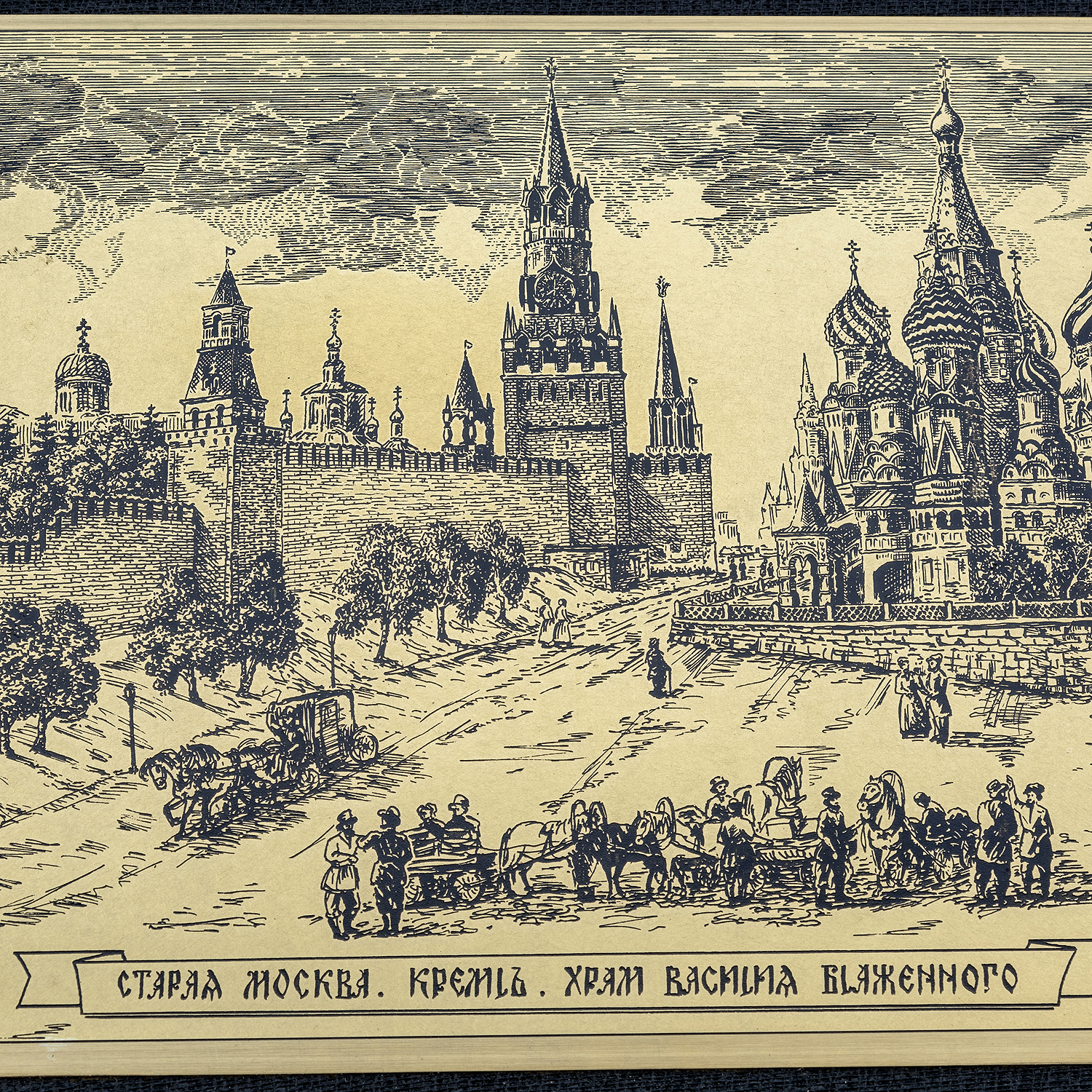 78311/30*40см Офорт черно-белый  "Старая Москва. Храм Василия Блаженного" ..