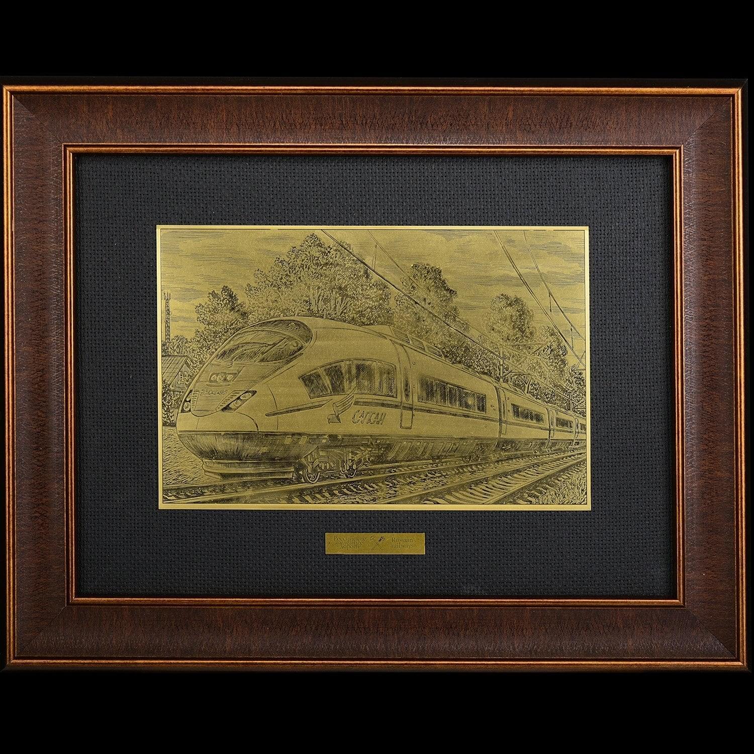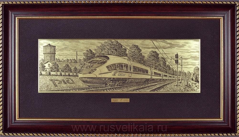 14125/21*40см-зол Офорт черно-белый "РЖД "Сапсан" ЗОЛОЧЕНИЕ ....Извините, товар отсутствует