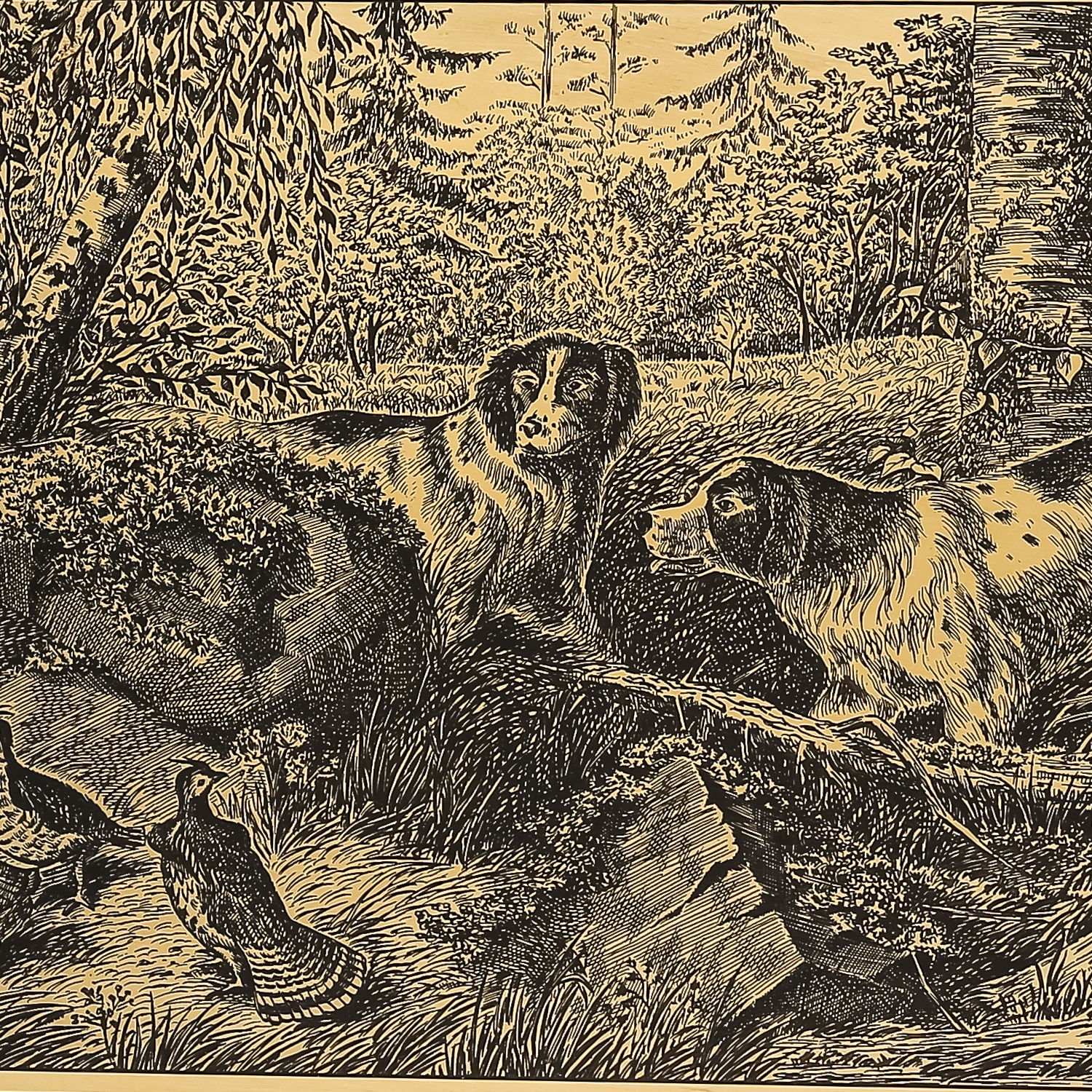 030292/25*32см Офорт черно-белый "Охота на куропаток" ..
