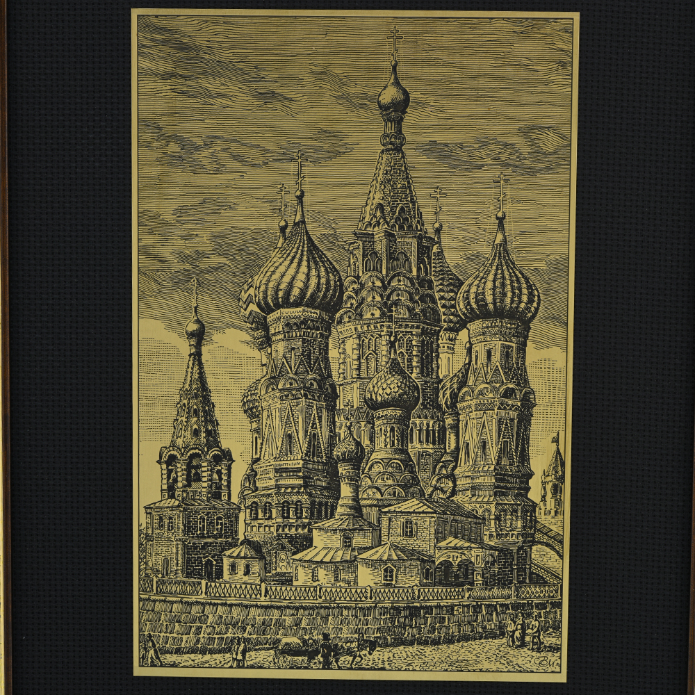 783743040 /30*40см Офорт черно-белый "Старая Москва. Покровский собор"