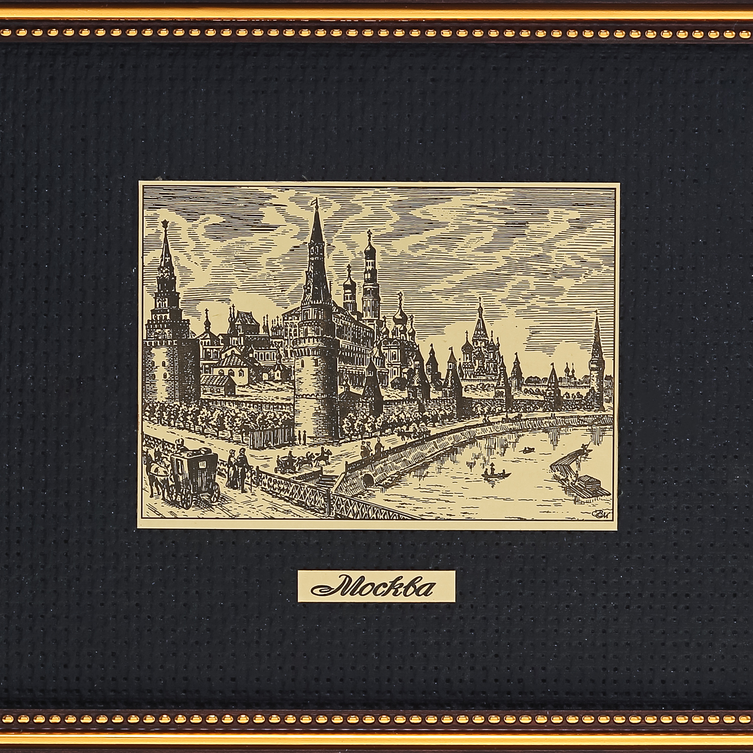 0070657/15*19см Офорт черно-белый "Старая Москва. Вид на Кремль с моста"