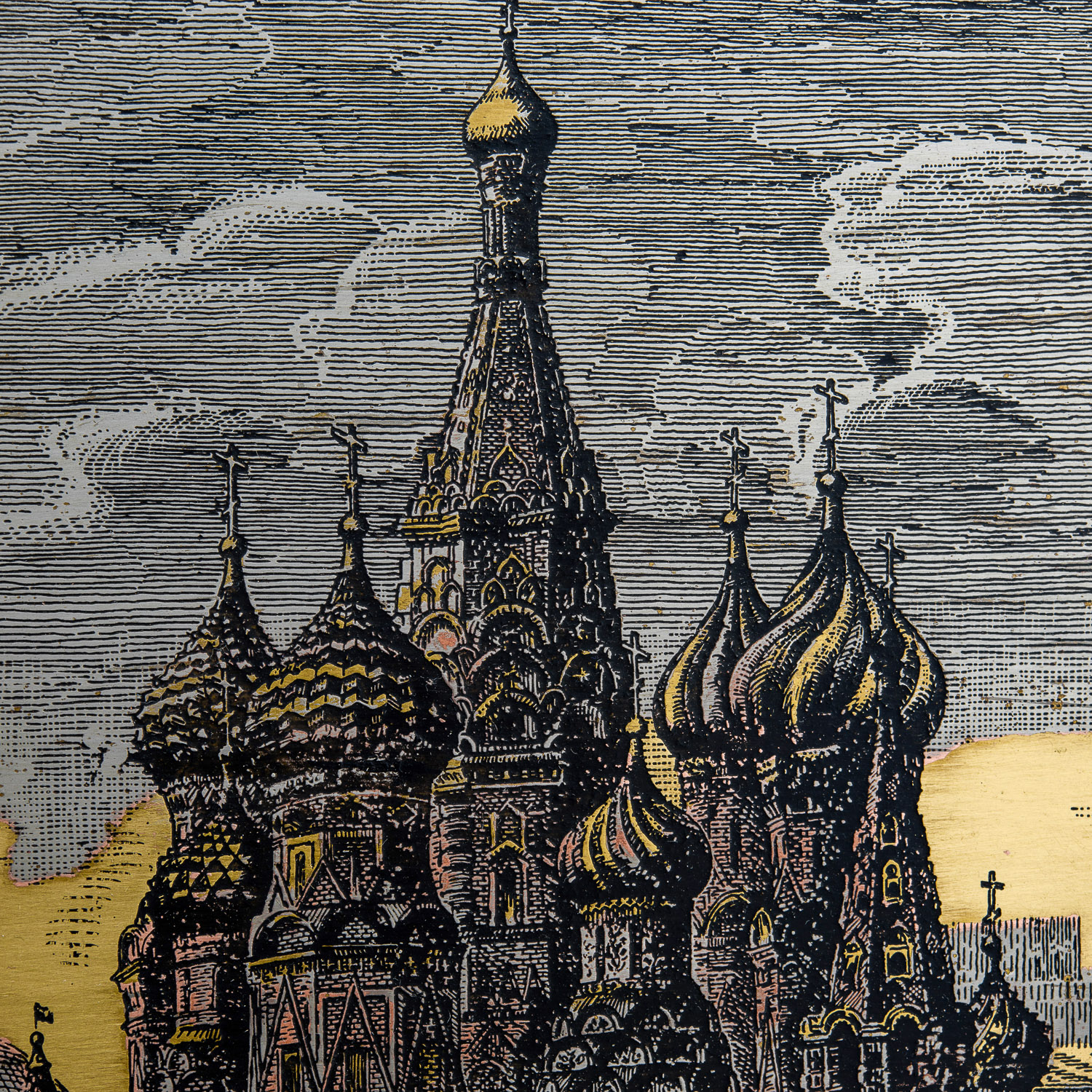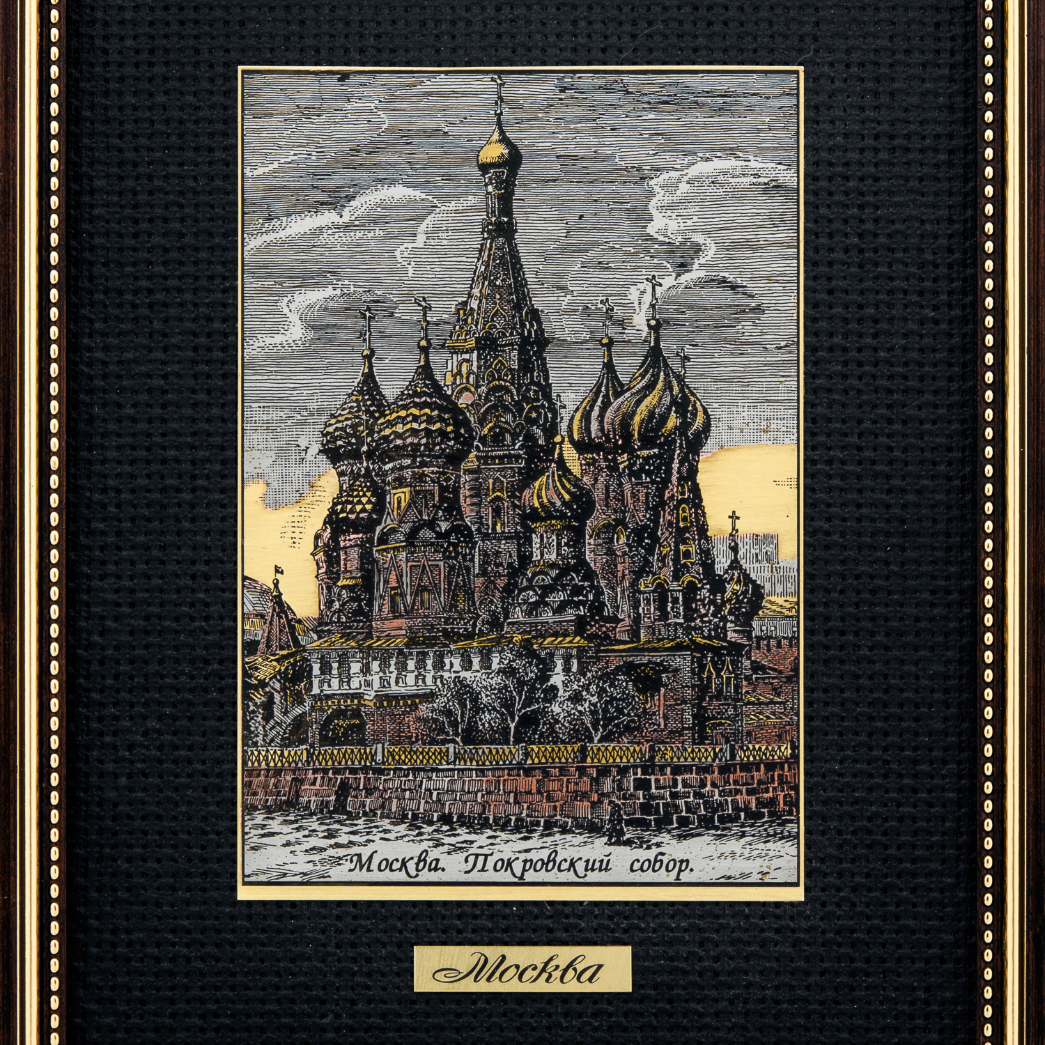 7826 /16*21см Офорт цветной "Старая Москва. Храм Василия Блаженного"   .