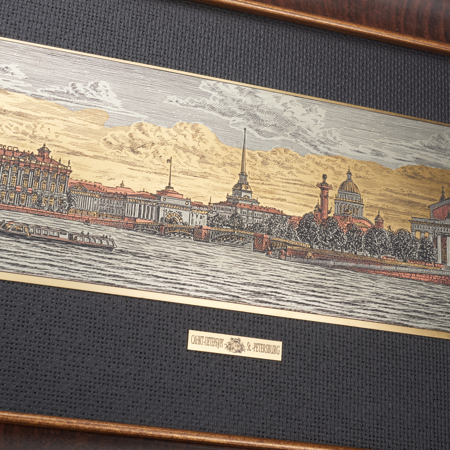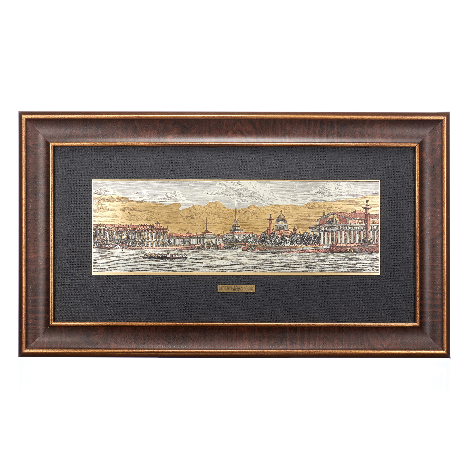 0028003/27,5*55см Офорт цветной "Панорама СПБ: вид с Невы" .