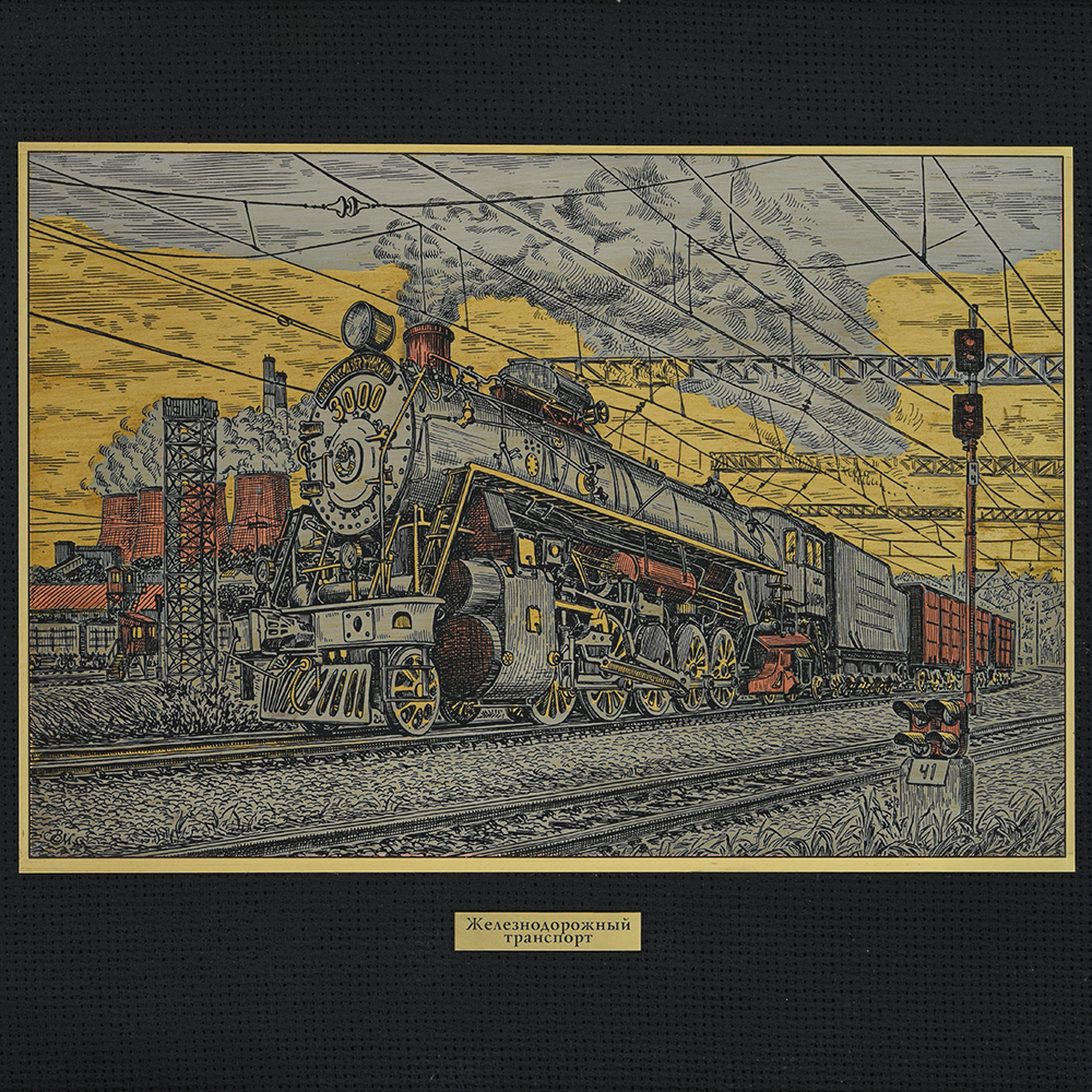 0013360 /30*40см Офорт цветной "История РЖД"