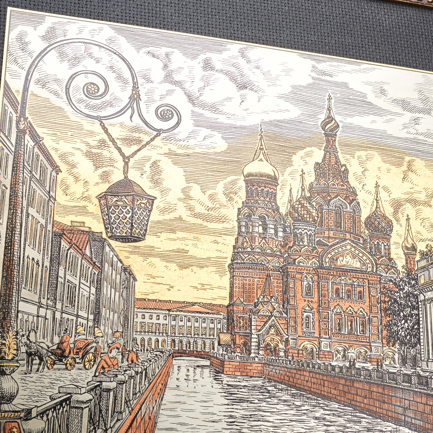 0028005/42*55см Офорт цветной "СПБ. Вид на Храм Спаса-на -крови" .