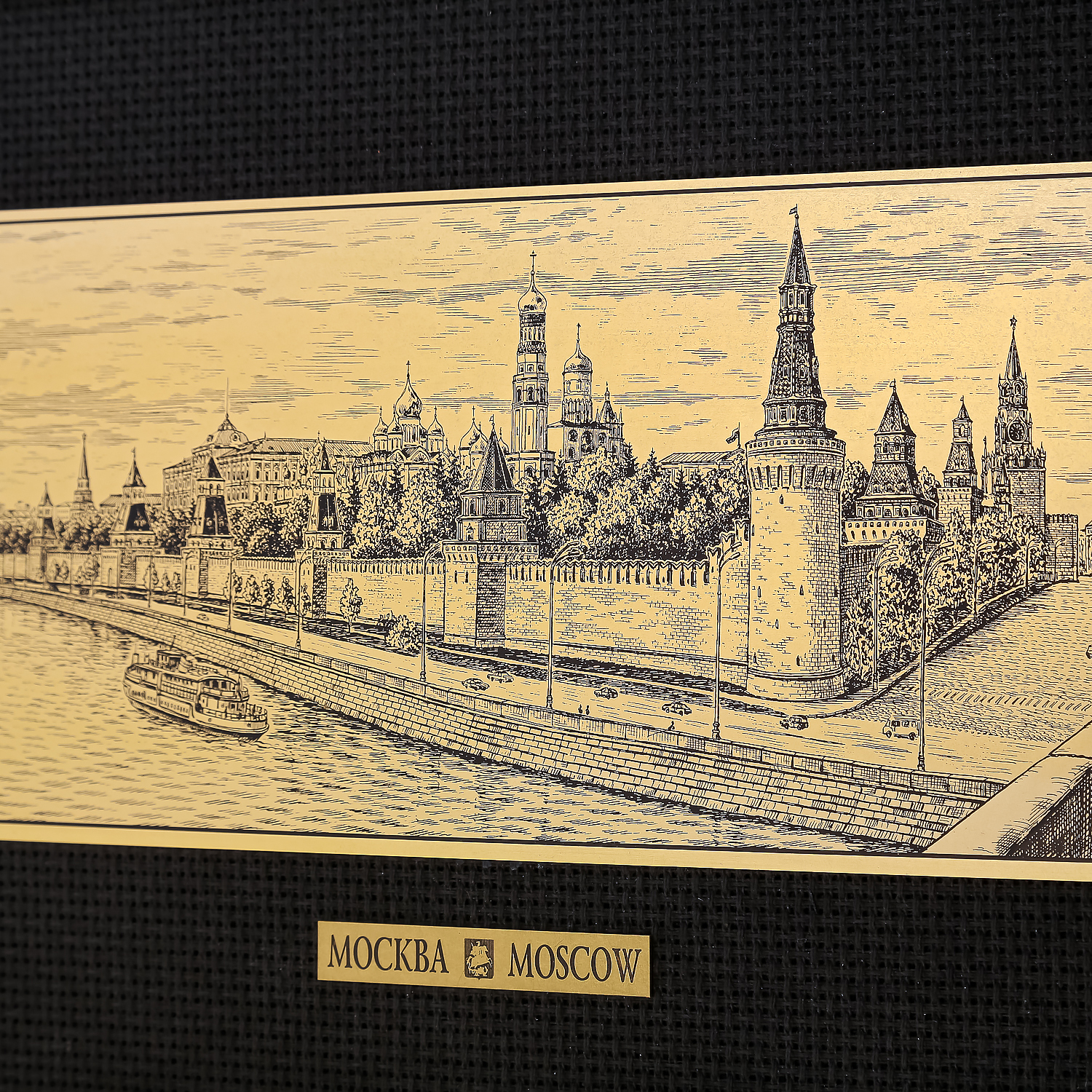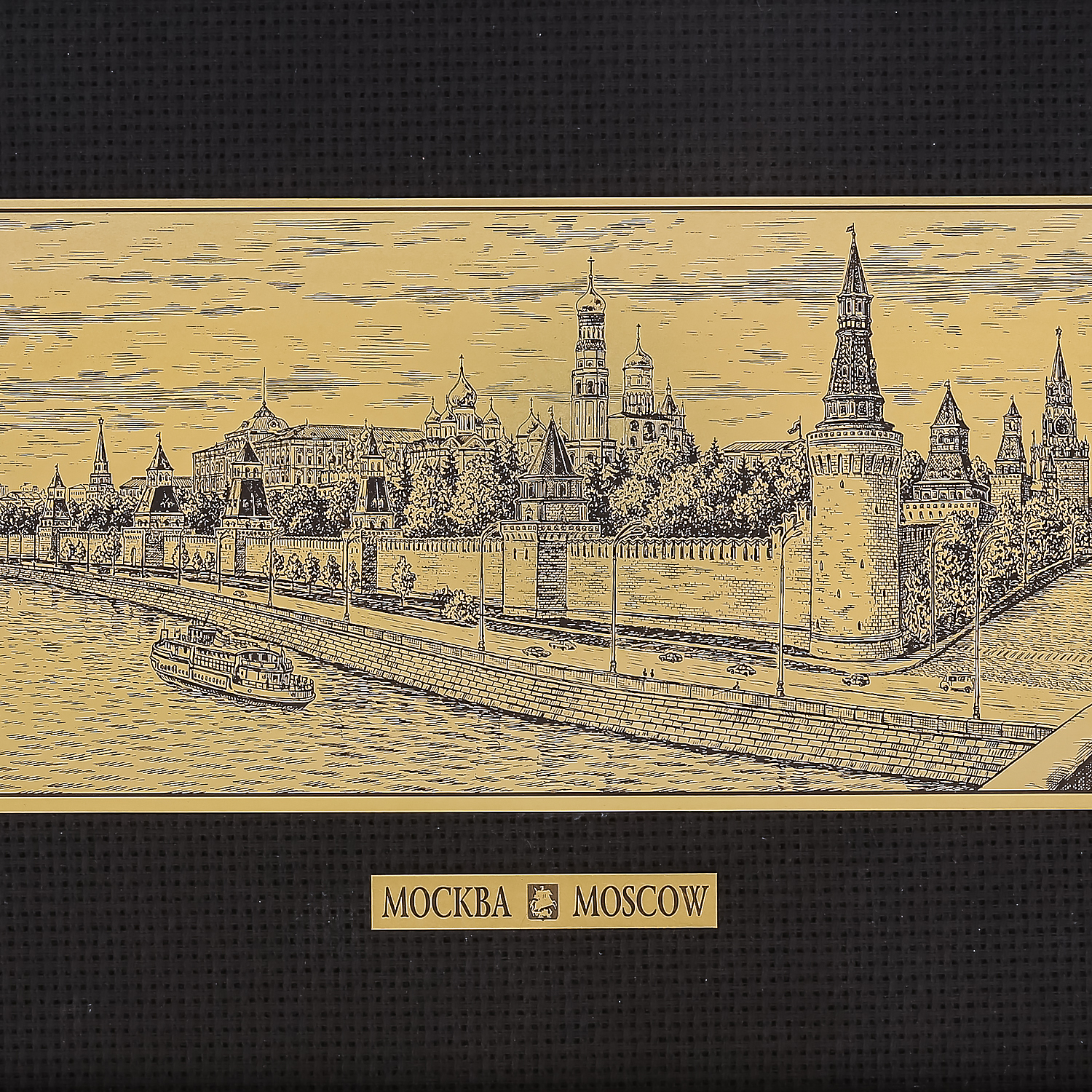 Русские подарки и сувениры → Интерьерные изделия → Офорты → Офорт черно-белый "Вид на Кремль с Большого Москворецкого моста" 21х40 см