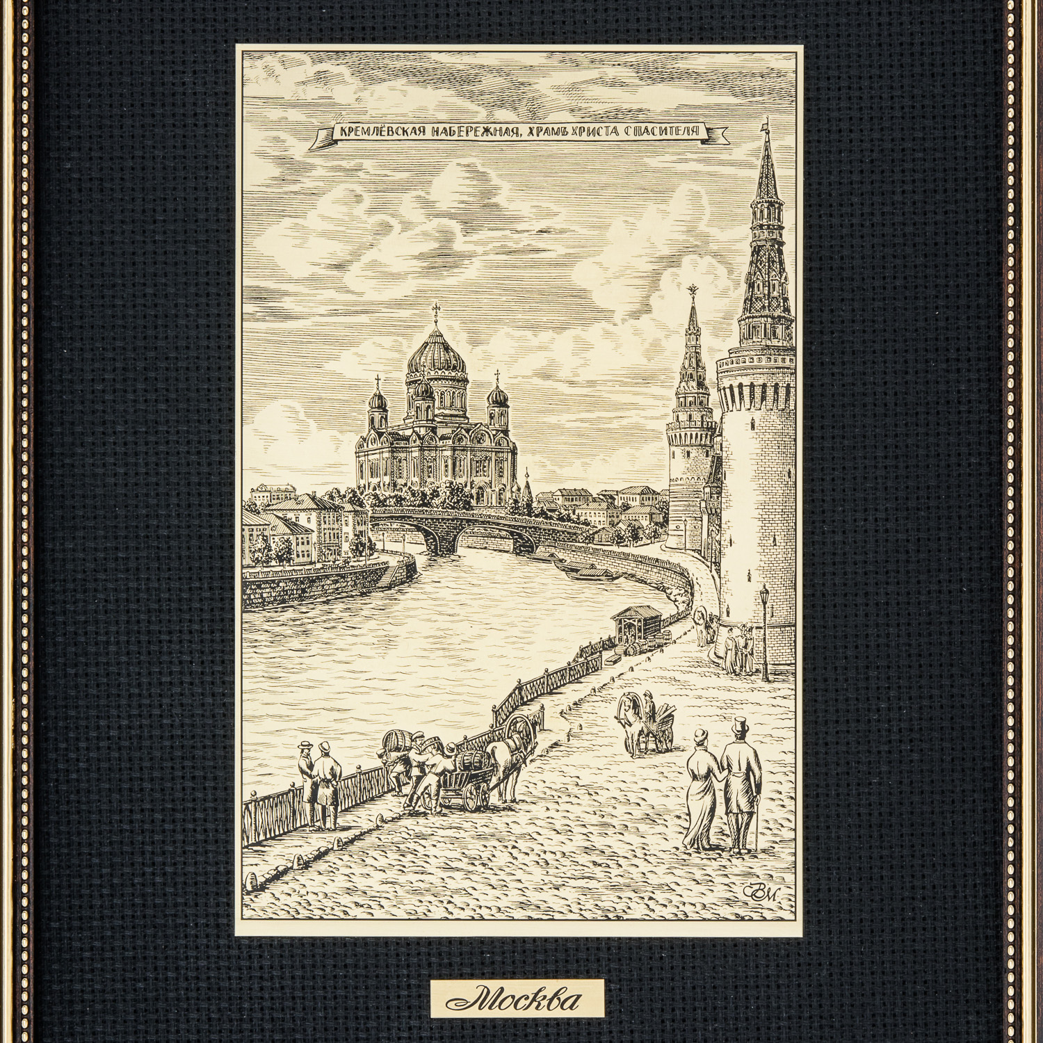 78431/25*32см Офорт черно-белый "Старая Москва. Кремлевская набережная ХХС" .