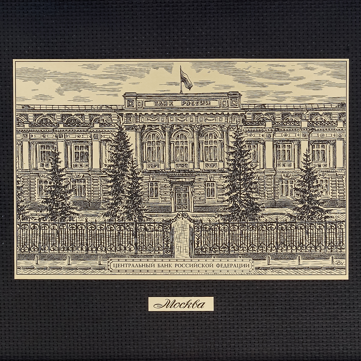 0070630/25*32см Офорт черно-белый " ЦЕНТРАЛЬНЫЙ БАНК РФ"
